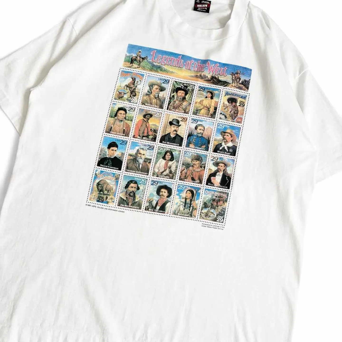 ○商品説明 90s USA製 FRUITOFTHELOOM 西洋の伝説。 アメリカの伝説的人物が切手になってます。 レトロな感じもあって最高でしょ。 気になった方は是非。 ○サイズ 表記XL 平置き ・肩幅56cm ・身幅60cm ・袖丈22cm ・着丈74.5cm ○商品の状態B A:使用感がほとんどなく、汚れやシミもなし B:多少使用感はあるが、汚れやシミも少ない C:使用感があり、汚れやシミがある D:使用感があり、大きな汚れや破れあり ○色 ホワイト #90s#USA製#FRUITOFTHELOOM#フルーツオブザルーム#切手#legend#Tシャツ