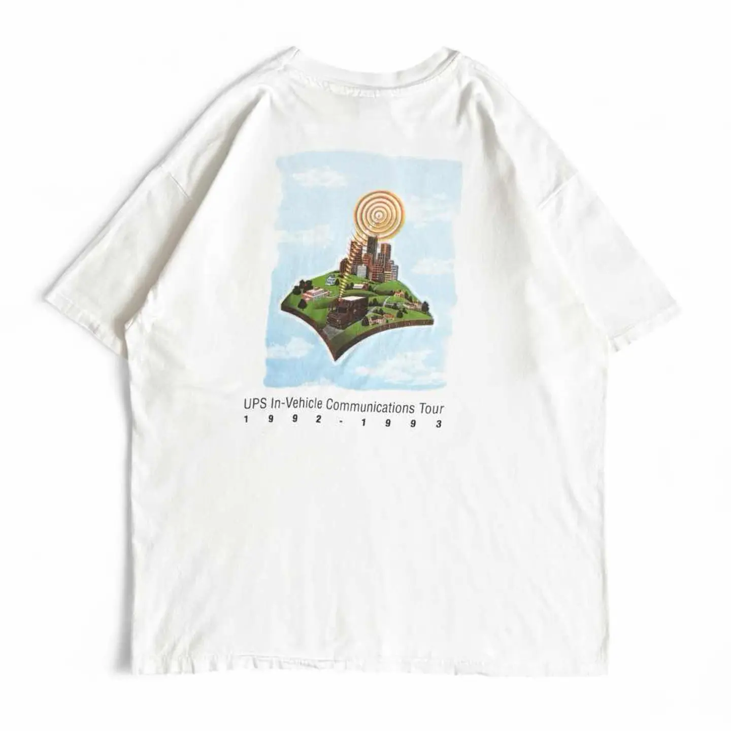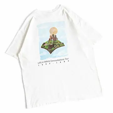 ○商品説明 90s USA製 Hanes ROADNET 物流業界向けの配車計画システム会社になります。 配送ルートの最適化、リアルタイムな運行管理、 配送実績の分析などを支援しています。 おそらくUPSがROADNETのシステムを利用している のかと思われます。 トラックに向けて電波みたいなのが伝わっていますね。 配送ルートを教えているのでしょうか。 気になった方は是非。 ○サイズ 表記XL 平置き ・肩幅56.5cm ・身幅60cm ・袖丈21cm ・着丈70cm ○商品の状態B A:使用感がほとんどなく、汚れやシミもなし B:多少使用感はあるが、汚れやシミも少ない C:使用感があり、汚れやシミがある D:使用感があり、大きな汚れや破れあり ○色 ホワイト #90s#USA製#Hanes#ヘインズ#企業#Tシャツ