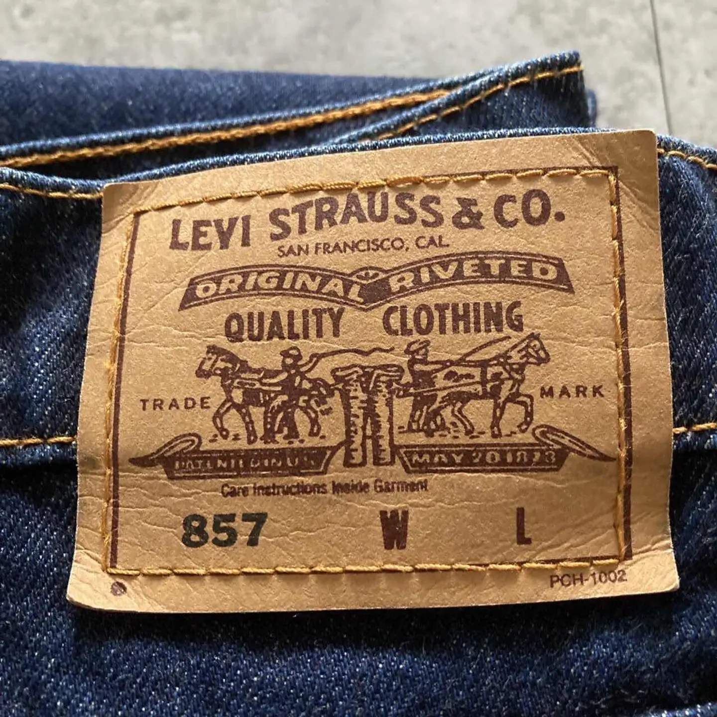 【W30 L34】Levis 501 PREMIUM レザーパッチ ボタンフライ 濃紺 デニムパンツ