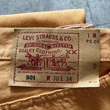 【W30 L34】Levis 501 PREMIUM レザーパッチ ボタンフライ 濃紺 デニムパンツ