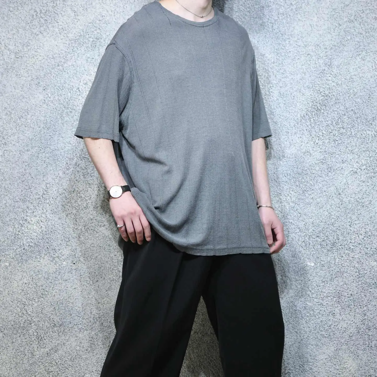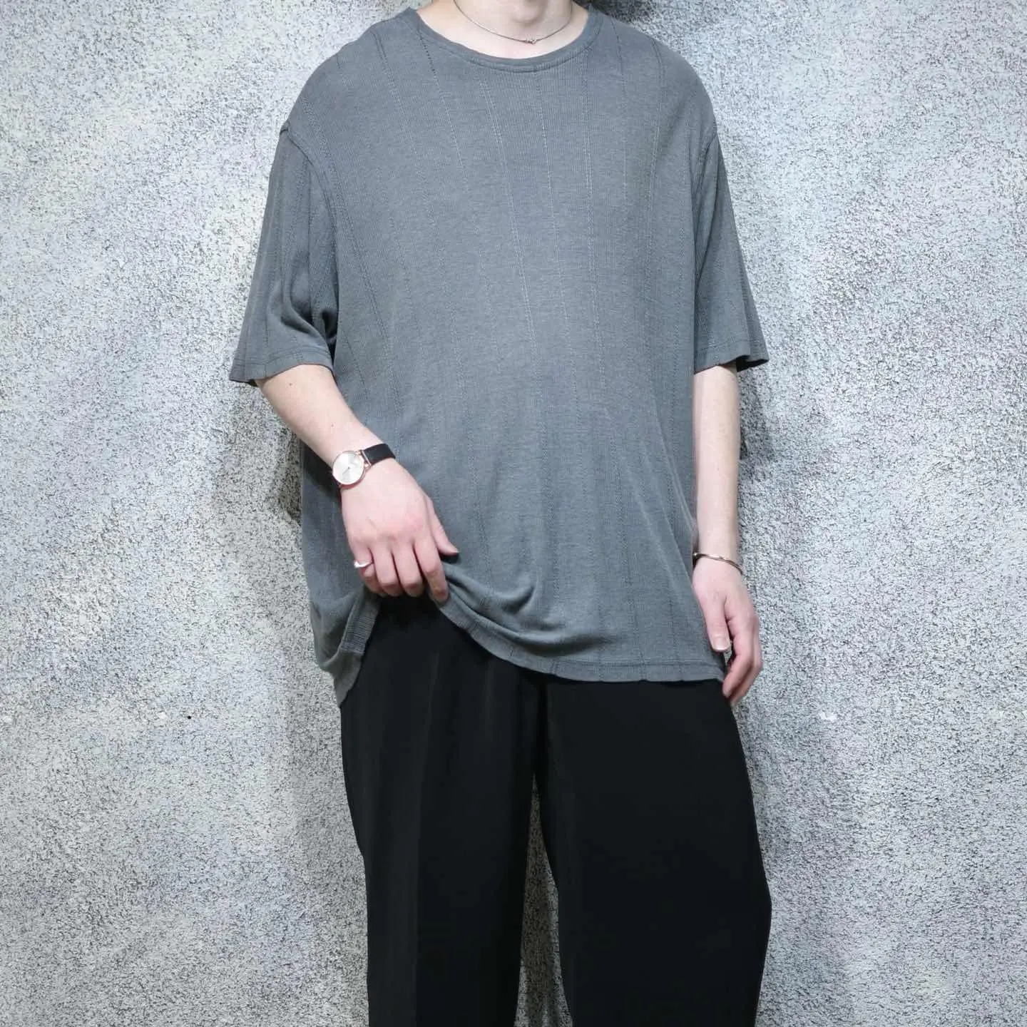 着丈75cm 肩幅54cm 身幅69cm 袖丈28cm fabric/rayon・cotton 着用画像 177cm/64kg シャツ、スラックスなど何かと気の利いた アイテムを多く手掛ける”AXIST” こちらはレーヨンとコットンの混紡で編まれた、 ニット生地のカットソー。 Tシャツと同じような感覚で、 それでいてカジュアルな印象のあるTシャツよりも 上品にコーデへ落とし込める逸品。 風通しの良い軽めの生地感、生地の重みで自然な ドレープ感のあるシルエット。 飽きの来るこの季節のスタイリングですが、 そんなスタイリングの幅を広げてくれる アイテムとしてもどうでしょう。 ※生地に若干の傷みあり。 ※撮影状況により、実物と多少色が異なる場合が ございます。 ※古着を取り扱っているため、気づかない汚れや ほつれ等がある場合がございます。 予めご了承ください。 ※サイズは着用感で選んでおり、表記サイズではございません。 古着 オーバーサイズ old vintage ヴィンテージ used 80's 90's アメリカ古着 ユーロ古着 メンズ レディース POLO RALPH LAUREN Eddie Bauer OLD GAP Eddie Bauer LANDS' END ランズエンド LLBean エルエルビーン オールドギャップ エディーバウアー ラルフローレン ブルックスブラザーズ Brooks Brothers グレー 灰色 カットソー デザイン などがお好きな方 #vintage #オーバーサイズ #old #used #90s #80s #古着 #ヴィンテージ #アメリカ古着 #ユーロ古着 #古着男子 #古着女子 #LLBean #エルエルビーン #EddieBauer #エディーバウアー #oldgap #オールドギャップ #LANDSEND #ランズエンド #NAUTICA #ノーティカ #ラルフローレン #POLORALPHLAUREN #ブルックスブラザーズ #BrooksBrothers #カットソー #半袖Tシャツ #Tシャツ #ニット