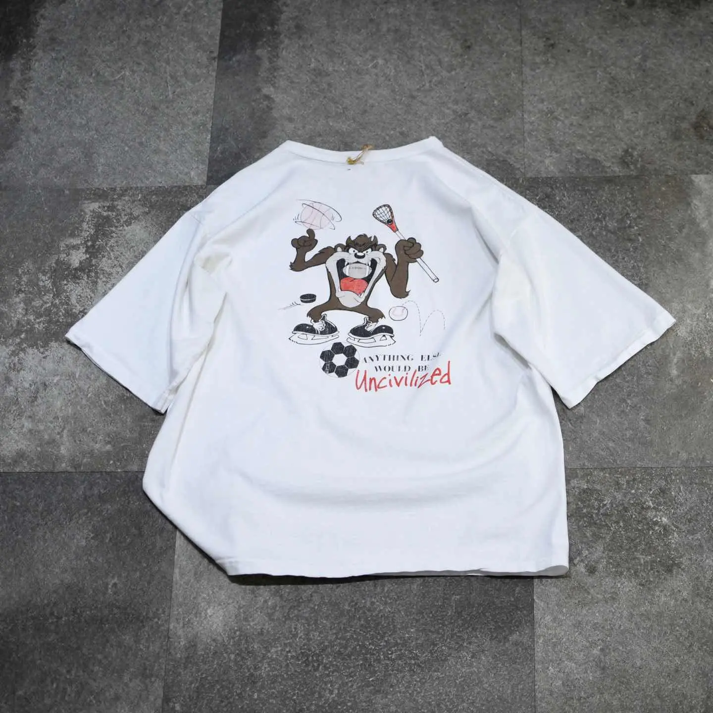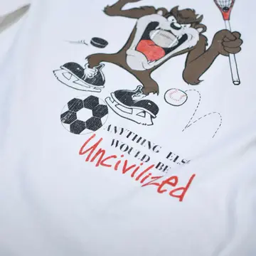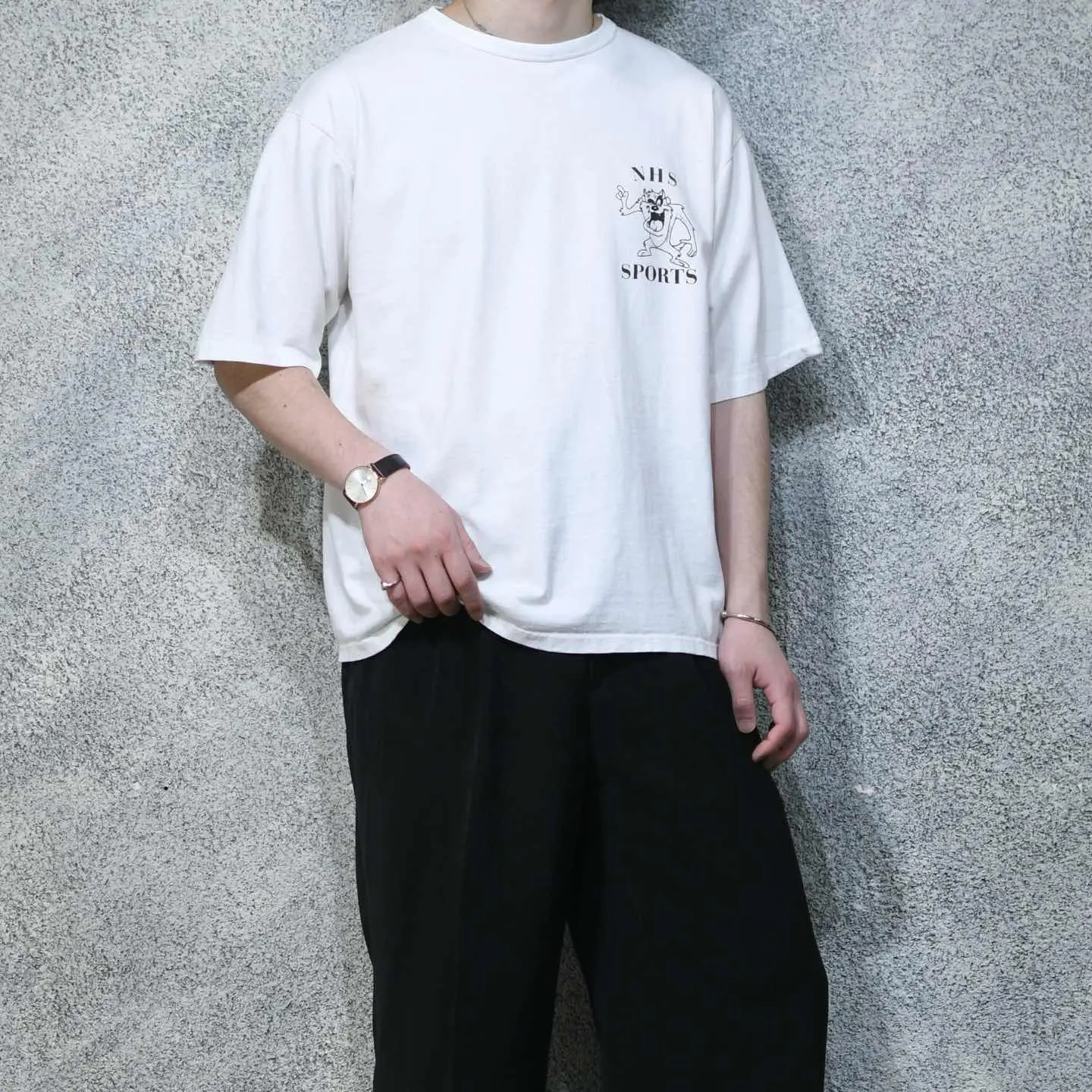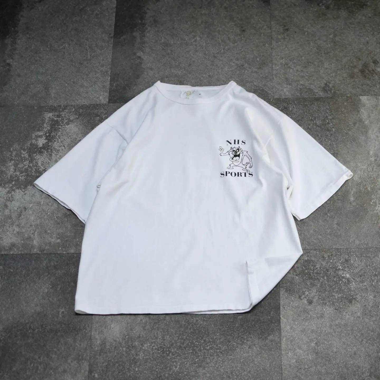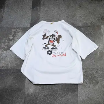 着丈66cm(ダブルステッチ) 肩幅56cm 身幅59cm 袖丈27cm(シングルステッチ) fabric/cotton made in USA 着用画像 177cm/64kg 恐らくアメリカの高校スポーツチームが 着ていたTシャツ。 フロント、バックともにLooney Tunesのタズが プリント。 サイズバランスを見ると、同じサイズ感の 他Tシャツと比べ、袖丈が長く取られているのが 個人的に嬉しいポイントで、長過ぎない丈感に この袖丈。 熟れた印象のある良いサイズ◎ ※撮影状況により、実物と多少色が異なる場合が ございます。 ※古着を取り扱っているため、気づかない汚れや ほつれ等がある場合がございます。 予めご了承ください。 ※サイズは着用感で選んでおり、表記サイズではございません。 古着 オーバーサイズ old vintage ヴィンテージ used 80's 90's アメリカ古着 ユーロ古着 メンズ レディース POLO RALPH LAUREN Eddie Bauer OLD GAP Eddie Bauer LANDS' END ランズエンド LLBean エルエルビーン オールドギャップ エディーバウアー ラルフローレン ブルックスブラザーズ Brooks Brothers 白Tシャツ Tシャツ プリントTシャツ カレッジTシャツ バックプリント 半袖Tシャツ などがお好きな方 #vintage #オーバーサイズ #old #used #90s #80s #古着 #ヴィンテージ #アメリカ古着 #ユーロ古着 #古着男子 #古着女子 #LLBean #エルエルビーン #EddieBauer #エディーバウアー #oldgap #オールドギャップ #LANDSEND #ランズエンド #NAUTICA #ノーティカ #ラルフローレン #POLORALPHLAUREN #ブルックスブラザーズ #BrooksBrothers #バックプリント #シングルステッチ #Tシャツ #プリントTシャツ #半袖Tシャツ #カレッジTシャツ