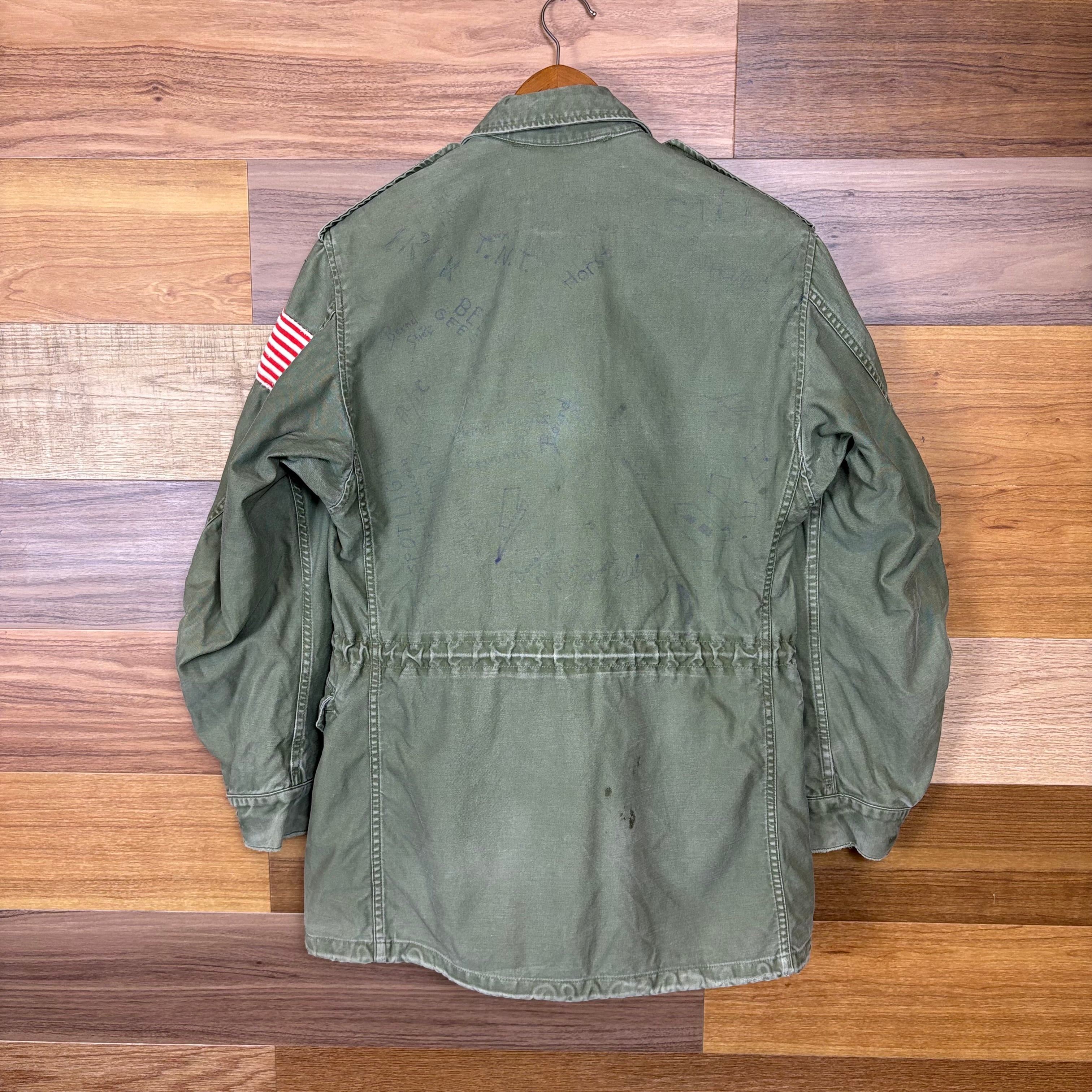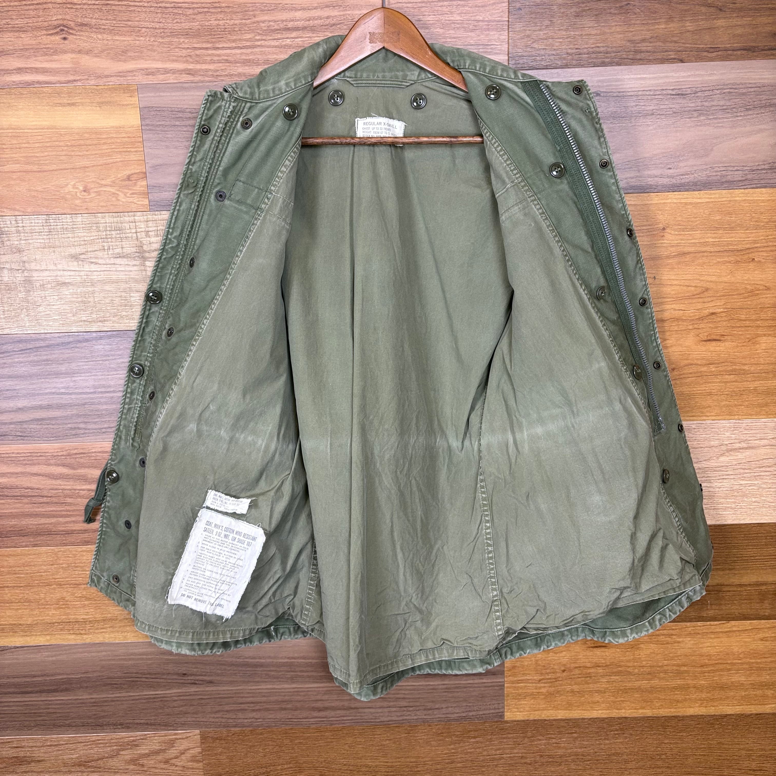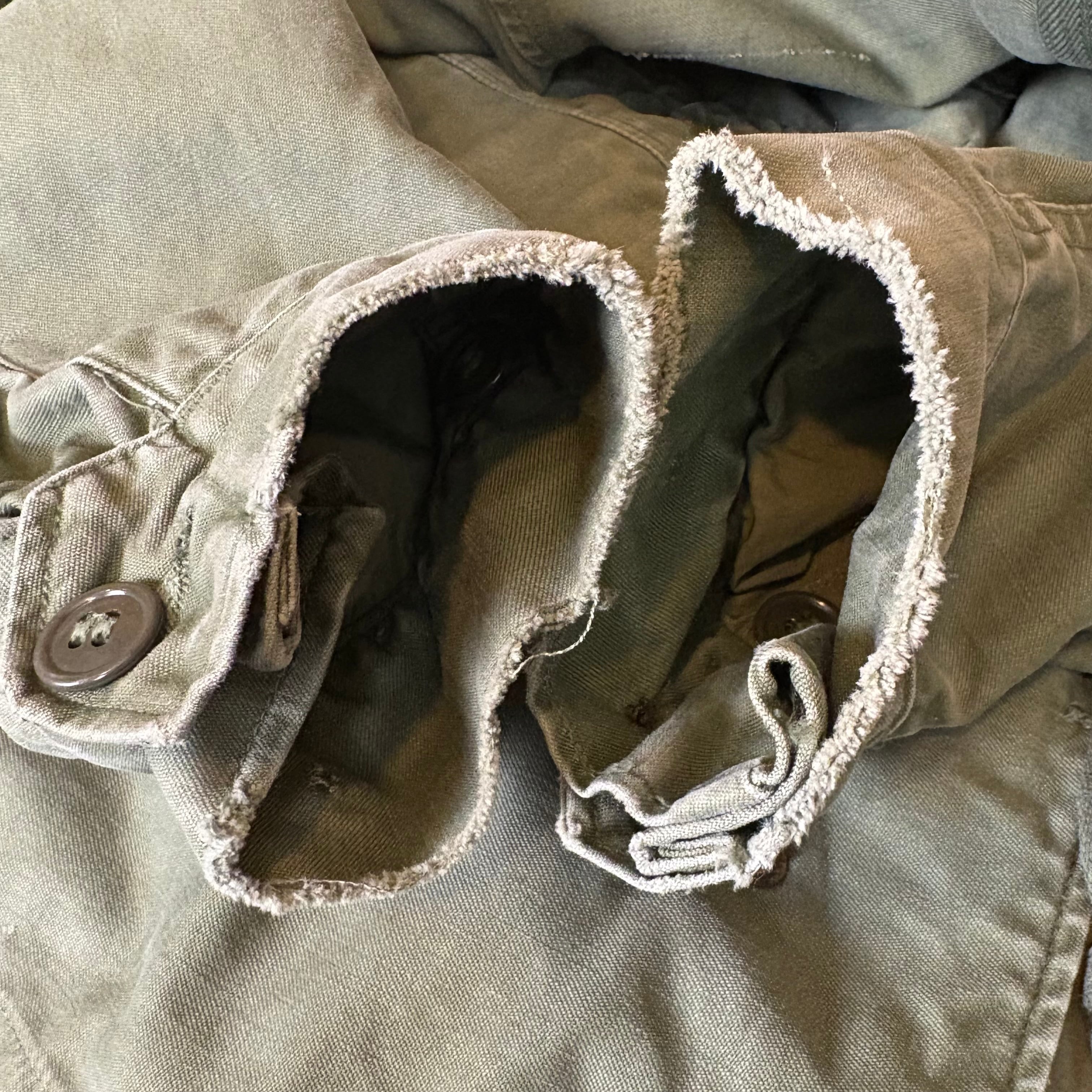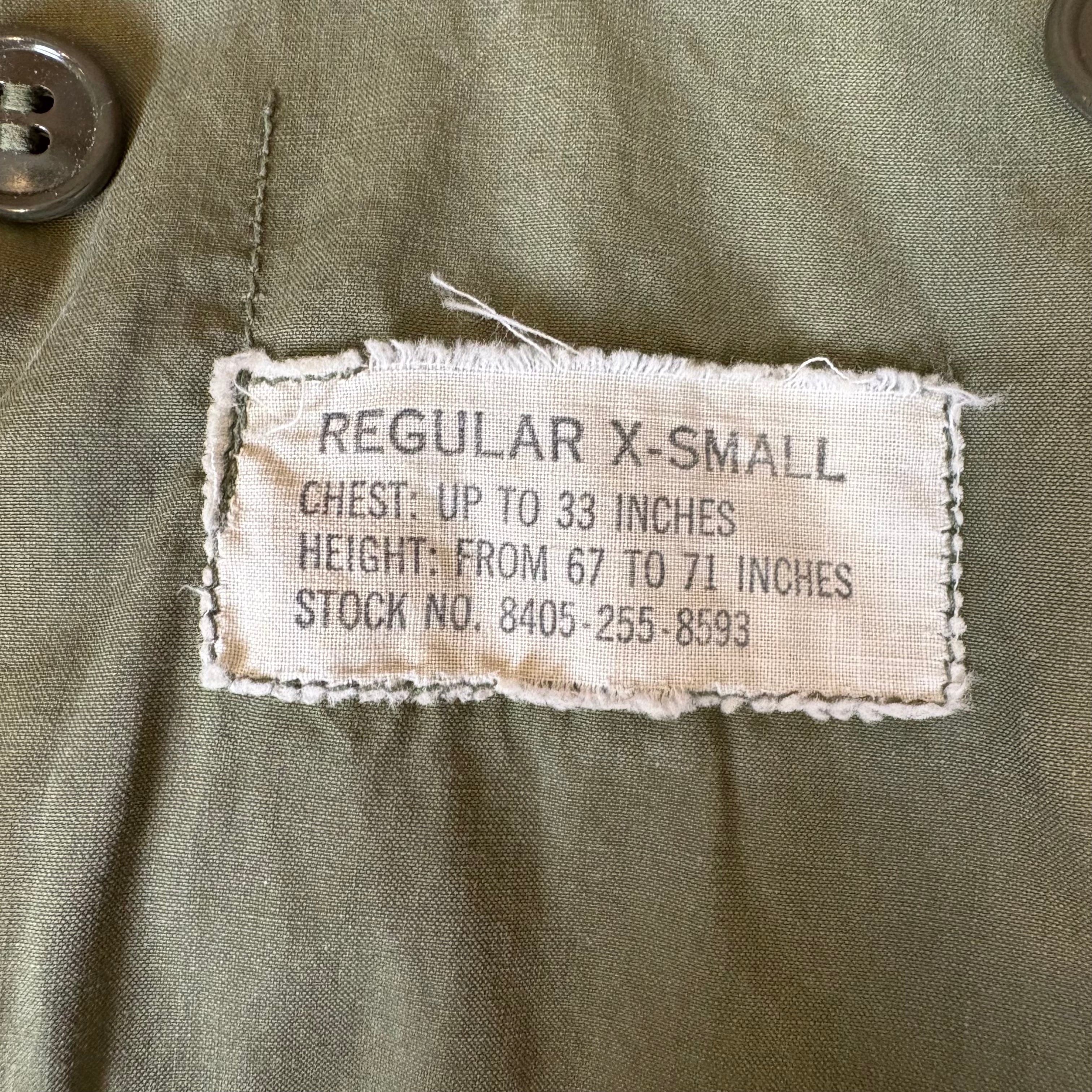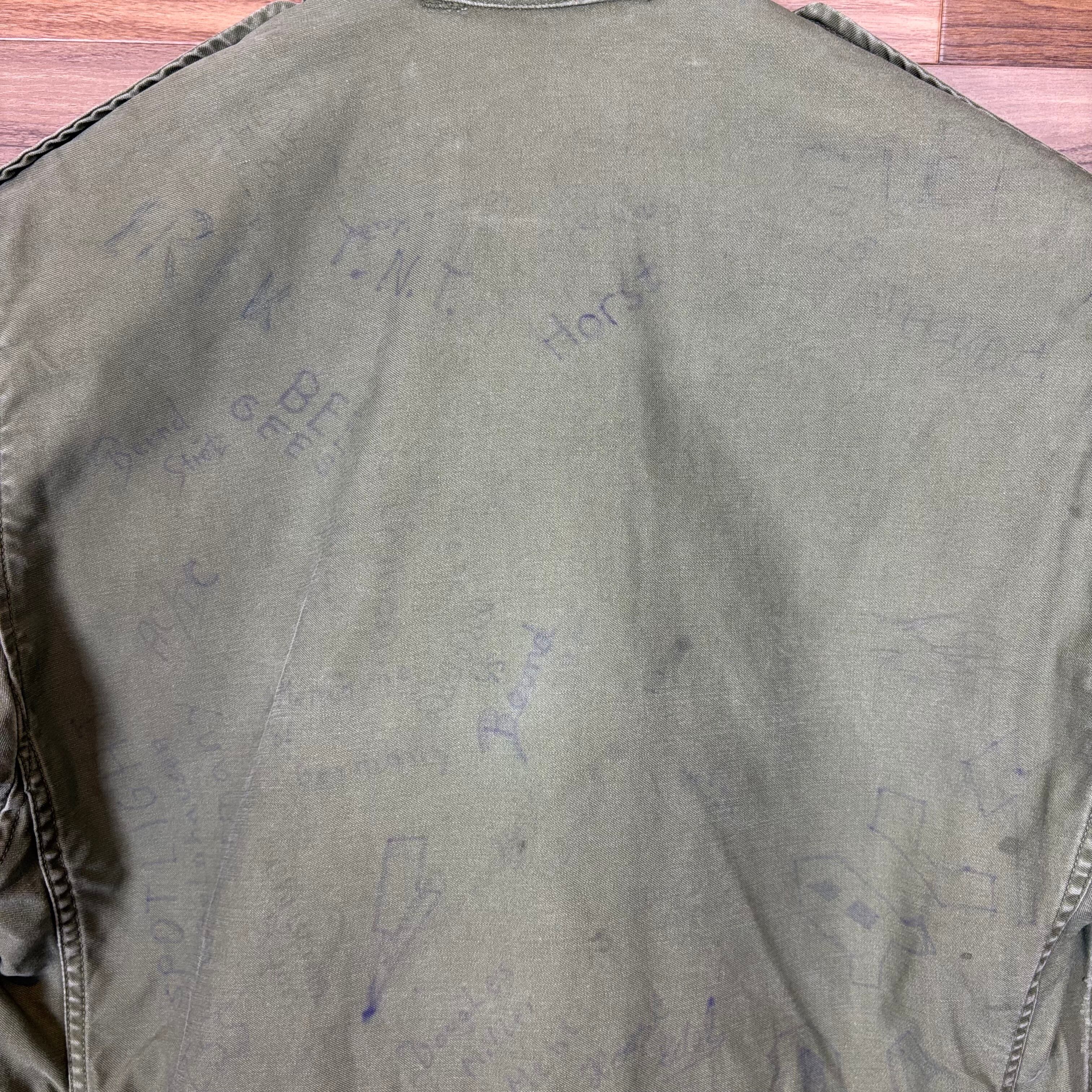 【アイテム】 米軍実物 60s U.S.ARMY M-51 フィールドジャケット サイズ Regular X-Small メンズ M位 60年代 ビンテージ ヴィンテージ ミリタリー 古着 r25060625 【コンディション】 ・C(バック背中にハンドペイントでバンド名等の落書き・タグのホツレ・袖リブに擦れ・その他汚れが御座います。) S→未使用または新品の商品(デッドストック) A→使用感のほぼない、大変状態の良い商品(ミントコンディション) B→使用感はあるが目立つダメージのない商品 C→使用感があり、部分的にダメージがある商品 D→全体的に使用感があり、目立つダメージがある商品 E→ジャンク品 【サイズ】 サイズ表記 Regular X-Small(メンズ M位) 実寸:肩幅45cm 身幅53cm 着丈77cm 肩から袖丈60cm 脇下から袖丈50cm ※着丈は背面から計測しております。 古着に抵抗のある方は購入をお控え下さい。 画像にてしっかりご確認頂き、気になる点等御座いましたら御購入前にお問い合わせ願います。 ※古着は洗濯、検品などのケアを行っております。(新品・デッドストックは洗濯していません。)