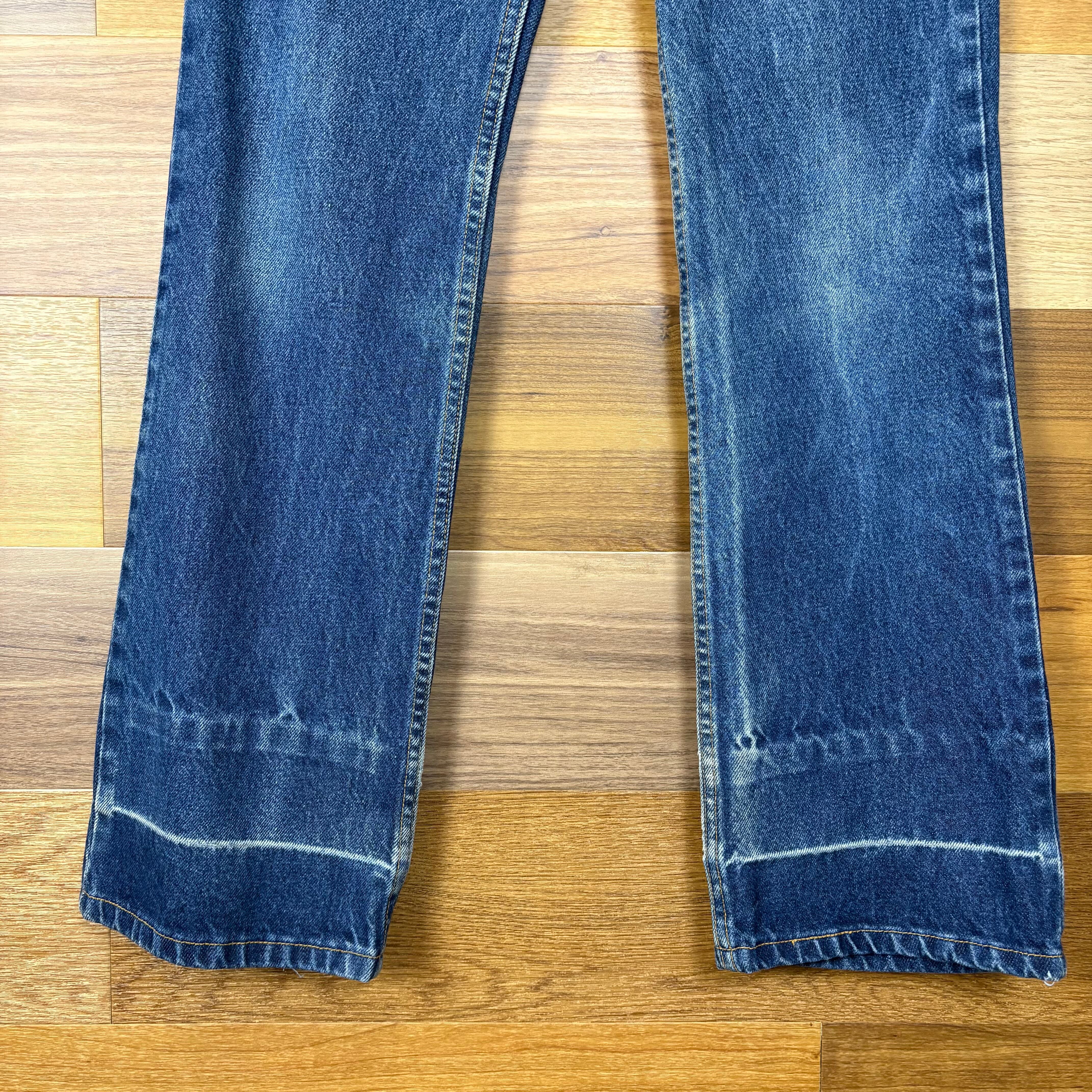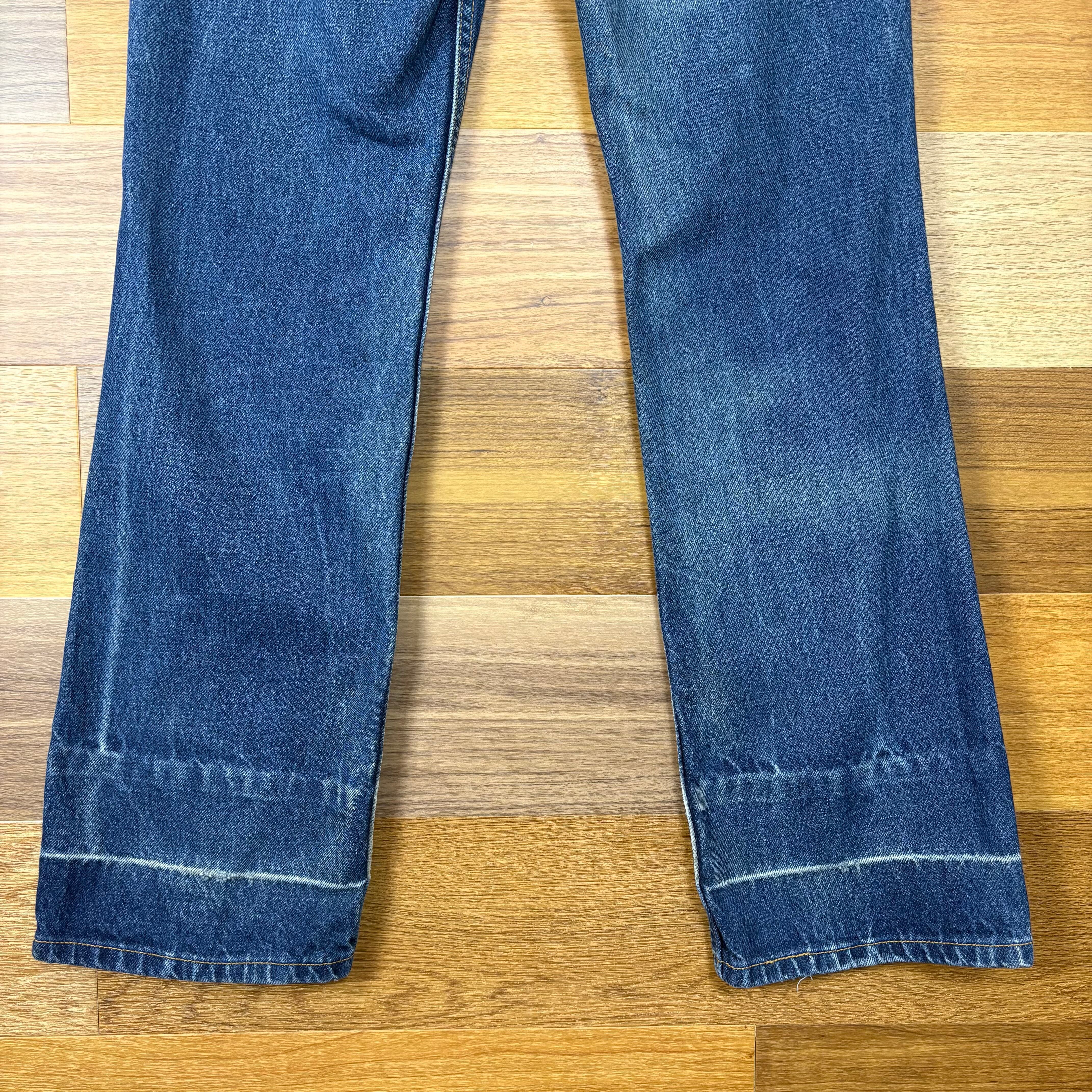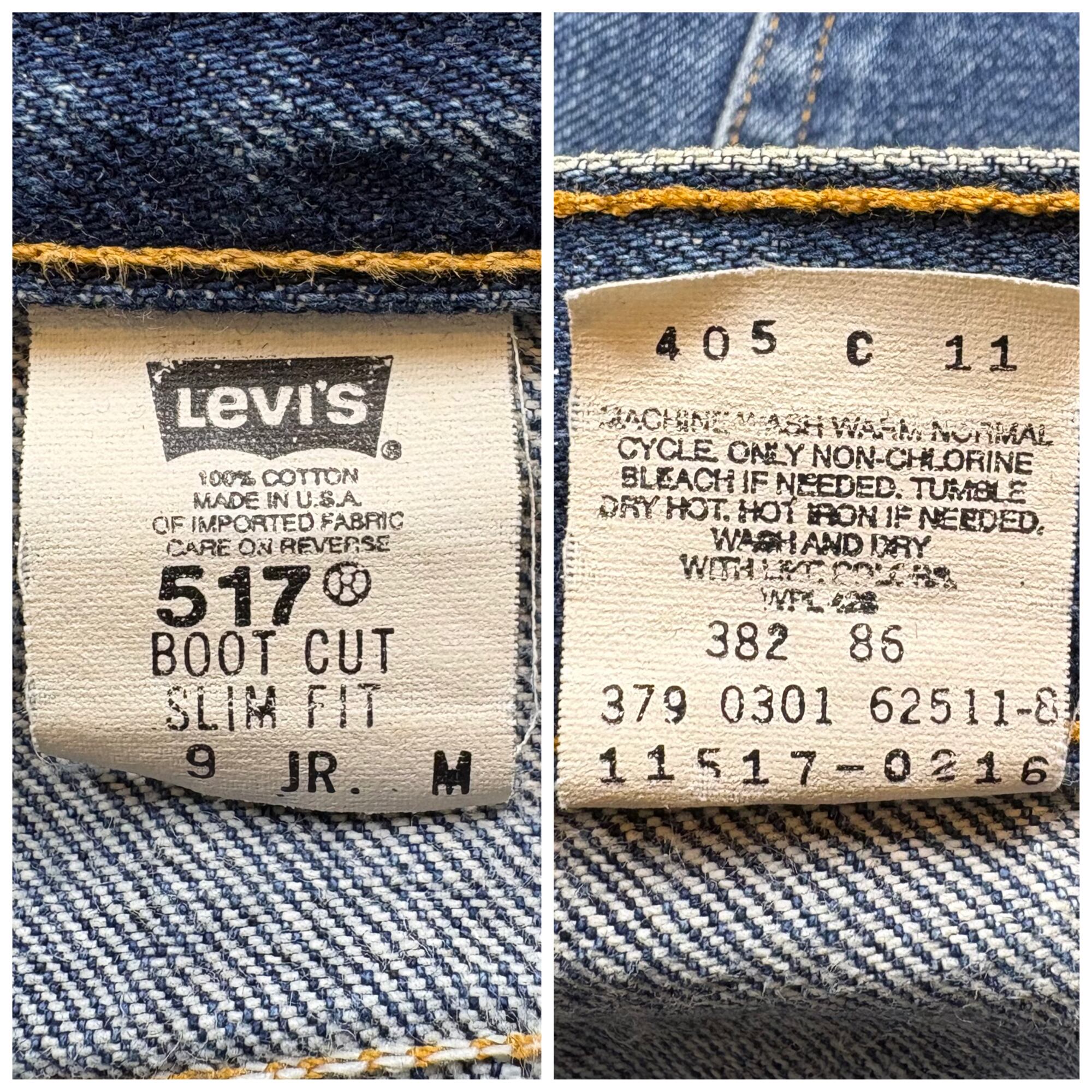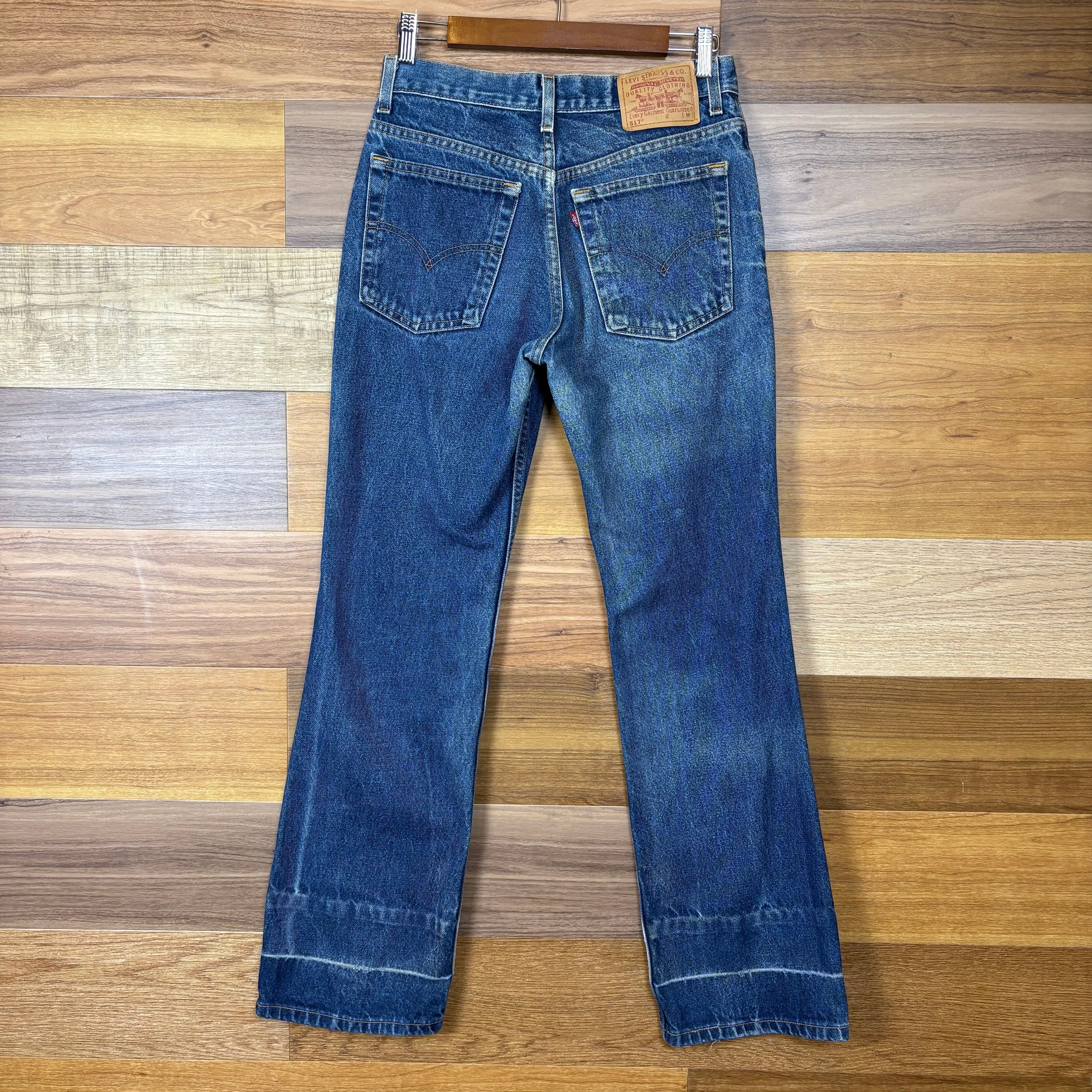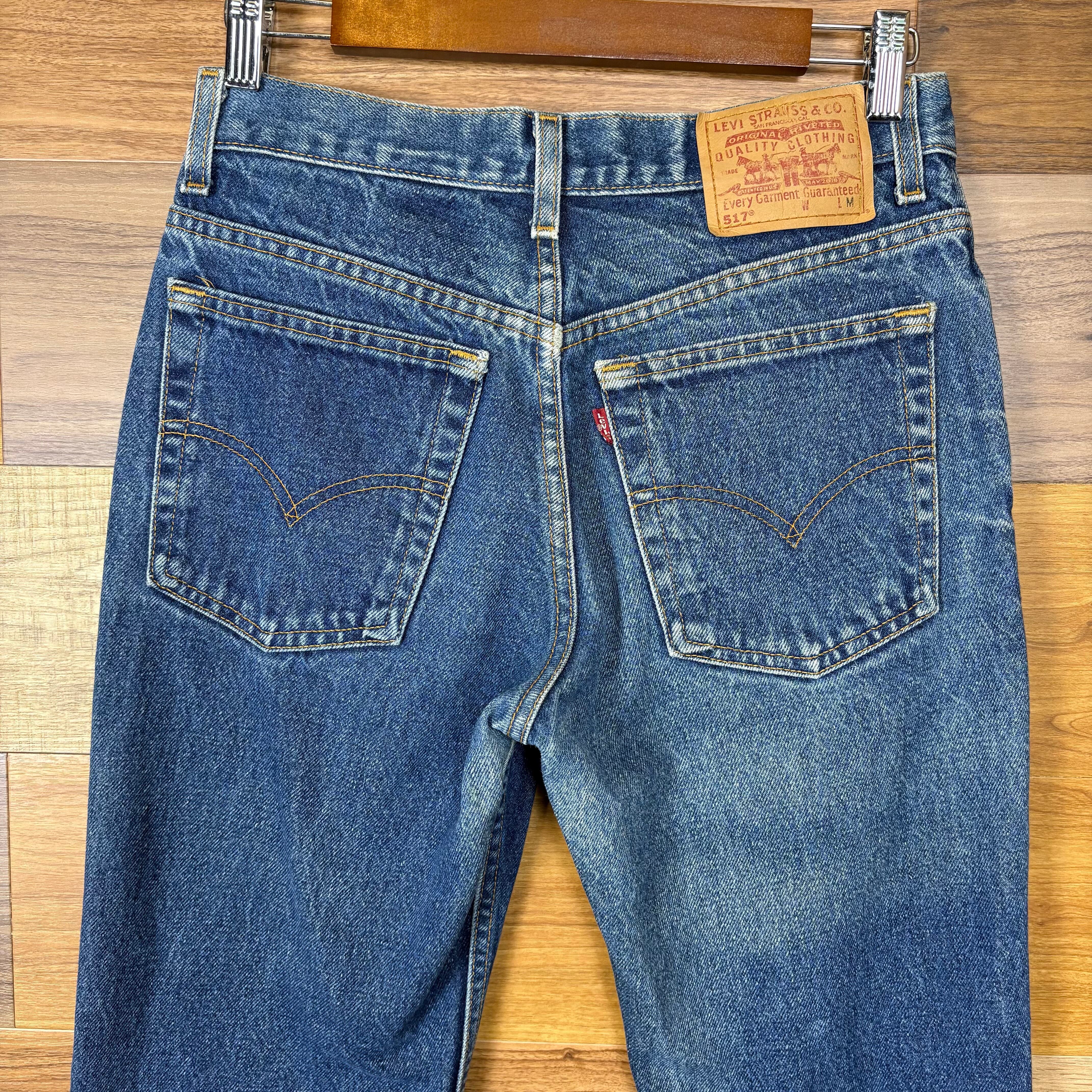【アイテム】 USA製 Levi's 517 リーバイス デニム パンツ フレアー ブーツカット ジーパン ジーンズ サイズ 9 JR.M メンズ S位 赤タブ トップボタン裏 379 ビンテージ ヴィンテージ 古着 r25050957 【コンディション】 ・D(ロールアップした跡が御座います。) S→未使用または新品の商品(デッドストック) A→使用感のほぼない、大変状態の良い商品(ミントコンディション) B→使用感はあるが目立つダメージのない商品 C→使用感があり、部分的にダメージがある商品 D→全体的に使用感があり、目立つダメージがある商品 E→ジャンク品 【サイズ】 サイズ表記 9 JR.M(メンズ S位) 実寸:ウエスト平置き36cm 股上34cm 股下80cm ワタリ幅29cm 裾幅21cm サイドシーム全長総丈106cm *股上は背面で計測しております。 古着に抵抗のある方は購入をお控え下さい。 画像にてしっかりご確認頂き、気になる点等御座いましたら御購入前にお問い合わせ願います。 ※古着は洗濯、検品などのケアを行っております。(新品・デッドストックは洗濯していません。)