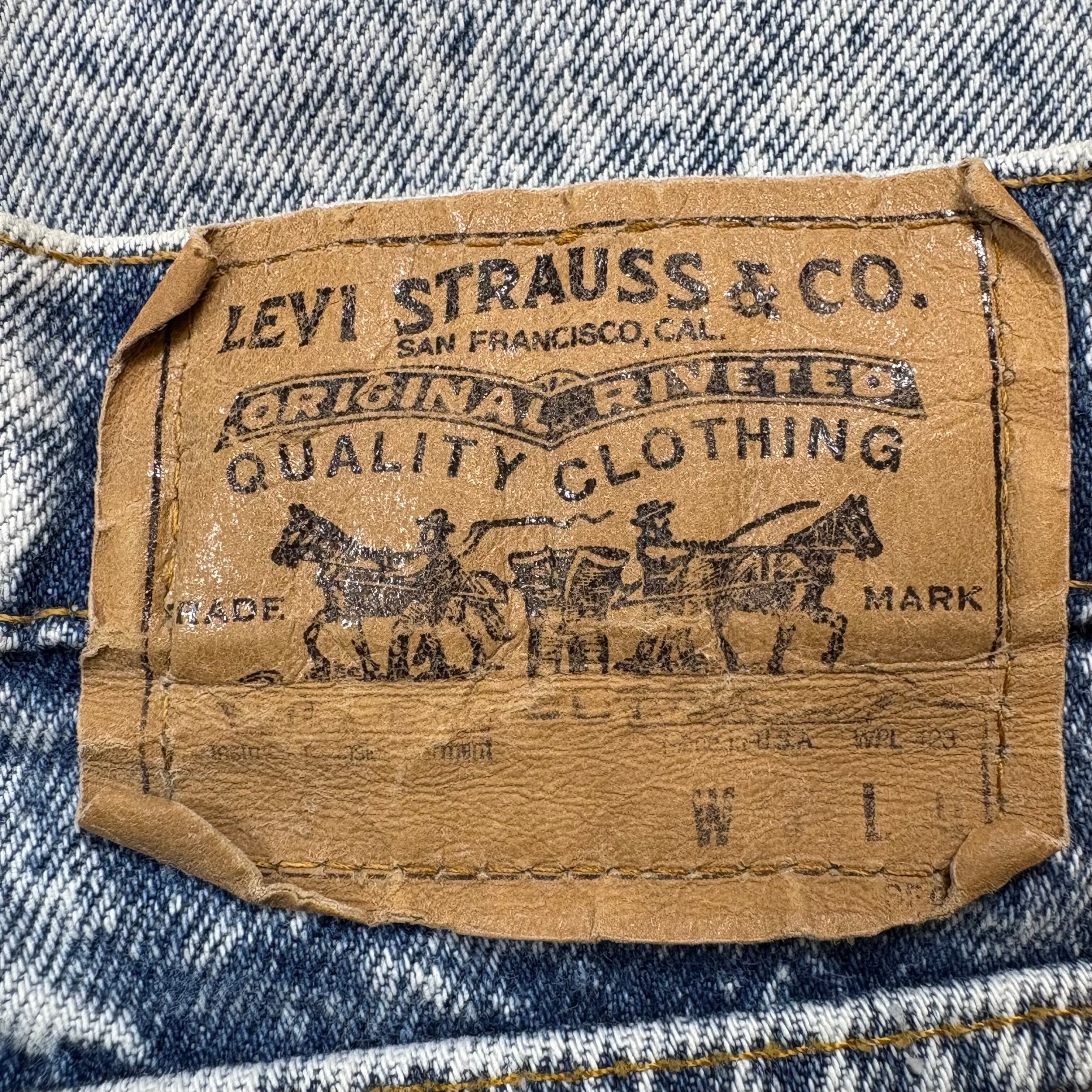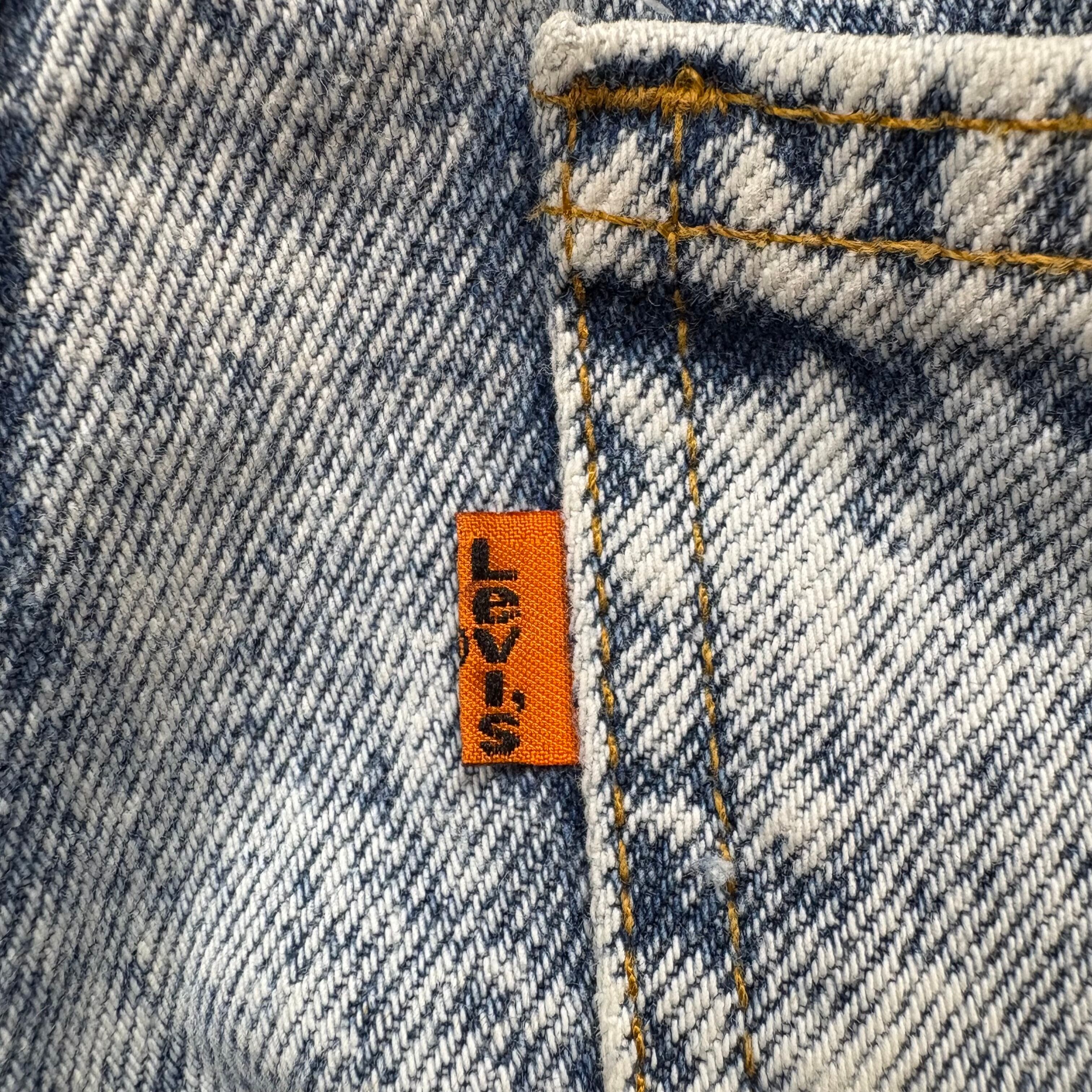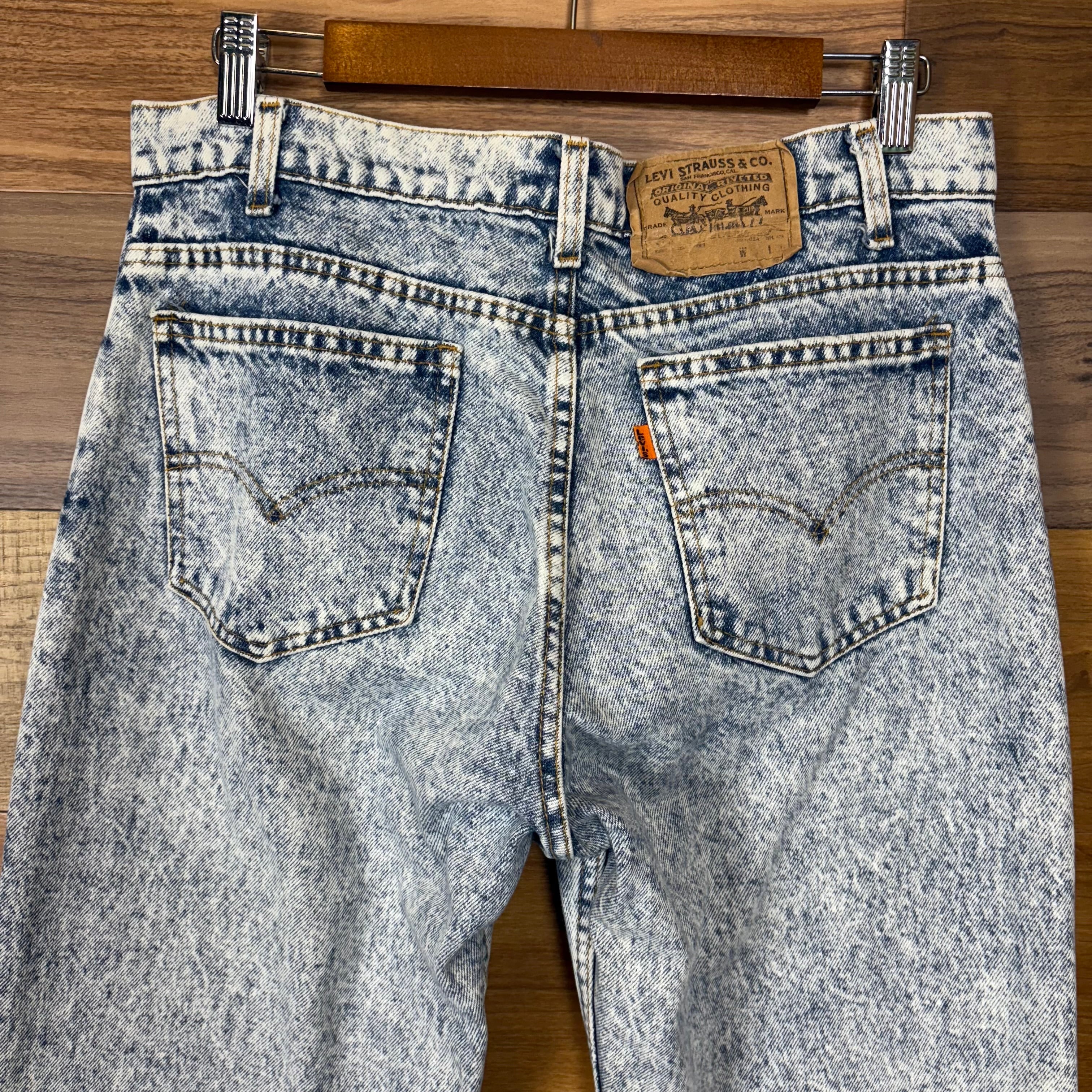 【アイテム】 USA製 90s Levi's リーバイス ケミカルウォッシュ デニム パンツ ジーパン ジーンズ サイズ W33 L30 メンズ M位 トップボタン裏 520 90年代 ビンテージ ヴィンテージ 古着 r25050964 【コンディション】 ・B S→未使用または新品の商品(デッドストック) A→使用感のほぼない、大変状態の良い商品(ミントコンディション) B→使用感はあるが目立つダメージのない商品 C→使用感があり、部分的にダメージがある商品 D→全体的に使用感があり、目立つダメージがある商品 E→ジャンク品 【サイズ】 サイズ表記 W33 L30(メンズ M位) 実寸:ウエスト平置き40cm 股上37cm 股下77cm ワタリ幅32cm 裾幅18cm サイドシーム全長総丈102cm *股上は背面で計測しております。 古着に抵抗のある方は購入をお控え下さい。 画像にてしっかりご確認頂き、気になる点等御座いましたら御購入前にお問い合わせ願います。 ※古着は洗濯、検品などのケアを行っております。(新品・デッドストックは洗濯していません。)