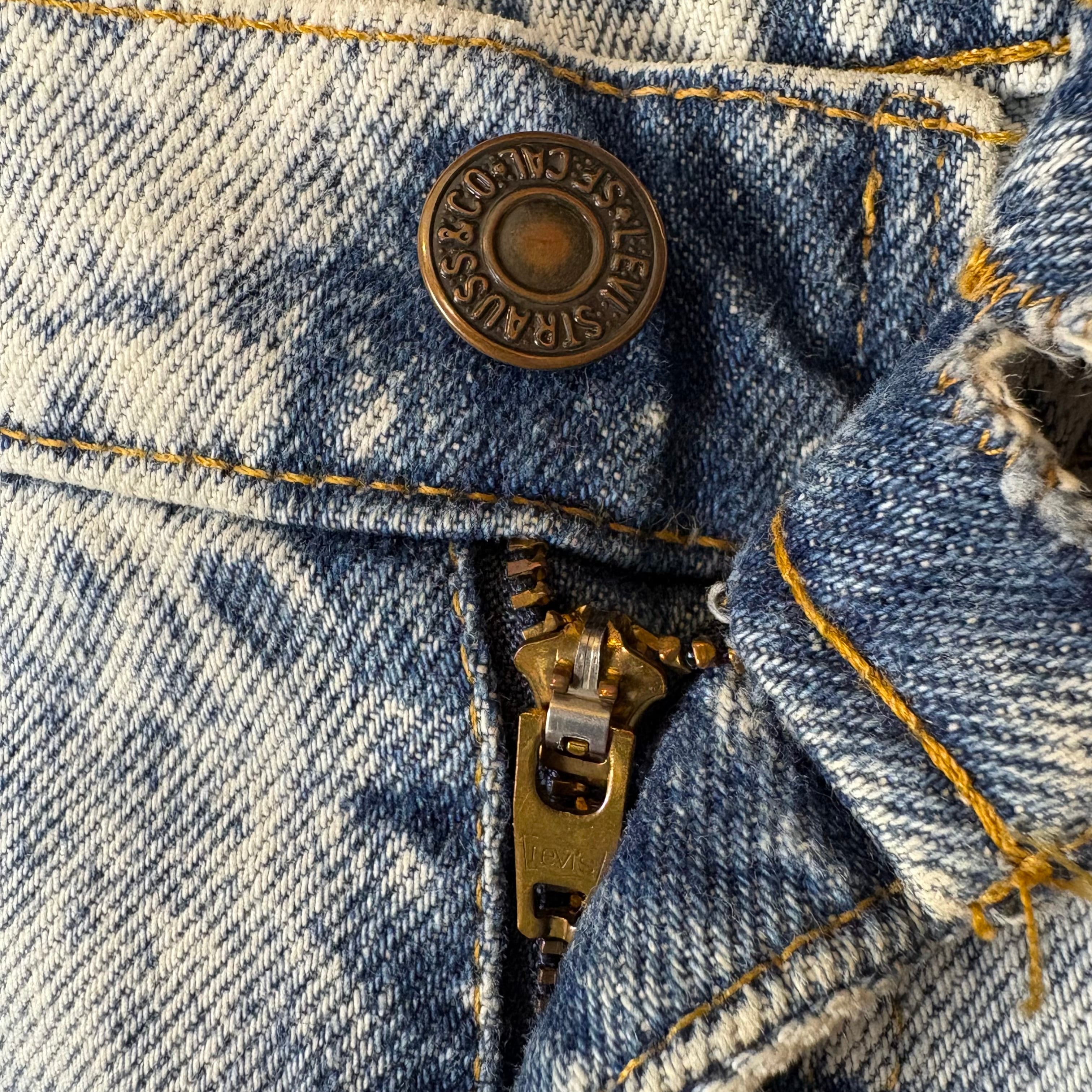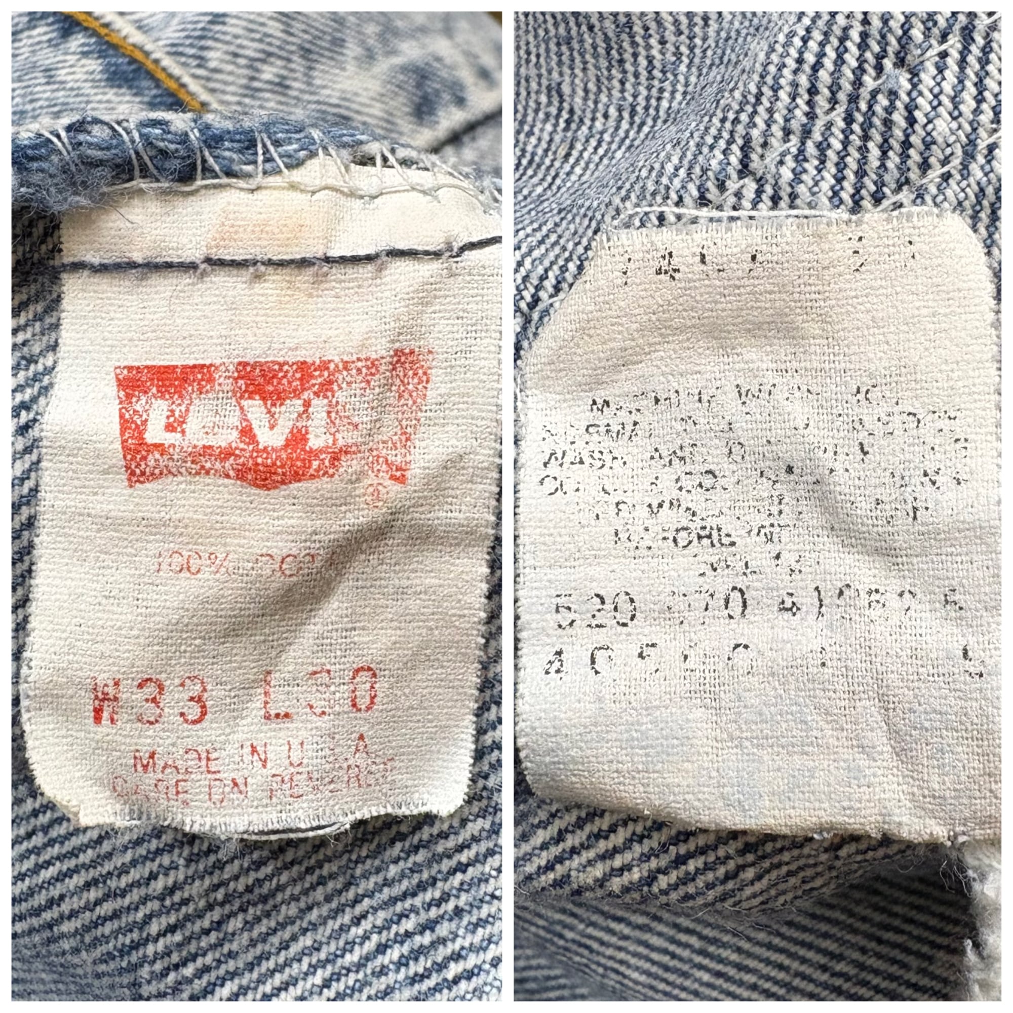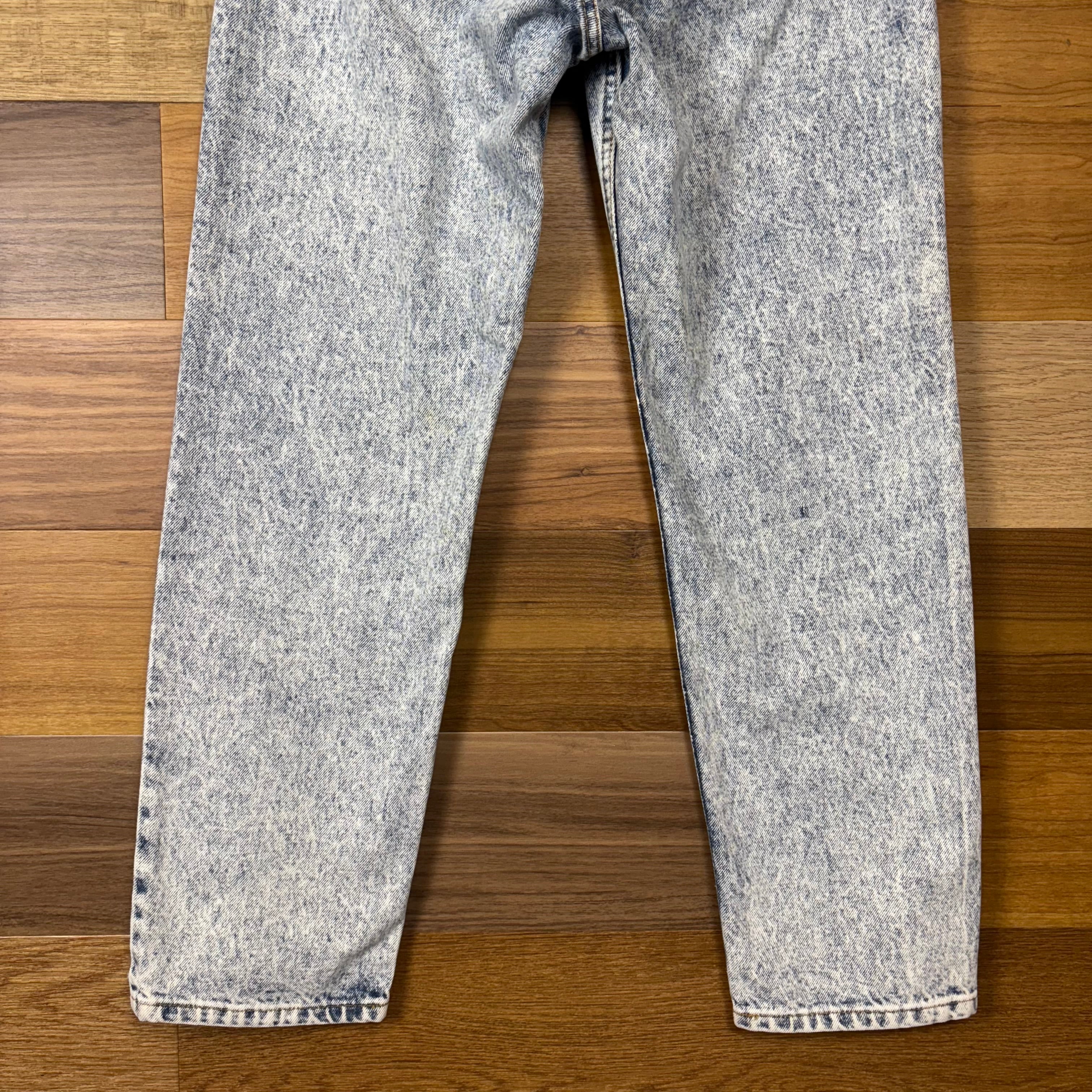 【アイテム】 USA製 90s Levi's リーバイス ケミカルウォッシュ デニム パンツ ジーパン ジーンズ サイズ W33 L30 メンズ M位 トップボタン裏 520 90年代 ビンテージ ヴィンテージ 古着 r25050964 【コンディション】 ・B S→未使用または新品の商品(デッドストック) A→使用感のほぼない、大変状態の良い商品(ミントコンディション) B→使用感はあるが目立つダメージのない商品 C→使用感があり、部分的にダメージがある商品 D→全体的に使用感があり、目立つダメージがある商品 E→ジャンク品 【サイズ】 サイズ表記 W33 L30(メンズ M位) 実寸:ウエスト平置き40cm 股上37cm 股下77cm ワタリ幅32cm 裾幅18cm サイドシーム全長総丈102cm *股上は背面で計測しております。 古着に抵抗のある方は購入をお控え下さい。 画像にてしっかりご確認頂き、気になる点等御座いましたら御購入前にお問い合わせ願います。 ※古着は洗濯、検品などのケアを行っております。(新品・デッドストックは洗濯していません。)