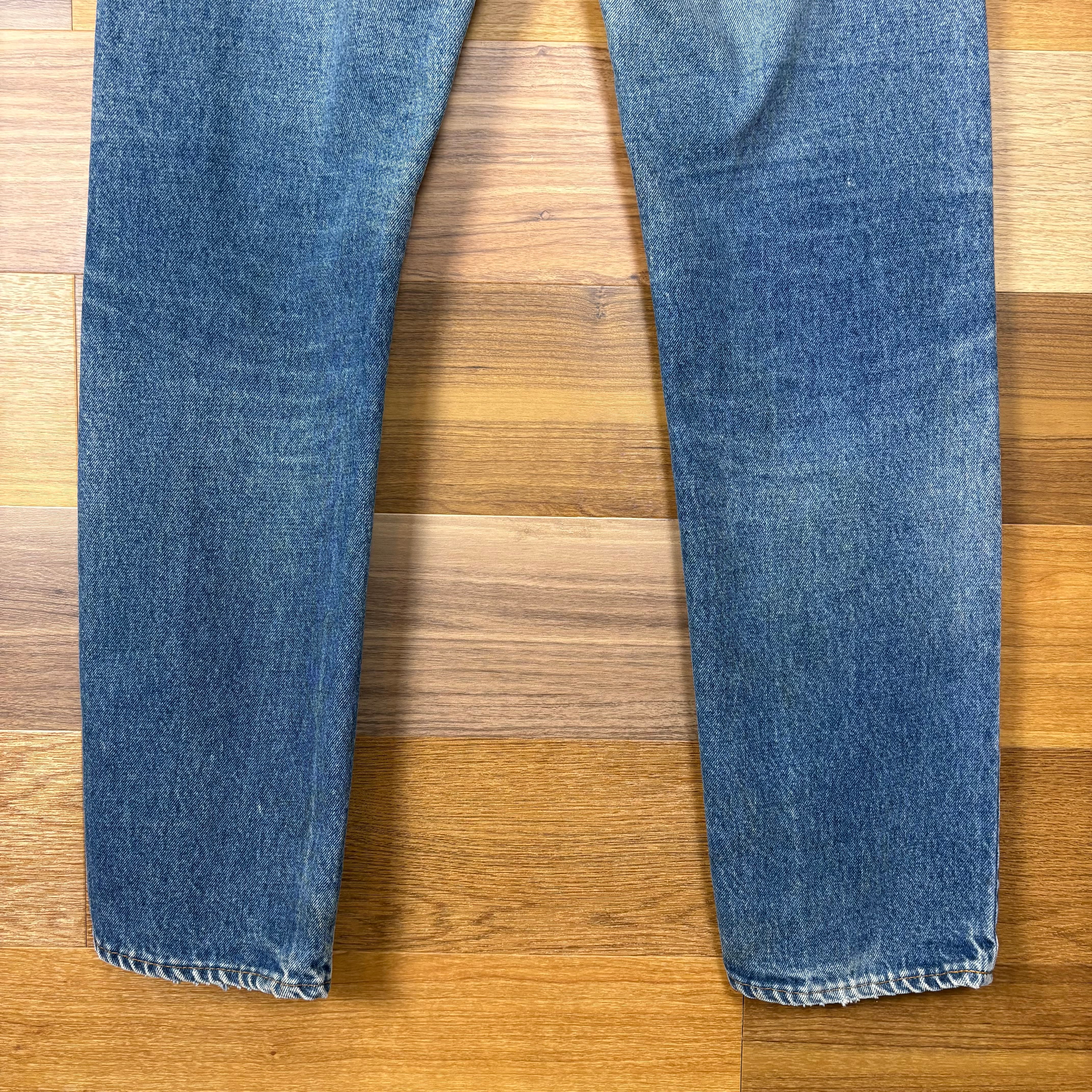 【アイテム】 USA製 80s Levi's 505 リーバイス デニム パンツ ジーパン ジーンズ サイズ W34 L34 メンズ L位 赤タブ トップボタン裏 650 80年代 ビンテージ ヴィンテージ 古着 r25050944 【コンディション】 ・C(内股にタタキによるリペアーが御座います。) S→未使用または新品の商品(デッドストック) A→使用感のほぼない、大変状態の良い商品(ミントコンディション) B→使用感はあるが目立つダメージのない商品 C→使用感があり、部分的にダメージがある商品 D→全体的に使用感があり、目立つダメージがある商品 E→ジャンク品 【サイズ】 サイズ表記 W34 L34(メンズ L位) 実寸:ウエスト平置き42cm 股上39cm 股下84cm ワタリ幅32cm 裾幅18cm サイドシーム全長総丈110cm *股上は背面で計測しております。 古着に抵抗のある方は購入をお控え下さい。 画像にてしっかりご確認頂き、気になる点等御座いましたら御購入前にお問い合わせ願います。 ※古着は洗濯、検品などのケアを行っております。(新品・デッドストックは洗濯していません。)