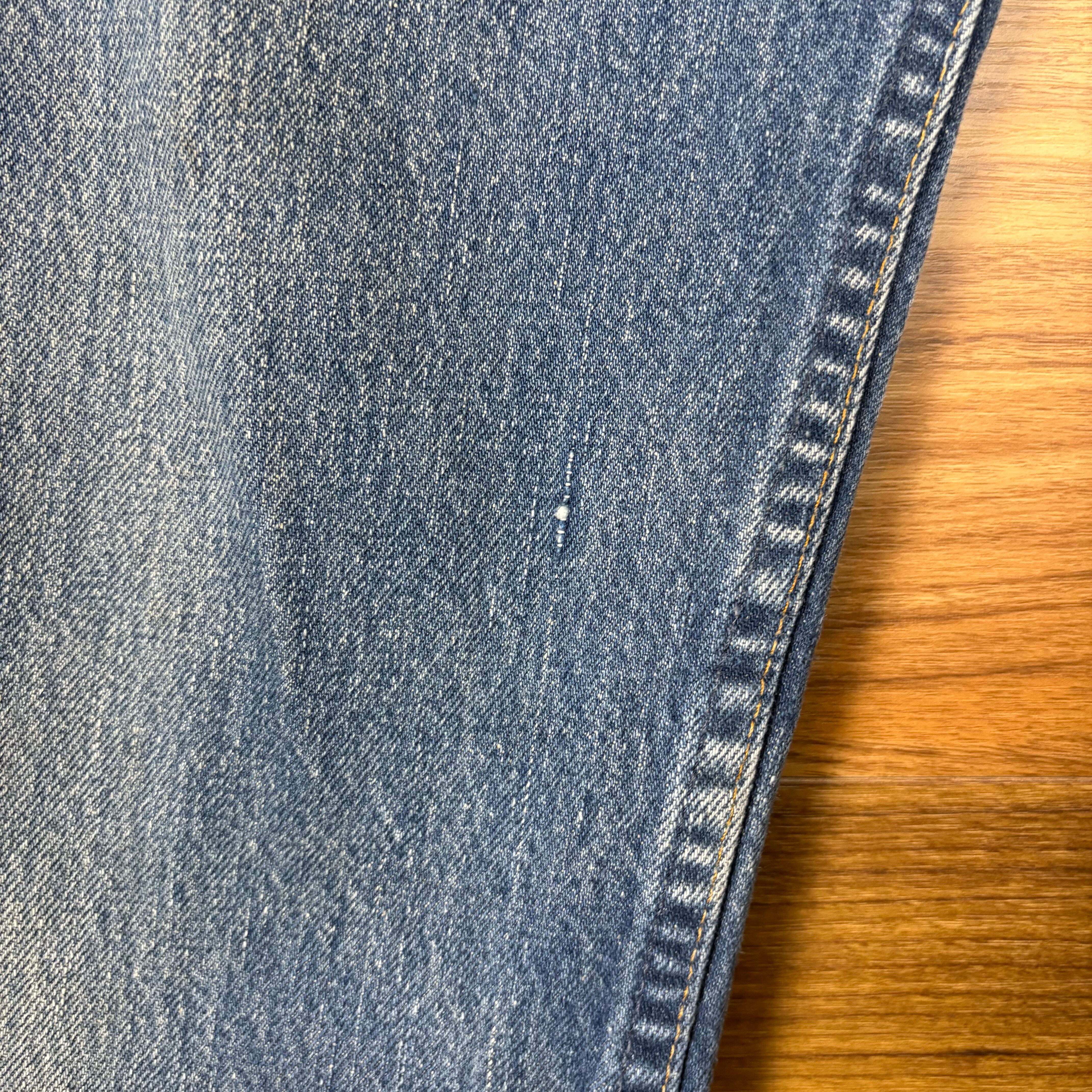 【アイテム】 USA製 80s Levi's 505 リーバイス デニム パンツ ジーパン ジーンズ サイズ W32 L34 メンズ M位 トップボタン裏 判別不可 80年代 ビンテージ ヴィンテージ 古着 r25050947 【コンディション】 ・C(擦れ・色落ち・膝にホツレが御座います。) S→未使用または新品の商品(デッドストック) A→使用感のほぼない、大変状態の良い商品(ミントコンディション) B→使用感はあるが目立つダメージのない商品 C→使用感があり、部分的にダメージがある商品 D→全体的に使用感があり、目立つダメージがある商品 E→ジャンク品 【サイズ】 サイズ表記 W32 L34(メンズ L位) 実寸:ウエスト平置き39cm 股上38cm 股下83cm ワタリ幅30cm 裾幅18cm サイドシーム全長総丈112cm *股上は背面で計測しております。 古着に抵抗のある方は購入をお控え下さい。 画像にてしっかりご確認頂き、気になる点等御座いましたら御購入前にお問い合わせ願います。 ※古着は洗濯、検品などのケアを行っております。(新品・デッドストックは洗濯していません。)