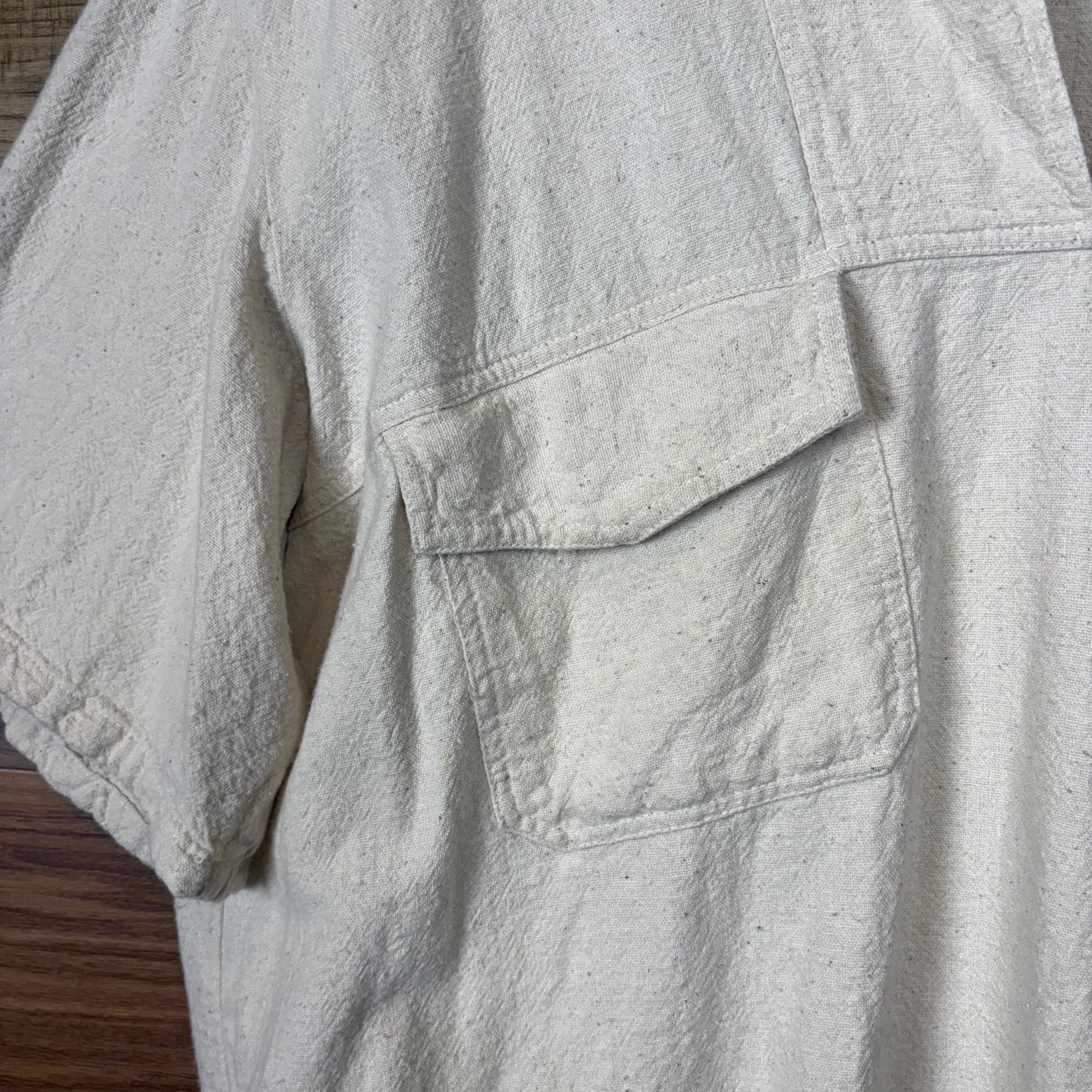 【アイテム】 USA製 80s DRAWSTRINGS リブ付き オープンカラー 半袖シャツ サイズ メンズ XXL 80年代 ビンテージ ヴィンテージ 古着 r25052707 【コンディション】 ・B S→未使用または新品の商品(デッドストック) A→使用感のほぼない、大変状態の良い商品(ミントコンディション) B→使用感はあるが目立つダメージのない商品 C→使用感があり、部分的にダメージがある商品 D→全体的に使用感があり、目立つダメージがある商品 E→ジャンク品 【サイズ】 サイズ表記 メンズ XXL 実寸:肩幅57cm 身幅67cm 着丈76cm 肩から袖丈30cm 脇下から袖丈16cm ※着丈は背面から計測しております。 古着に抵抗のある方は購入をお控え下さい。 画像にてしっかりご確認頂き、気になる点等御座いましたら御購入前にお問い合わせ願います。 ※古着は洗濯、検品などのケアを行っております。(新品・デッドストックは洗濯していません。)