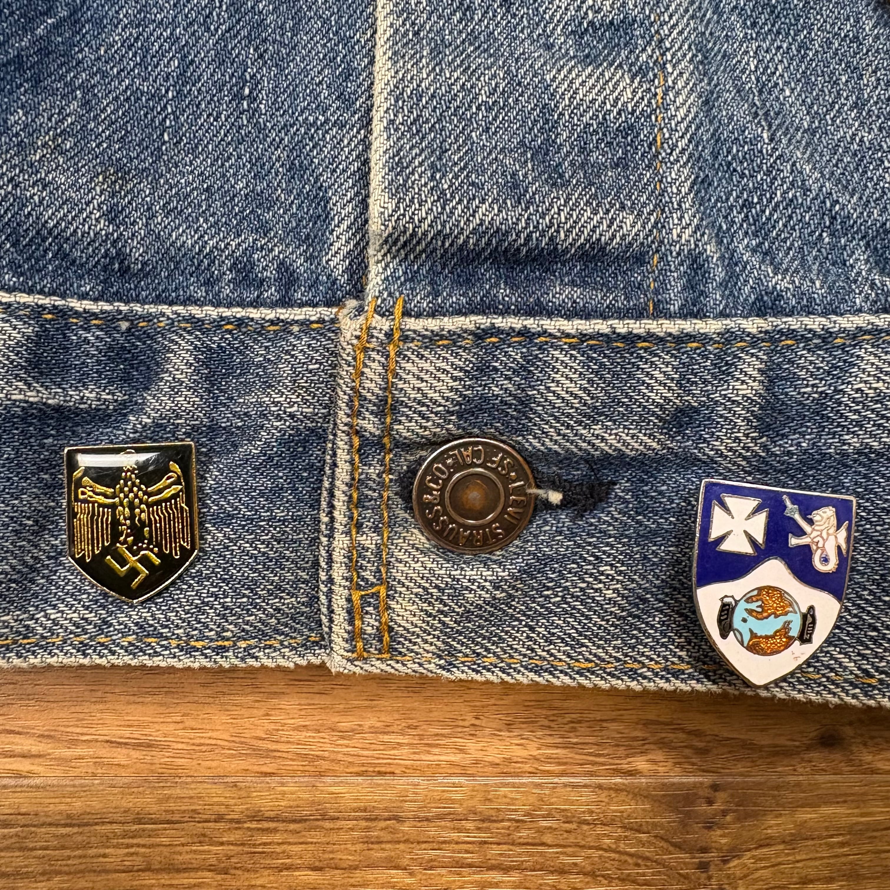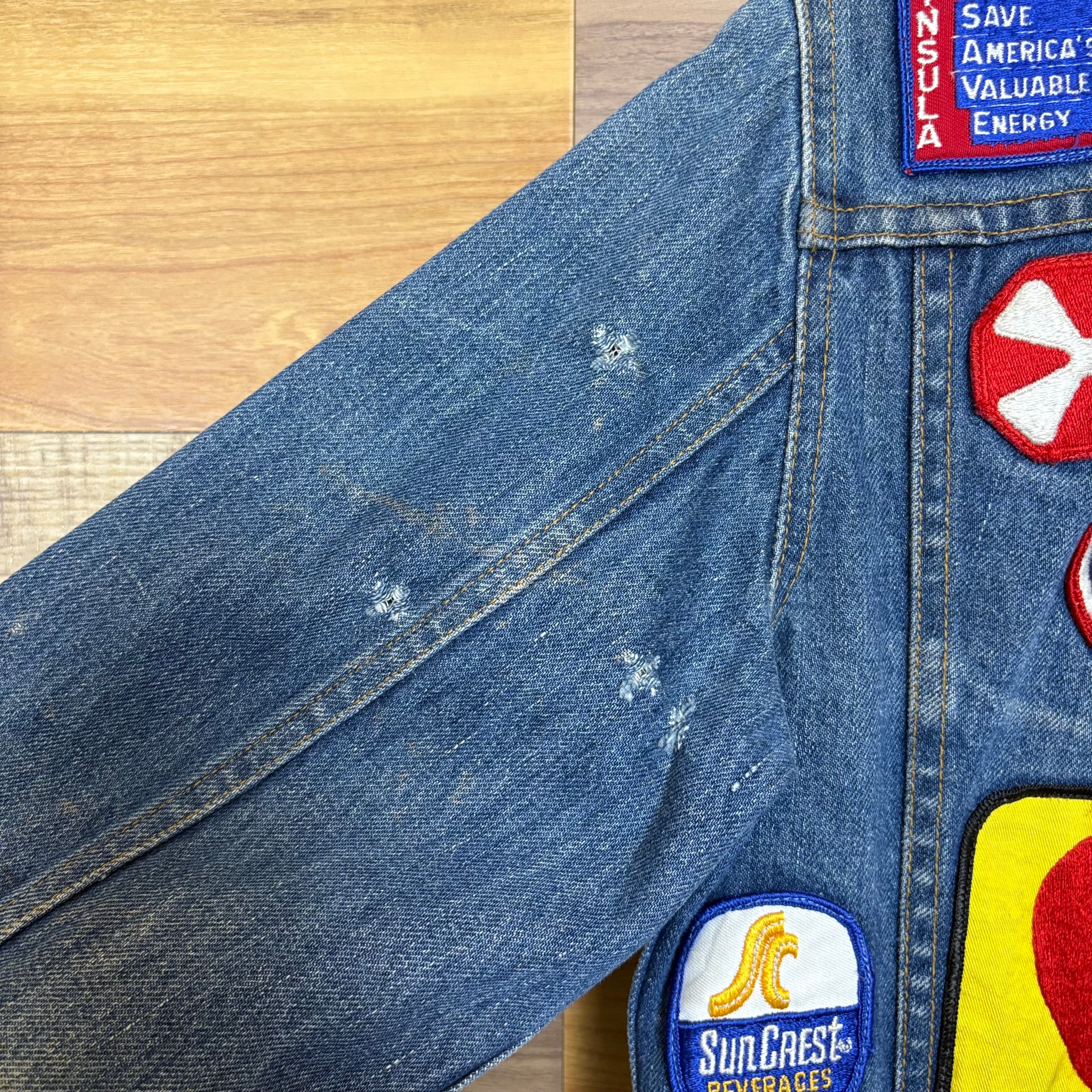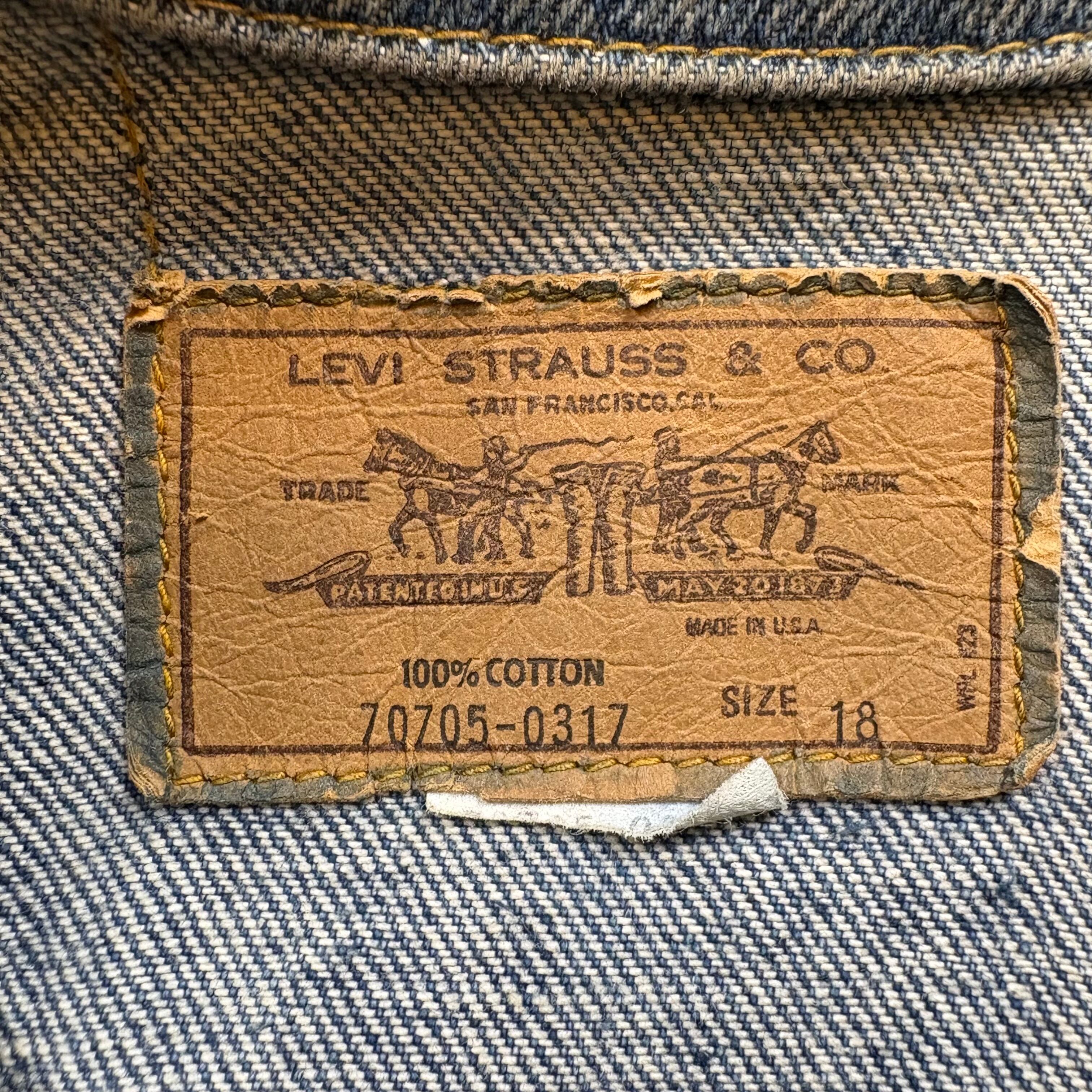 【アイテム】 USA製 70s Levi's 70705-0317 リーバイス ワッペン・ピンズ付き トラッカージャケット デニムジャケット ジージャン Gジャン サイズ 18 メンズ XS位 ボタン裏 529 70年代 ビンテージ ヴィンテージ 古着 r25060612 【コンディション】 ・C(ワッペン抜け・両袖にダメージが御座います。) S→未使用または新品の商品(デッドストック) A→使用感のほぼない、大変状態の良い商品(ミントコンディション) B→使用感はあるが目立つダメージのない商品 C→使用感があり、部分的にダメージがある商品 D→全体的に使用感があり、目立つダメージがある商品 E→ジャンク品 【サイズ】 サイズ表記 18(メンズ XS位) 実寸:肩幅42.5cm 身幅46cm 着丈56cm 肩から袖丈62cm 脇下から袖丈50cm ※着丈は背面から計測しております。 古着に抵抗のある方は購入をお控え下さい。 画像にてしっかりご確認頂き、気になる点等御座いましたら御購入前にお問い合わせ願います。 ※古着は洗濯、検品などのケアを行っております。(新品・デッドストックは洗濯していません。)