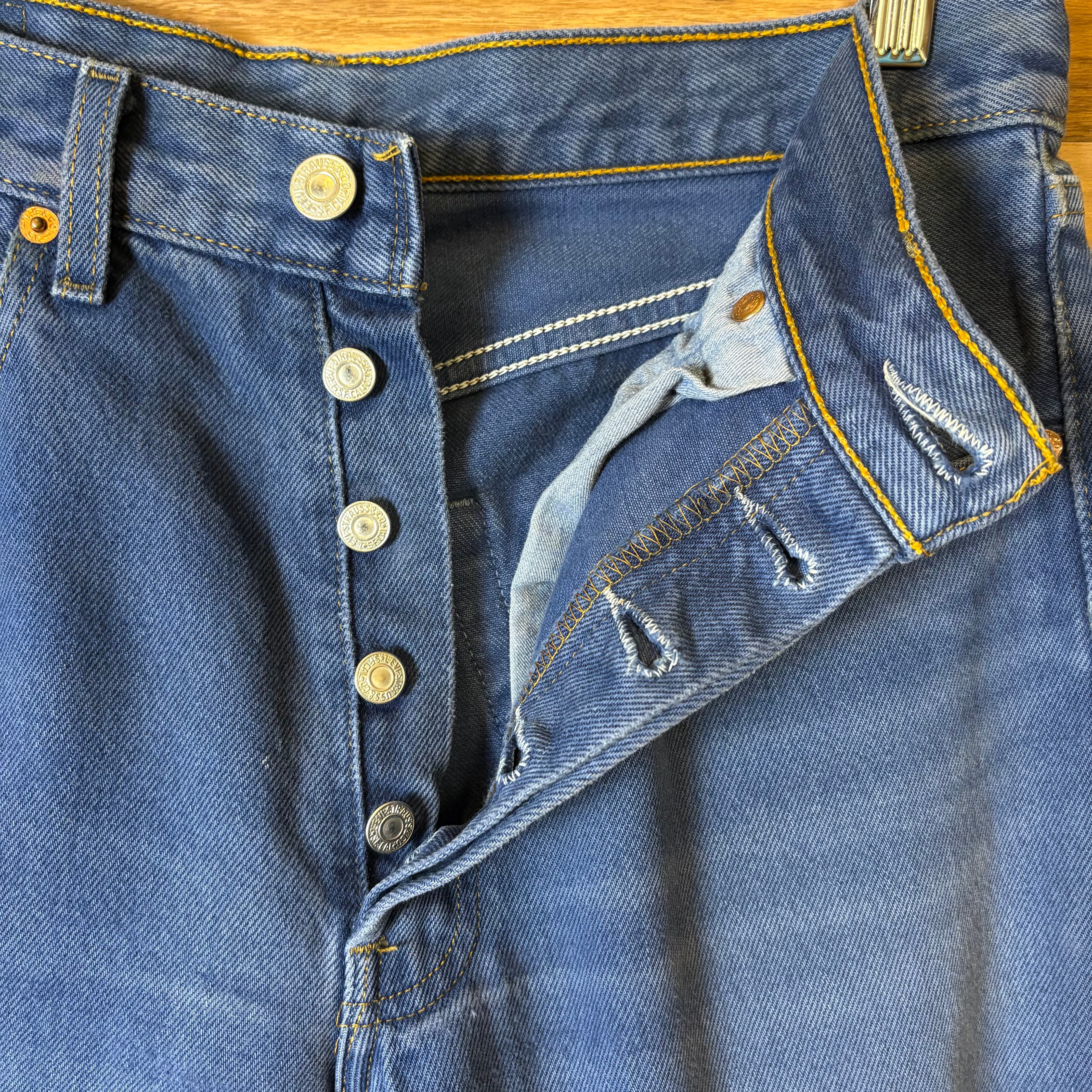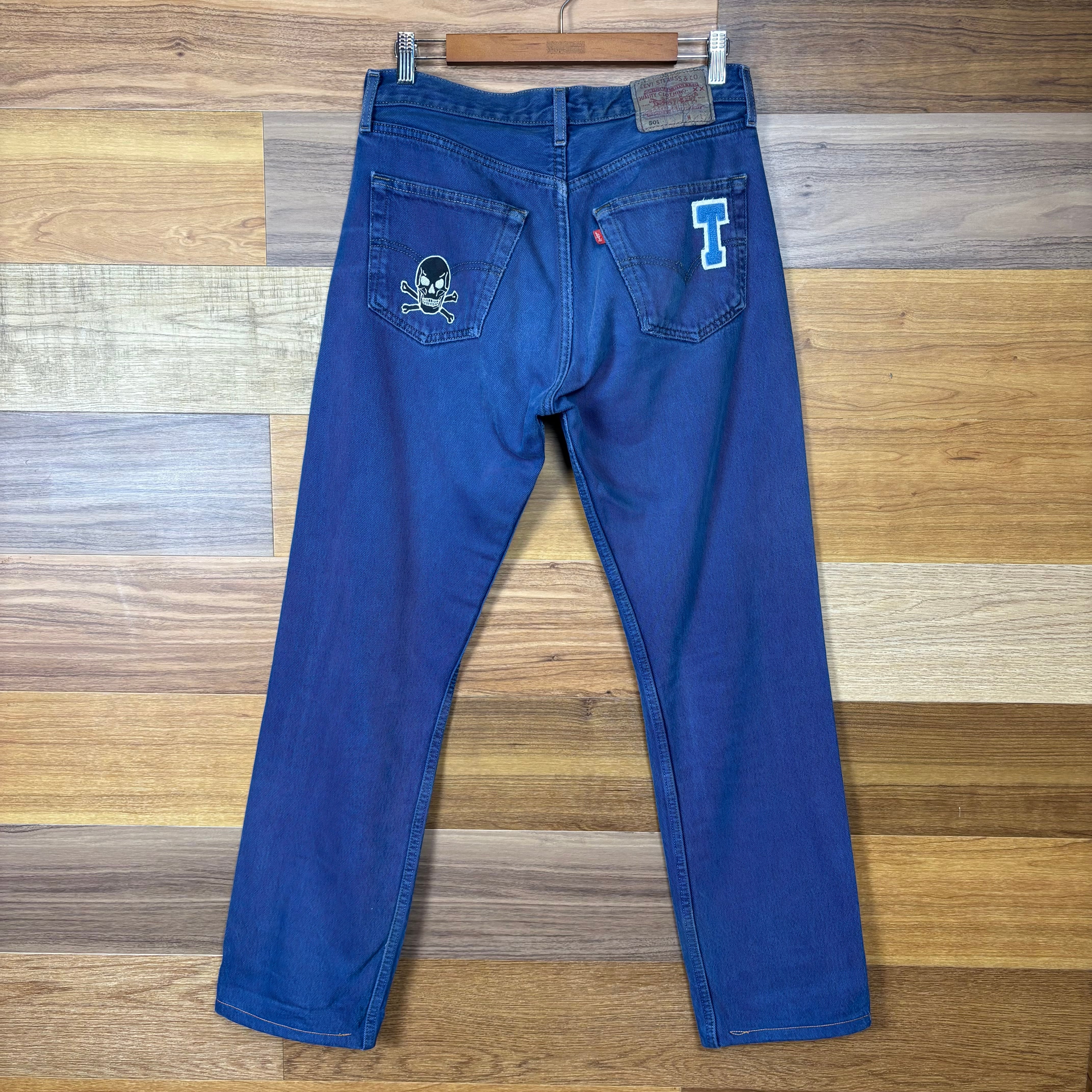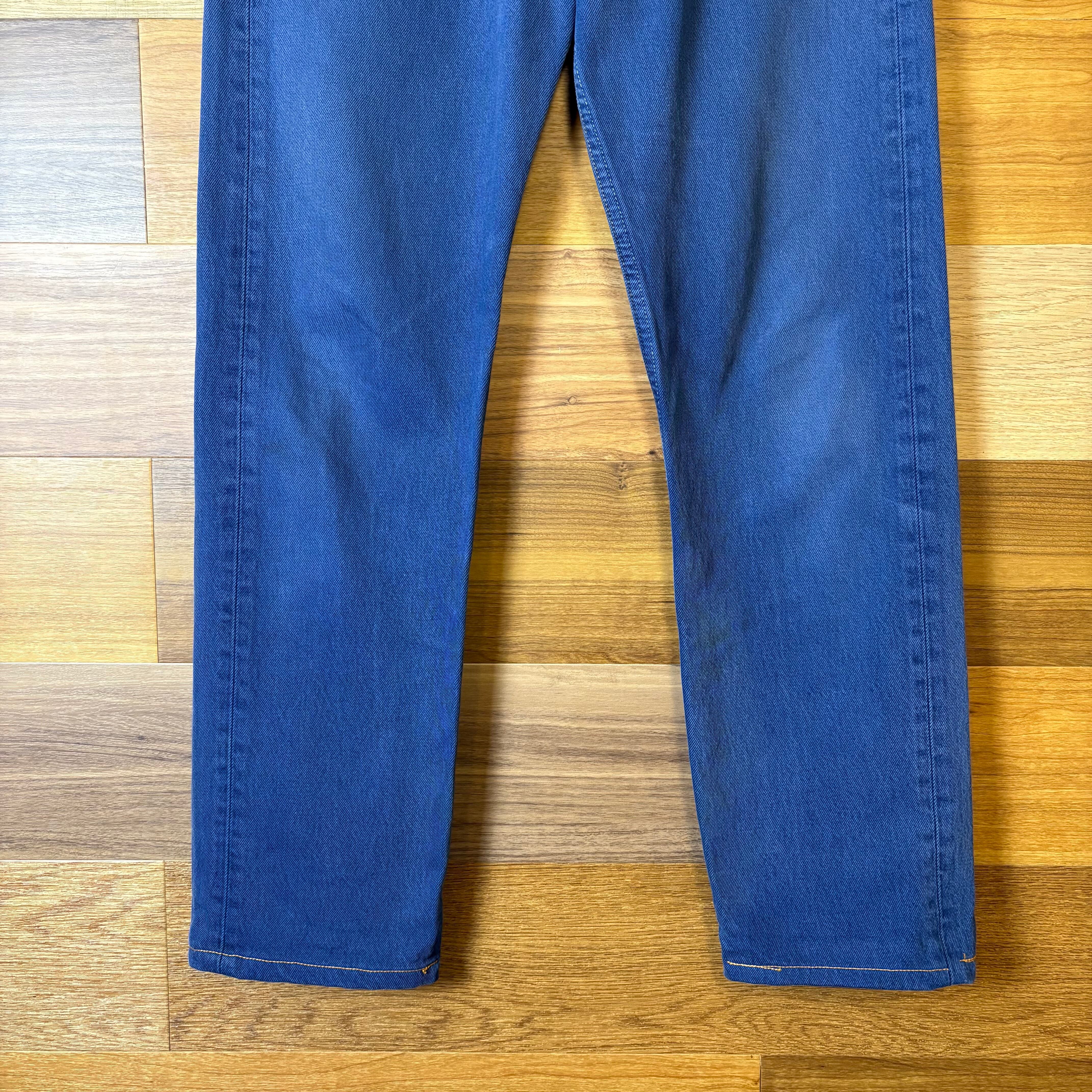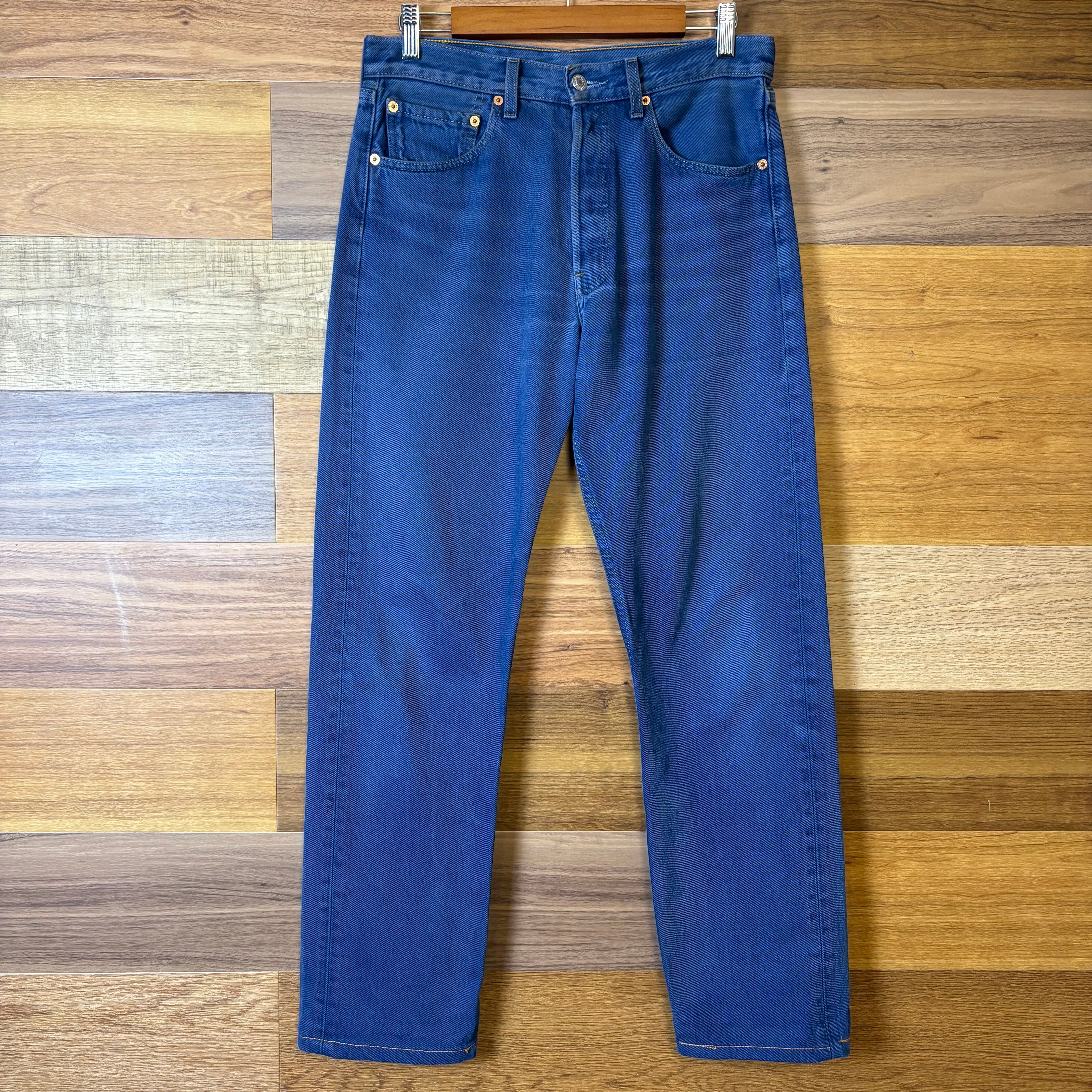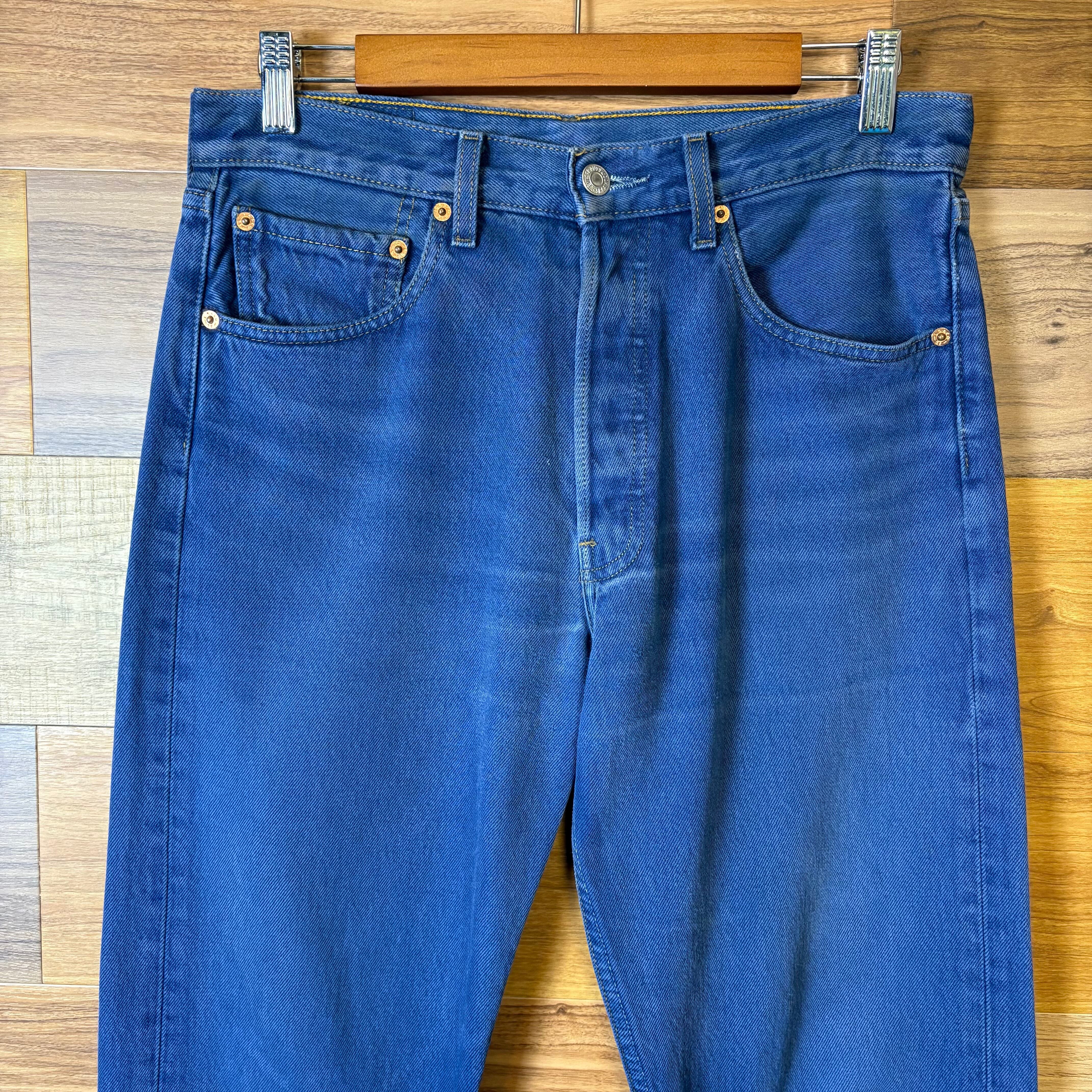 【アイテム】 Levi's 501 後染め ワッペン付き リーバイス デニム パンツ ジーパン ジーンズ サイズ W31 L34 メンズ M位 赤タブ 古着 r25050960 【コンディション】 ・B S→未使用または新品の商品(デッドストック) A→使用感のほぼない、大変状態の良い商品(ミントコンディション) B→使用感はあるが目立つダメージのない商品 C→使用感があり、部分的にダメージがある商品 D→全体的に使用感があり、目立つダメージがある商品 E→ジャンク品 【サイズ】 サイズ表記 W31 L34(メンズ M位) 実寸:ウエスト平置き39cm 股上36cm 股下78cm ワタリ幅31cm 裾幅19.5cm サイドシーム全長総丈104cm *股上は背面で計測しております。 古着に抵抗のある方は購入をお控え下さい。 画像にてしっかりご確認頂き、気になる点等御座いましたら御購入前にお問い合わせ願います。 ※古着は洗濯、検品などのケアを行っております。(新品・デッドストックは洗濯していません。)