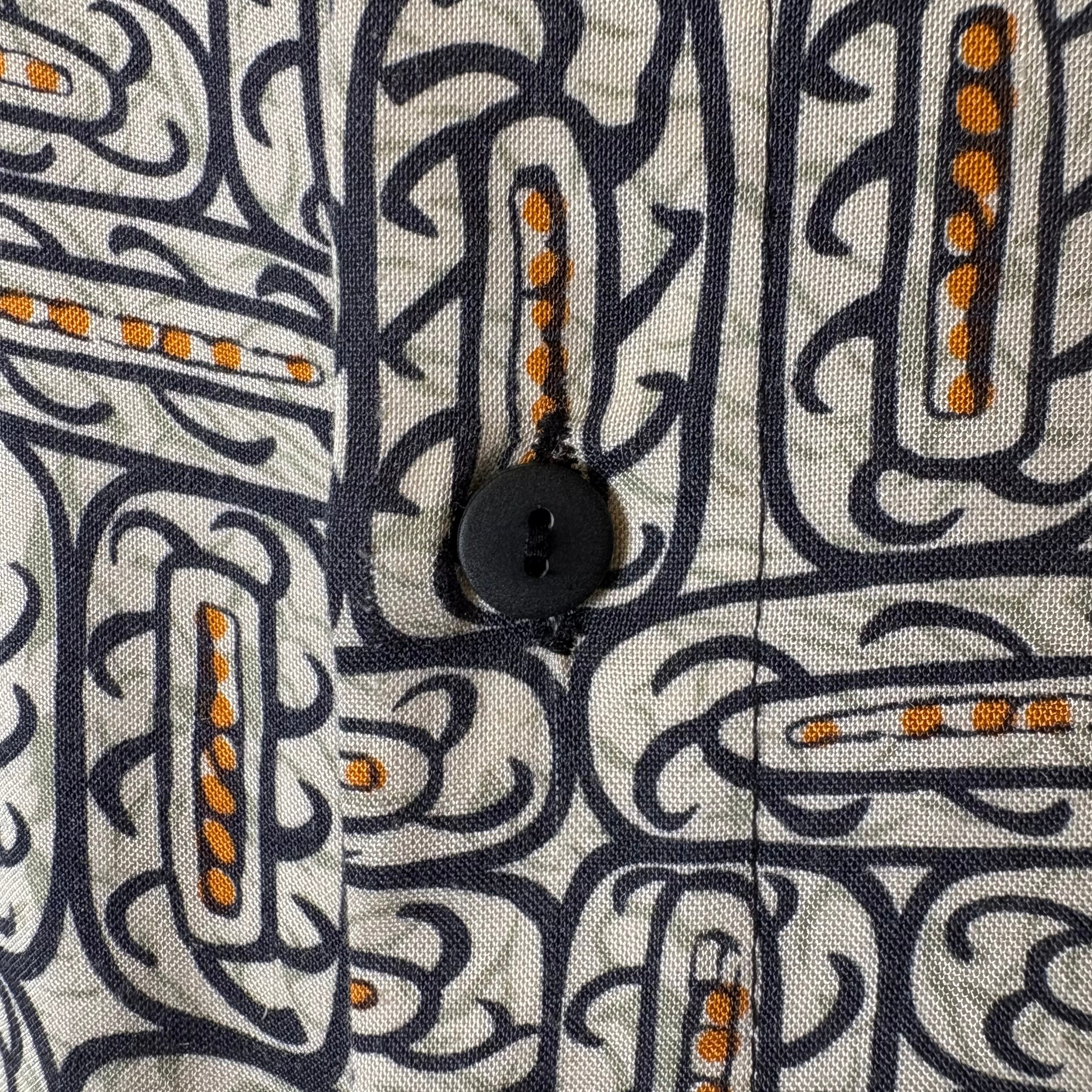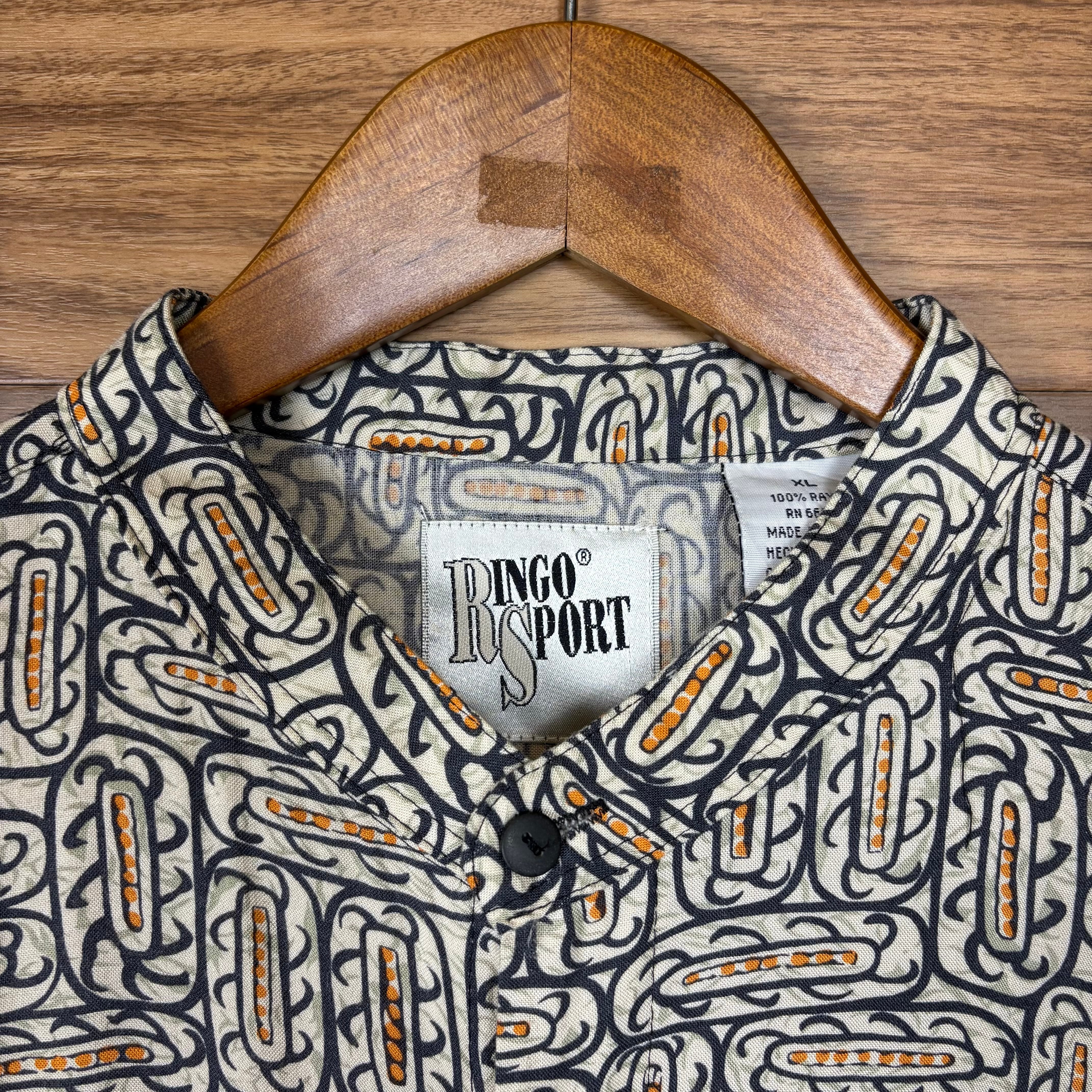 【アイテム】 90s RINGO SPORT ノーカラー 総柄 レーヨン シャツ 半袖シャツ サイズ メンズ XL 90年代 ビンテージ ヴィンテージ 古着 r25052703 【コンディション】 ・B S→未使用または新品の商品(デッドストック) A→使用感のほぼない、大変状態の良い商品(ミントコンディション) B→使用感はあるが目立つダメージのない商品 C→使用感があり、部分的にダメージがある商品 D→全体的に使用感があり、目立つダメージがある商品 E→ジャンク品 【サイズ】 サイズ表記 メンズ XL 実寸:肩幅61cm 身幅64cm 着丈87cm 肩から袖丈28cm 脇下から袖丈17cm ※着丈は背面から計測しております。 古着に抵抗のある方は購入をお控え下さい。 画像にてしっかりご確認頂き、気になる点等御座いましたら御購入前にお問い合わせ願います。 ※古着は洗濯、検品などのケアを行っております。(新品・デッドストックは洗濯していません。)