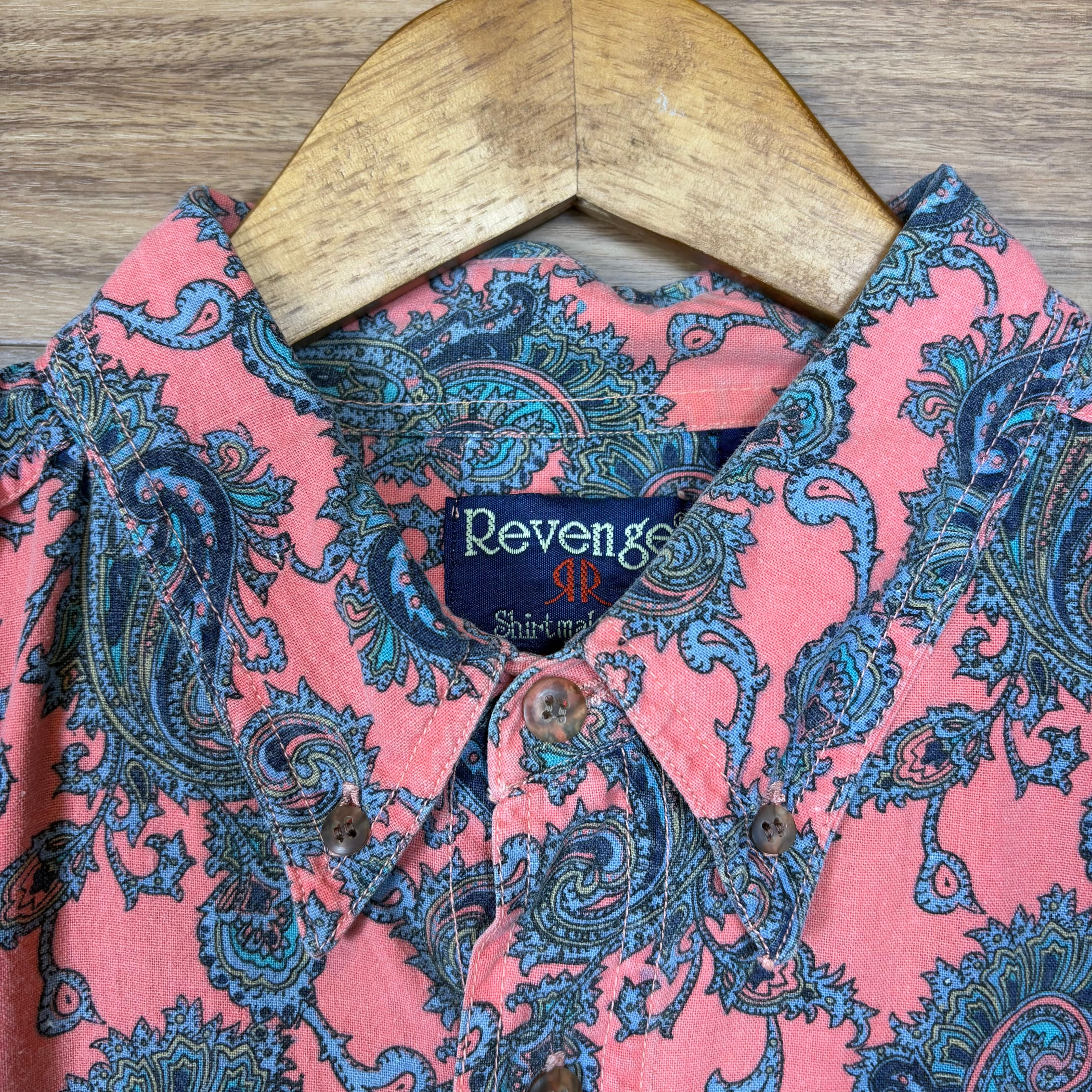 【アイテム】 90s Revenge ペイズリー 総柄 半袖 シャツ サイズ メンズ L 90年代 ビンテージ ヴィンテージ 古着 r25052746 【コンディション】 ・B S→未使用または新品の商品(デッドストック) A→使用感のほぼない、大変状態の良い商品(ミントコンディション) B→使用感はあるが目立つダメージのない商品 C→使用感があり、部分的にダメージがある商品 D→全体的に使用感があり、目立つダメージがある商品 E→ジャンク品 【サイズ】 サイズ表記 メンズ L 実寸:肩幅55cm 身幅61cm 着丈81cm 肩から袖丈27cm 脇下から袖丈19cm ※着丈は背面から計測しております。 古着に抵抗のある方は購入をお控え下さい。 画像にてしっかりご確認頂き、気になる点等御座いましたら御購入前にお問い合わせ願います。 ※古着は洗濯、検品などのケアを行っております。(新品・デッドストックは洗濯していません。)