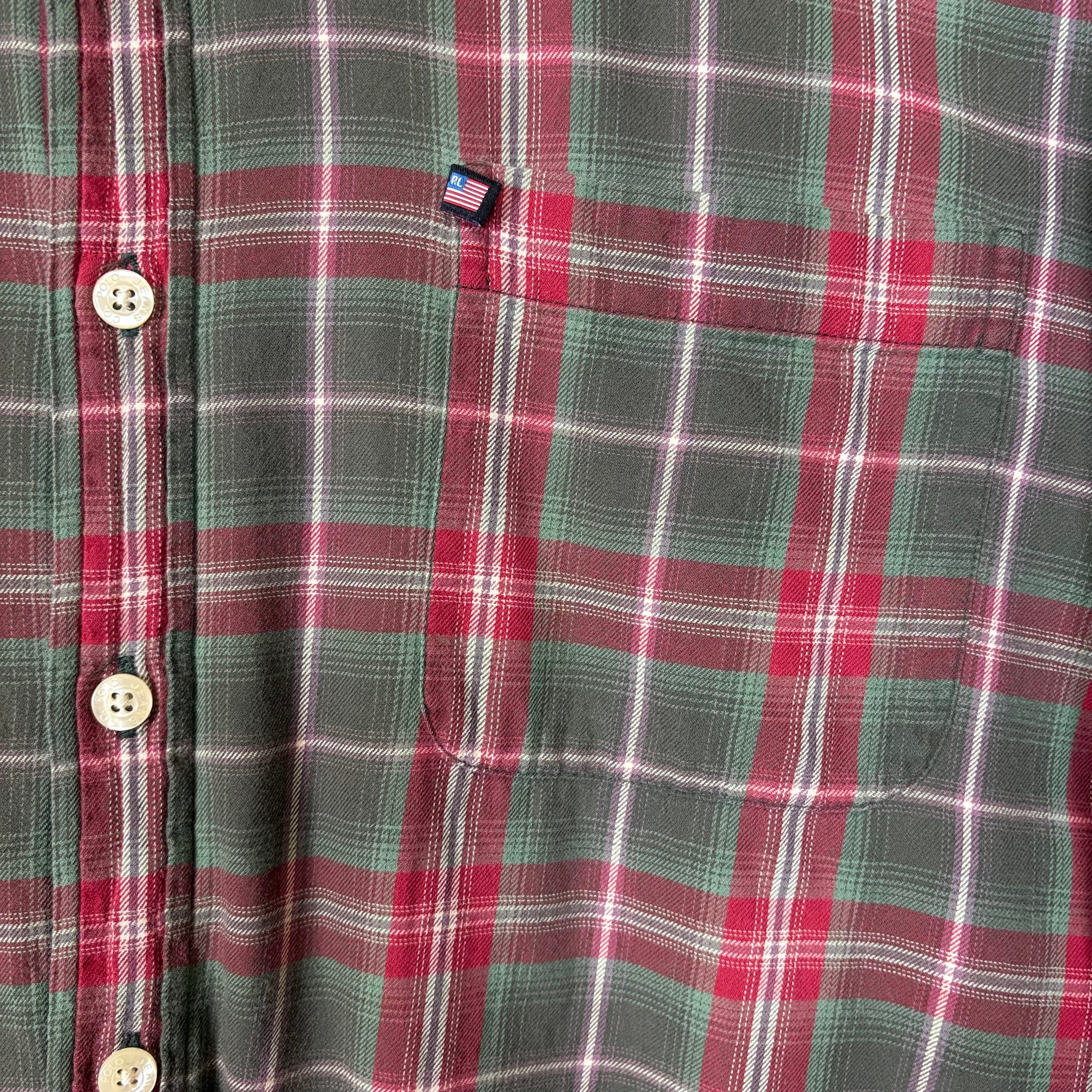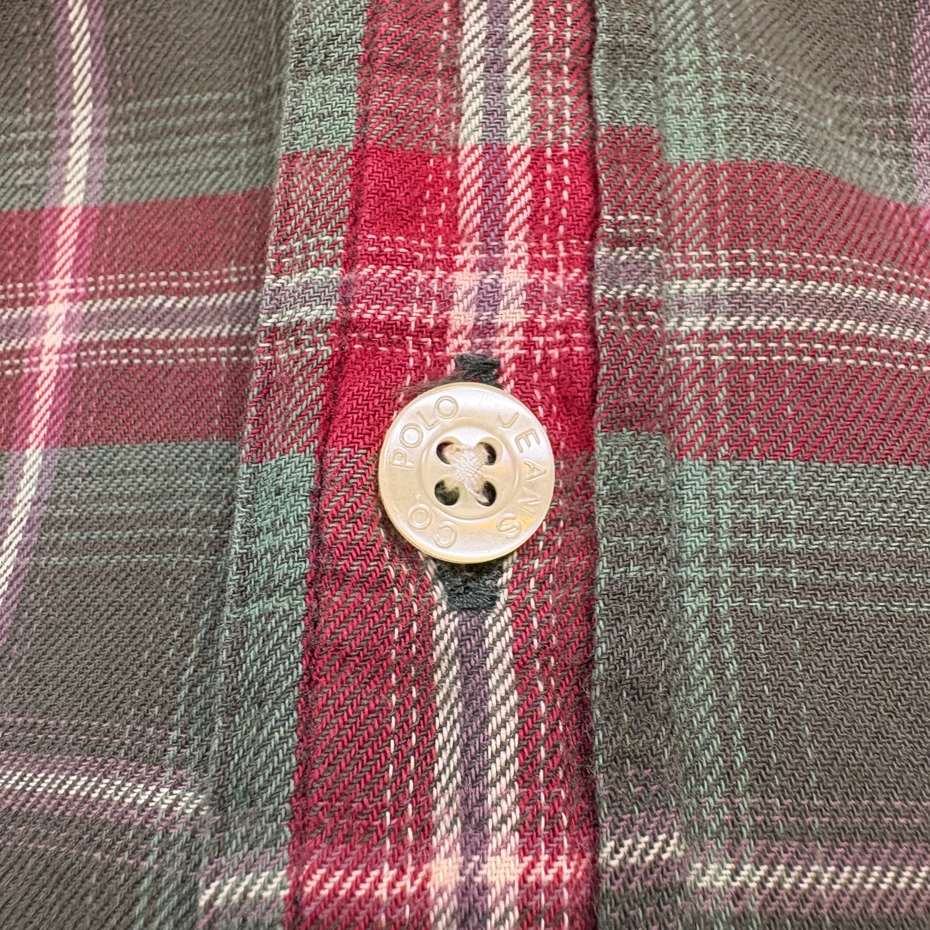 【アイテム】 90s Ralph Laure Jeans Co. ラルフローレン ジーンズ ボタンダウン シャツ 長袖シャツ サイズ メンズ L 90年代 ビンテージ ヴィンテージ 古着 r25060606 【コンディション】 ・B S→未使用または新品の商品(デッドストック) A→使用感のほぼない、大変状態の良い商品(ミントコンディション) B→使用感はあるが目立つダメージのない商品 C→使用感があり、部分的にダメージがある商品 D→全体的に使用感があり、目立つダメージがある商品 E→ジャンク品 【サイズ】 サイズ表記 メンズ L 実寸:肩幅54cm 身幅66cm 着丈82cm 肩から袖丈63cm 脇下から袖丈56cm ※着丈は背面から計測しております。 古着に抵抗のある方は購入をお控え下さい。 画像にてしっかりご確認頂き、気になる点等御座いましたら御購入前にお問い合わせ願います。 ※古着は洗濯、検品などのケアを行っております。(新品・デッドストックは洗濯していません。)
