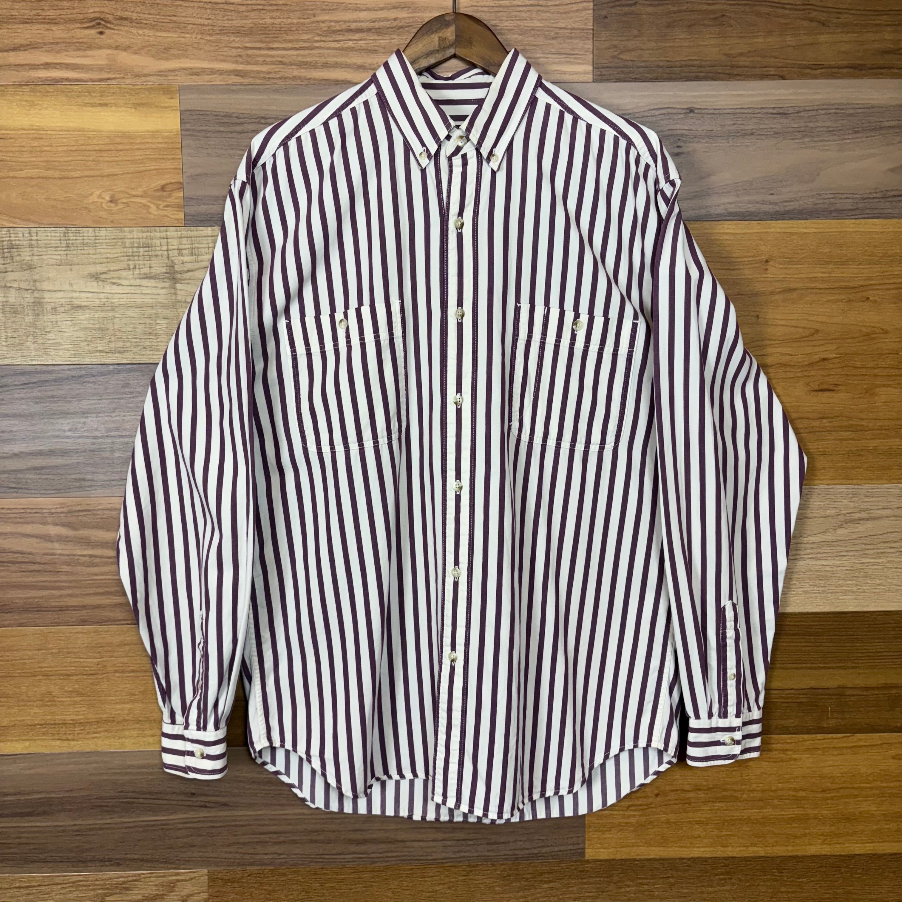 【アイテム】 80s~90s Eddie Bauer エディーバウアー 黒タグ ストライプ柄 長袖シャツ サイズ メンズ L 80年代 90年代 ビンテージ ヴィンテージ アウトドア 古着 r25052783 【コンディション】 ・B S→未使用または新品の商品(デッドストック) A→使用感のほぼない、大変状態の良い商品(ミントコンディション) B→使用感はあるが目立つダメージのない商品 C→使用感があり、部分的にダメージがある商品 D→全体的に使用感があり、目立つダメージがある商品 E→ジャンク品 【サイズ】 サイズ表記 メンズ L 実寸:肩幅54cm 身幅60cm 着丈83cm 肩から袖丈67cm 脇下から袖丈54cm ※着丈は背面から計測しております。 古着に抵抗のある方は購入をお控え下さい。 画像にてしっかりご確認頂き、気になる点等御座いましたら御購入前にお問い合わせ願います。 ※古着は洗濯、検品などのケアを行っております。(新品・デッドストックは洗濯していません。)