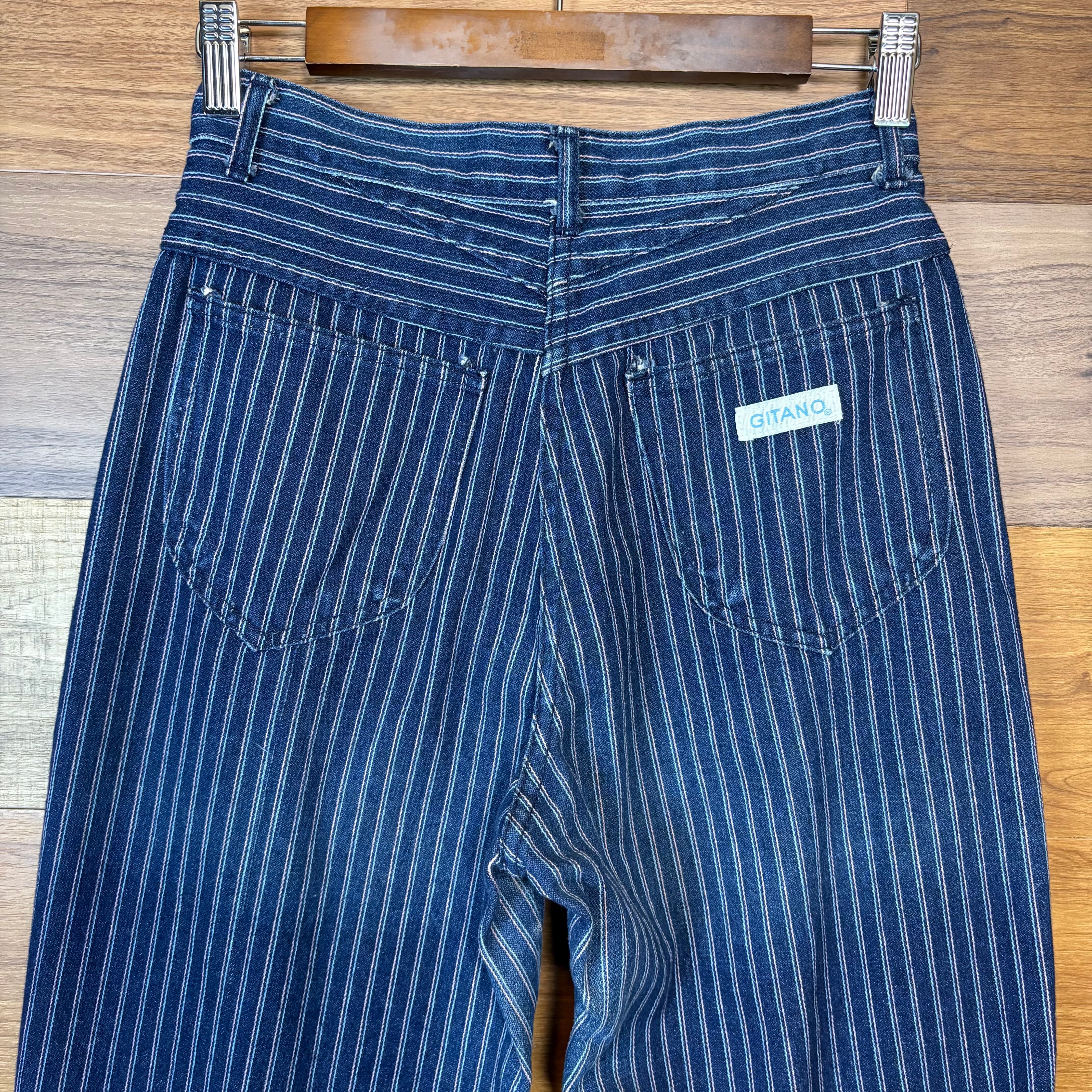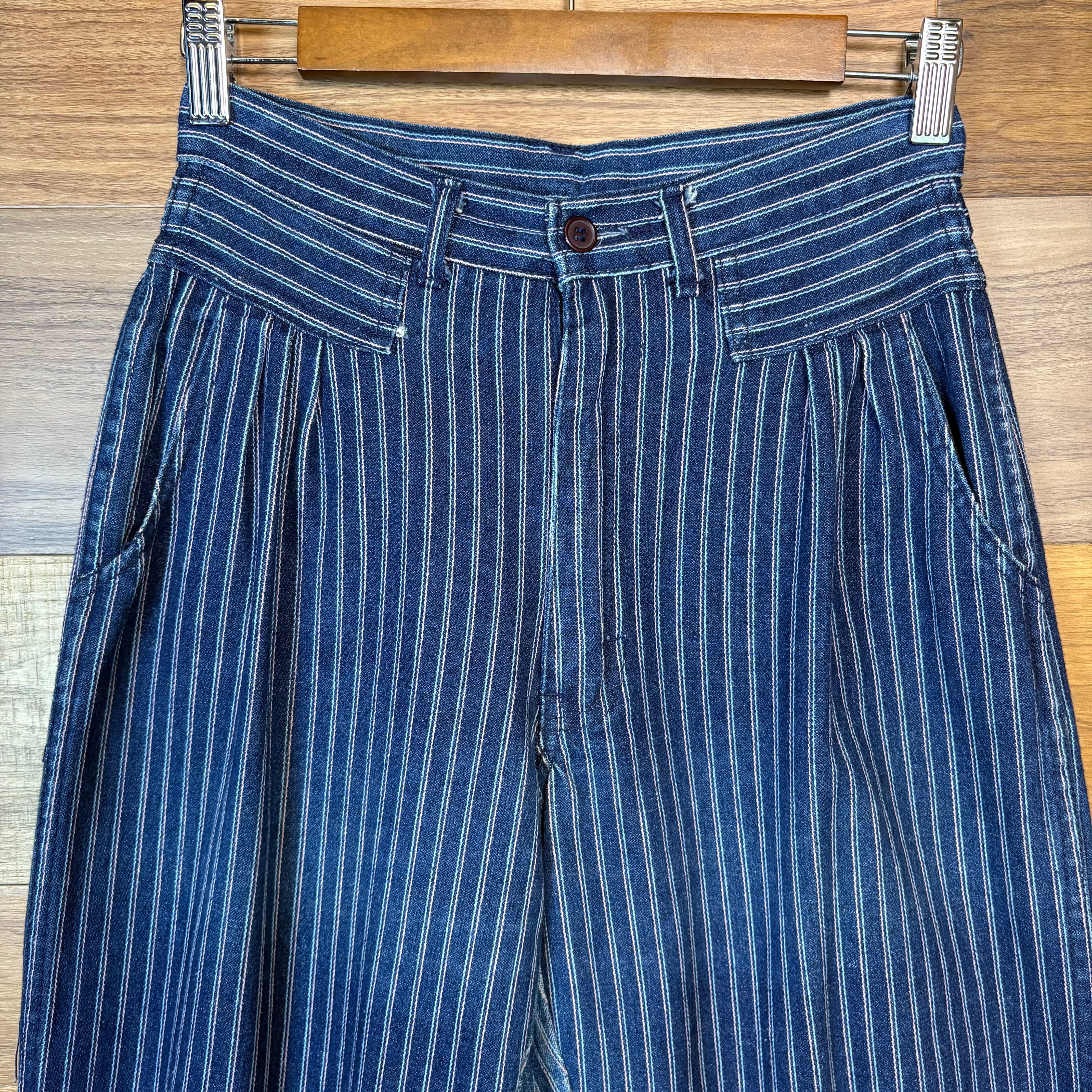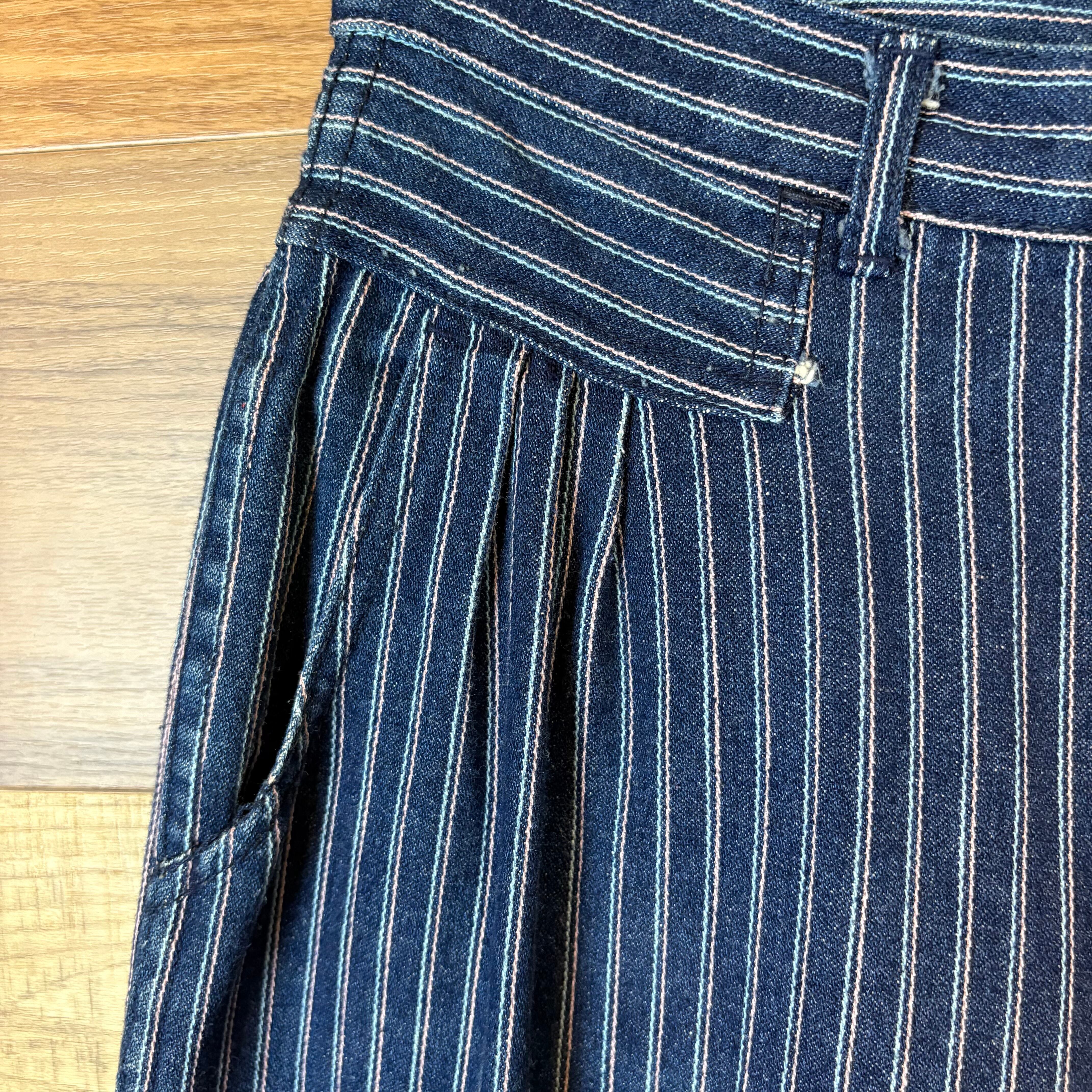 【アイテム】 80s GITANO スリータック ストライプ デニム デザイン パンツ サイズ レディース S位 80年代 ビンテージ ヴィンテージ 古着 r25050922 【コンディション】 ・C(色褪せが御座います。) S→未使用または新品の商品(デッドストック) A→使用感のほぼない、大変状態の良い商品(ミントコンディション) B→使用感はあるが目立つダメージのない商品 C→使用感があり、部分的にダメージがある商品 D→全体的に使用感があり、目立つダメージがある商品 E→ジャンク品 【サイズ】 サイズ表記 9/10(レディース S位) 実寸:ウエスト平置き32cm 股上38cm 股下70cm ワタリ幅32cm 裾幅18cm サイドシーム全長総丈96cm *股上は背面で計測しております。 古着に抵抗のある方は購入をお控え下さい。 画像にてしっかりご確認頂き、気になる点等御座いましたら御購入前にお問い合わせ願います。 ※古着は洗濯、検品などのケアを行っております。(新品・デッドストックは洗濯していません。)