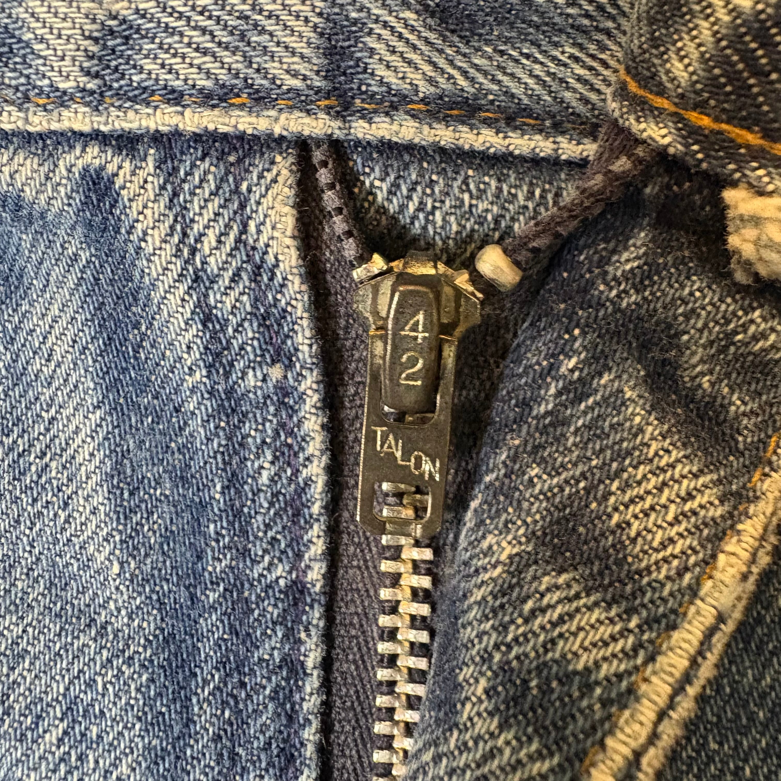 【アイテム】 70s~80s ELY デニム パンツ ジーパン ジーンズ サイズ メンズ M位 42TALON 70年代 80年代 ビンテージ ヴィンテージ 古着 r25050970 【コンディション】 ・B S→未使用または新品の商品(デッドストック) A→使用感のほぼない、大変状態の良い商品(ミントコンディション) B→使用感はあるが目立つダメージのない商品 C→使用感があり、部分的にダメージがある商品 D→全体的に使用感があり、目立つダメージがある商品 E→ジャンク品 【サイズ】 サイズ表記 無(メンズ M位) 実寸:ウエスト平置き40cm 股上39cm 股下74cm ワタリ幅32cm 裾幅21cm サイドシーム全長総丈101cm *股上は背面で計測しております。 古着に抵抗のある方は購入をお控え下さい。 画像にてしっかりご確認頂き、気になる点等御座いましたら御購入前にお問い合わせ願います。 ※古着は洗濯、検品などのケアを行っております。(新品・デッドストックは洗濯していません。)