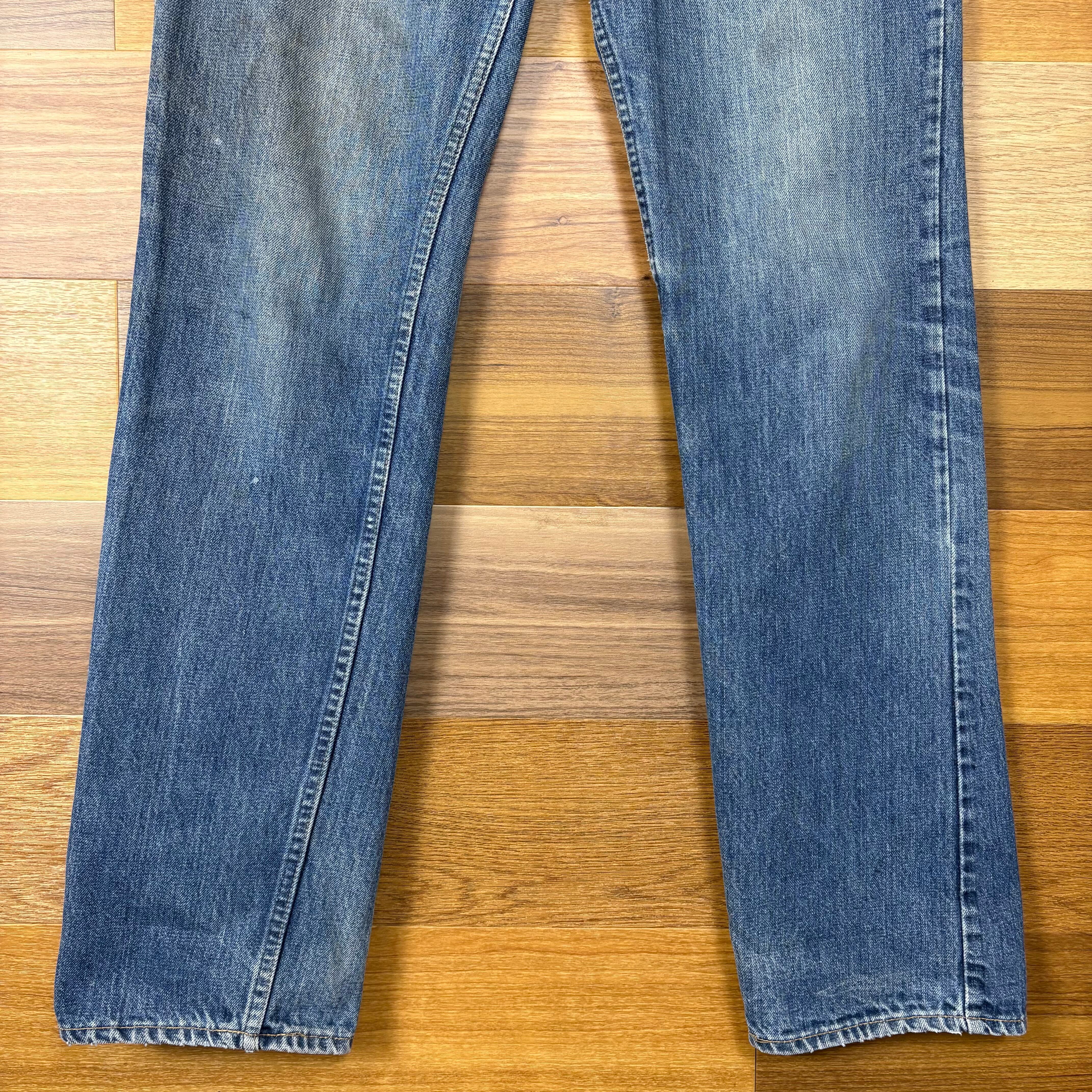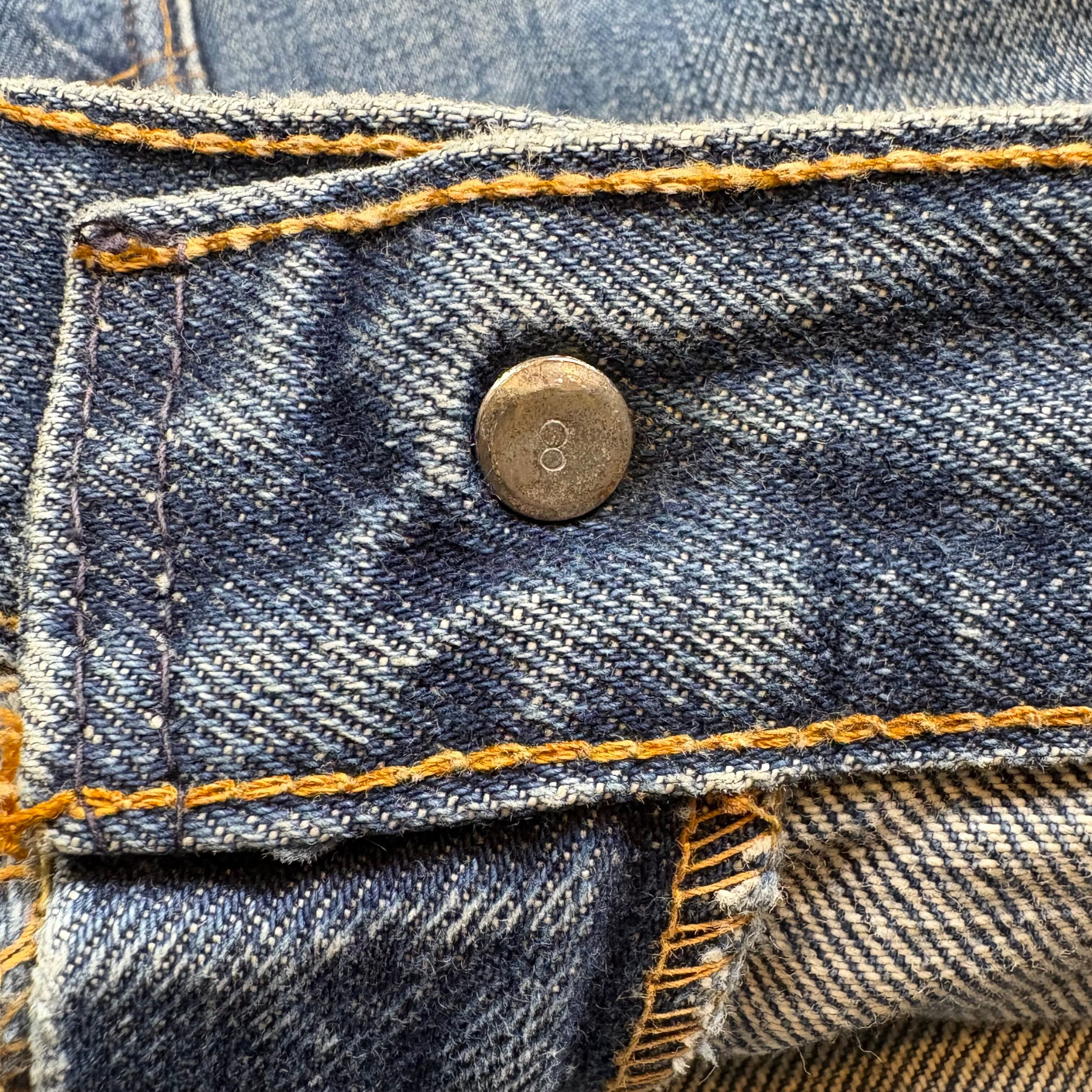 【アイテム】 70s Levi's リーバイス デニム パンツ ジーパン ジーンズ サイズ メンズ XL位 トップボタン裏 8 42タロン 70年代 ビンテージ ヴィンテージ 古着 r25050949 【コンディション】 ・C(擦れ・汚れ・細かいダメージが御座います。) S→未使用または新品の商品(デッドストック) A→使用感のほぼない、大変状態の良い商品(ミントコンディション) B→使用感はあるが目立つダメージのない商品 C→使用感があり、部分的にダメージがある商品 D→全体的に使用感があり、目立つダメージがある商品 E→ジャンク品 【サイズ】 サイズ表記 無(メンズ XL位) 実寸:ウエスト平置き44cm 股上38cm 股下89cm ワタリ幅32cm 裾幅20cm サイドシーム全長総丈117cm *股上は背面で計測しております。 古着に抵抗のある方は購入をお控え下さい。 画像にてしっかりご確認頂き、気になる点等御座いましたら御購入前にお問い合わせ願います。 ※古着は洗濯、検品などのケアを行っております。(新品・デッドストックは洗濯していません。)