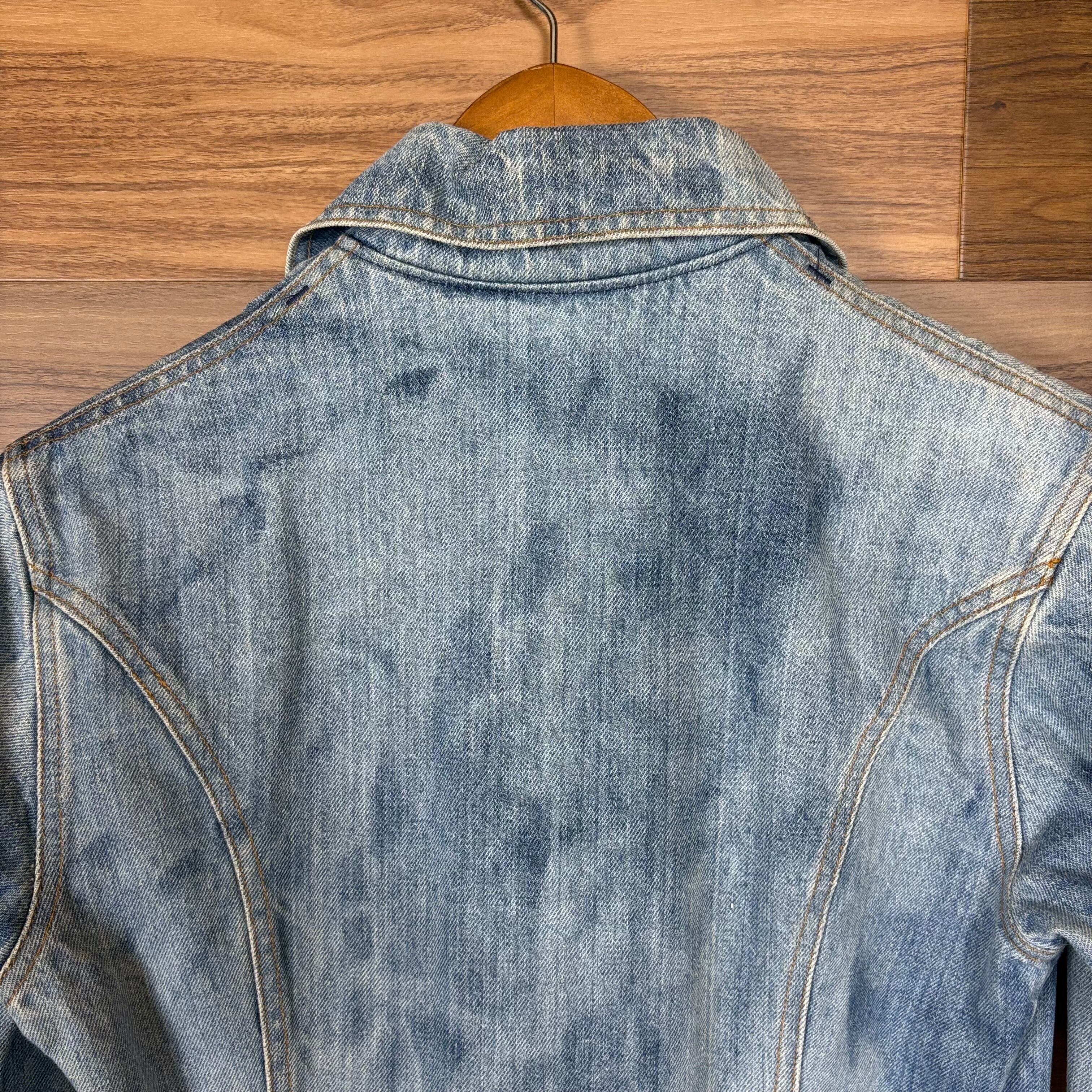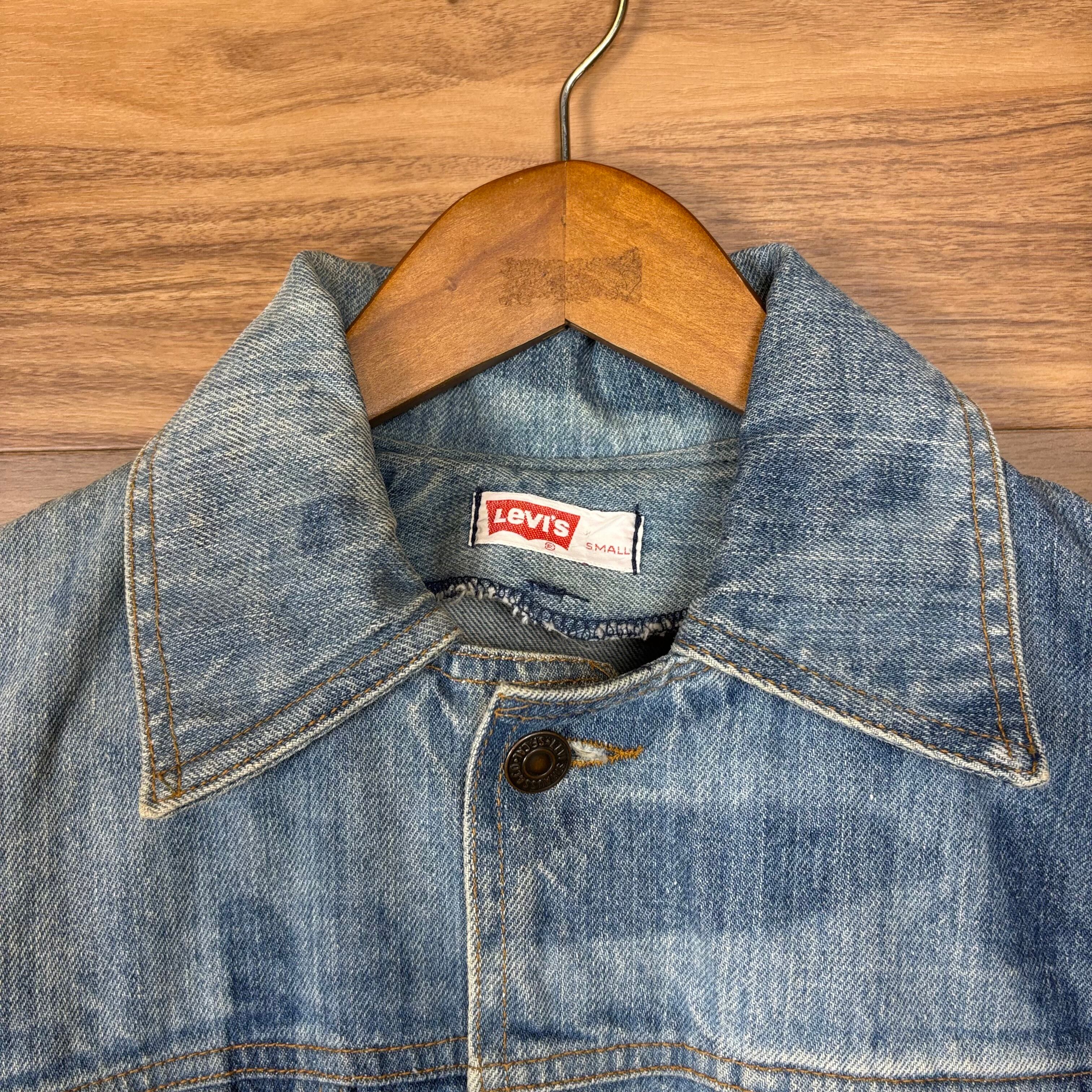 【アイテム】 70s Levi's ブッシュジャケット デニムジャケット サイズ メンズ S 70年代 ビンテージ ヴィンテージ 古着 r25060614 【コンディション】 ・B(全体にブリーチが施されています。) S→未使用または新品の商品(デッドストック) A→使用感のほぼない、大変状態の良い商品(ミントコンディション) B→使用感はあるが目立つダメージのない商品 C→使用感があり、部分的にダメージがある商品 D→全体的に使用感があり、目立つダメージがある商品 E→ジャンク品 【サイズ】 サイズ表記 メンズ S 実寸:肩幅43cm 身幅46cm 着丈78cm 肩から袖丈65cm 脇下から袖丈53cm ※着丈は背面から計測しております。 古着に抵抗のある方は購入をお控え下さい。 画像にてしっかりご確認頂き、気になる点等御座いましたら御購入前にお問い合わせ願います。 ※古着は洗濯、検品などのケアを行っております。(新品・デッドストックは洗濯していません。)