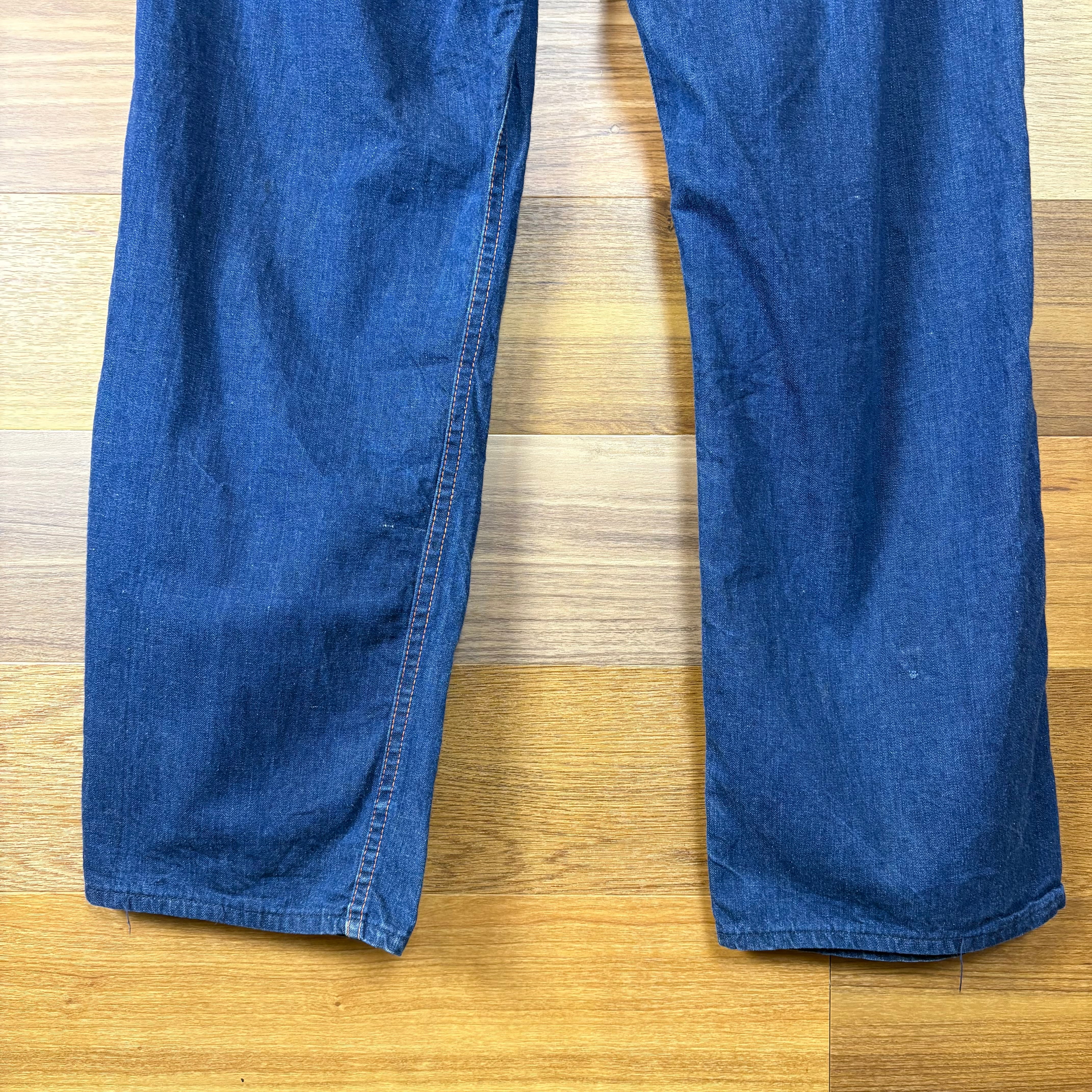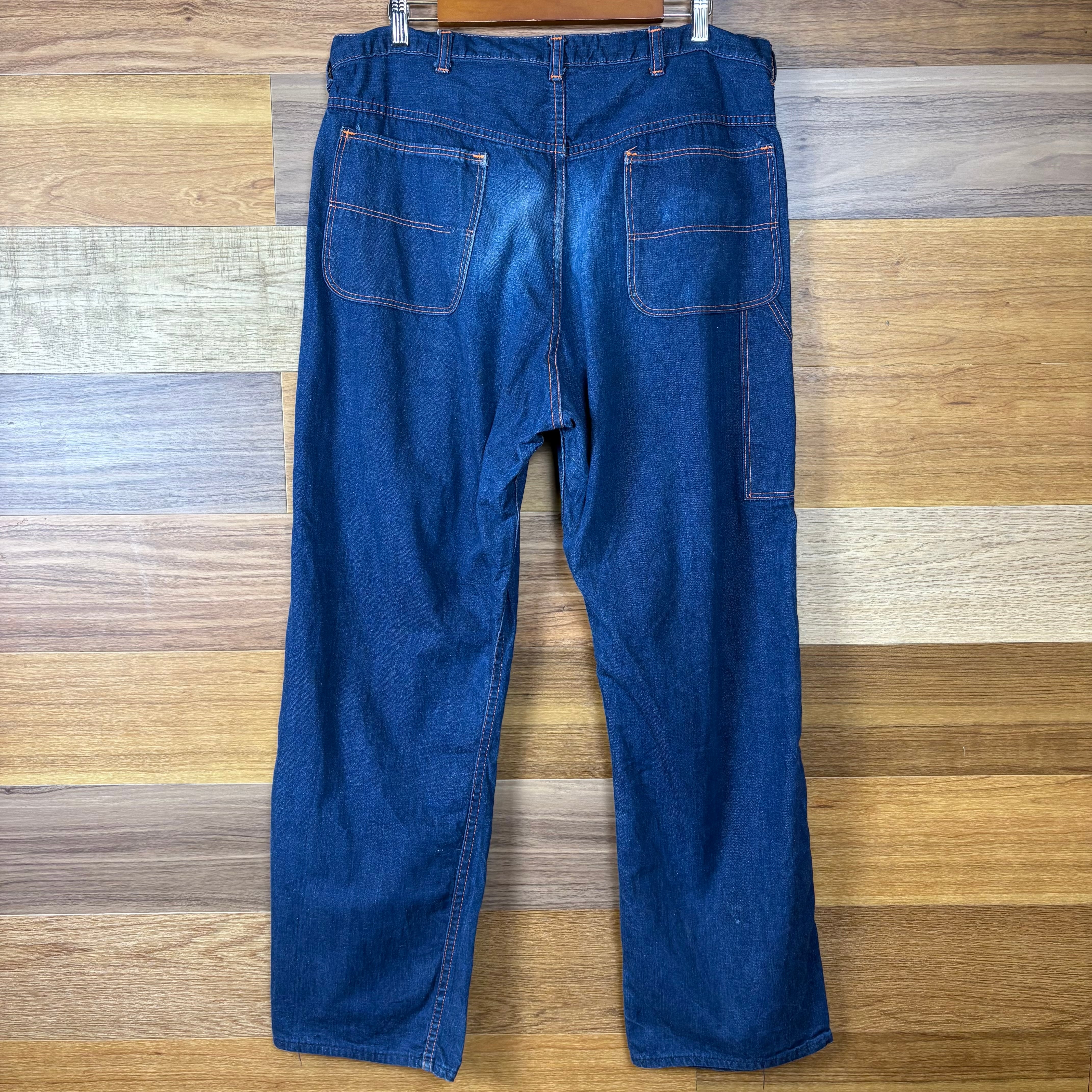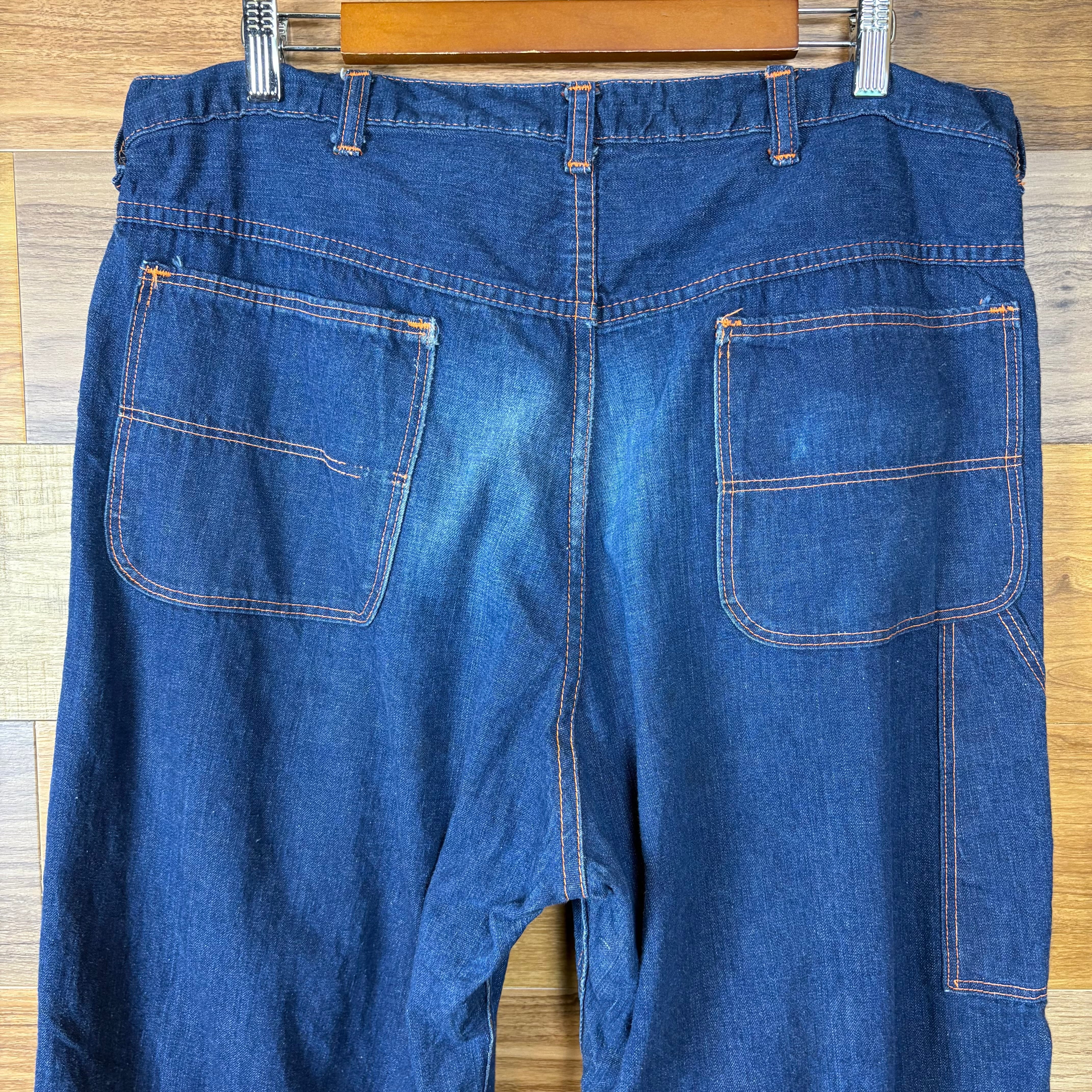 【アイテム】 50s UNKNOWN DENIM PAINTER PANTS デニム ペインターパンツ サイズ メンズ XL位 50年代 ビンテージ ヴィンテージ 古着 r25050913 【コンディション】 ・C(サイドシームにダメージ・バックお尻部分に色落ちが御座います。) S→未使用または新品の商品(デッドストック) A→使用感のほぼない、大変状態の良い商品(ミントコンディション) B→使用感はあるが目立つダメージのない商品 C→使用感があり、部分的にダメージがある商品 D→全体的に使用感があり、目立つダメージがある商品 E→ジャンク品 【サイズ】 サイズ表記 無 (メンズ XL位) 実寸:ウエスト平置き45cm 股上44cm 股下80cm ワタリ幅38cm 裾幅24cm サイドシーム全長総丈113cm *股上は背面で計測しております。 古着に抵抗のある方は購入をお控え下さい。 画像にてしっかりご確認頂き、気になる点等御座いましたら御購入前にお問い合わせ願います。 ※古着は洗濯、検品などのケアを行っております。(新品・デッドストックは洗濯していません。)