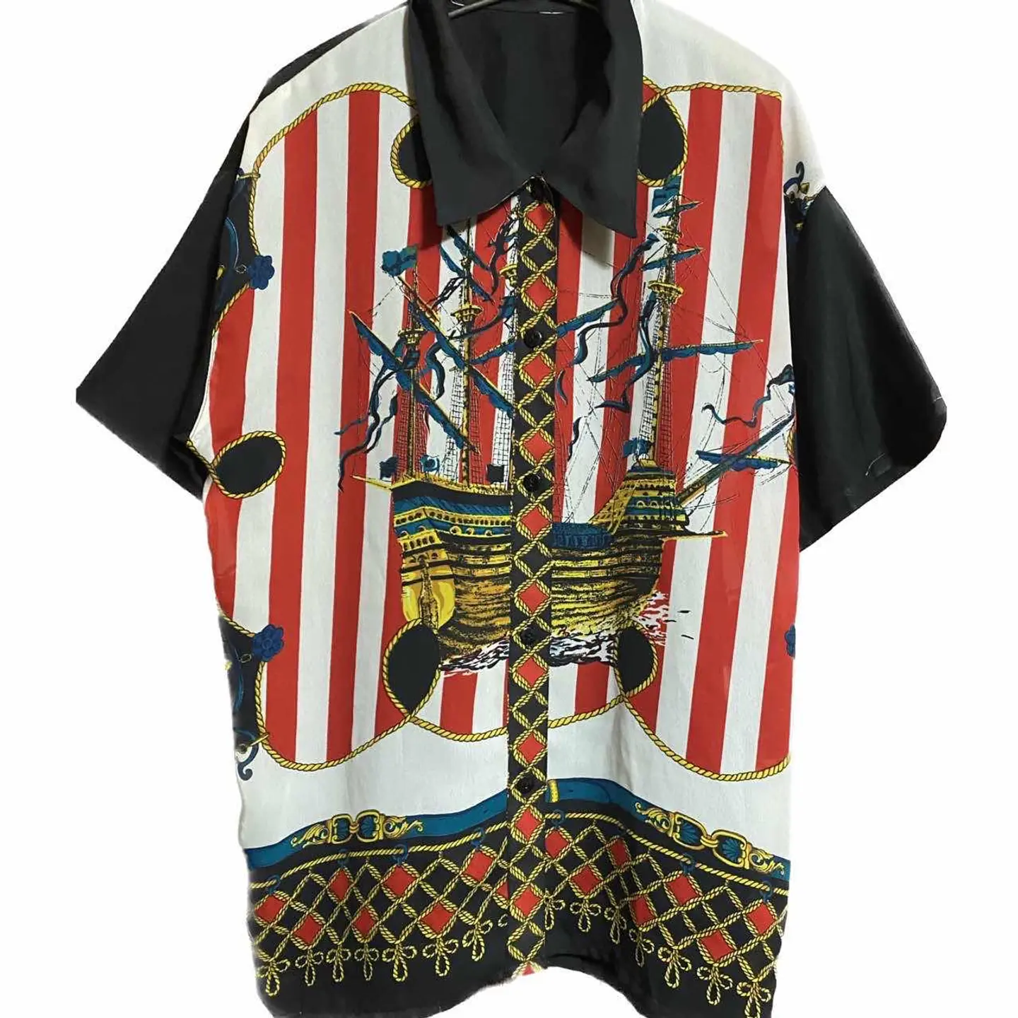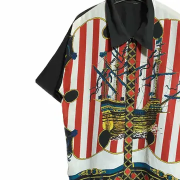60s 美品 奇跡の一着 ハの字襟、1950voyage art シャツ 1950voyage 航海の意味、この数字が、何か?タイタニックコーデって、わかります? ※トラッドの原点、 それを。アートで、船を、フロントにする、これ、確実、当店限定 one of a kind です、 1回限り、の意味、職人かかわってます、 60s vintage 美品、二度と手に入らない、ハの字襟、セットインマテ説明みたら。かなり、素晴らしいと理解します ※注意カッターじゃないの?70じゃんって方、角度違います カッターは、逆Vです、 また。柄シャツは、気になったら、ゲットが古着は、鉄則なのと、当店が、柄を、推奨するのは、年中いけるから、です、 は?って方 たとえば、冬こんな、カッコいい柄を。ジャケ下から、みせたら?確実カッコいいです、無地だったら?まぁ、そこらへん、いるよね、になります、 ラスト、コーデ1950に、よせました、インナーワッフル※当店リメイクで、トラッドミックス、 いいねーと思いましたらゲット下さい、ミラクルな、一着なんで、 ▷color◁ 写真通り、最強な。一着!! ※ブラウザで異なる場合ありますがかなり実物には、近づけてます、 ▷size◁ 平置き片面採寸【㎝表記】 表記size Lくらいですが、XL好む方いけます、前あけすりゃいいし、着画インナー、当店リメイク、XLワッフルです、 着丈/70 身幅/58 肩幅/53DS 袖丈 /36 DSは袖はハンガー採寸 ※多少の誤差は理解下さい 170/Mジャスト体型の私が着て、✔️参考に ジャスト オーバーサイズ✔️ ですね、 ビックサイズ 【素材】 フロント、ちょっぴり透け感あり、化繊、それを職人バチバチアートで、透けなしに、みせて、 一枚でも。決まるのに、涼しさこうりょ、さらに、セットインスリーブ、バックを無地にしてる、この部分は、A5Sシルク 最高級、な一着!! 【状態】 美品 検品、洗濯、検品で、3回チェックして発送しますので、ご安心して、お買い求め下さい!!