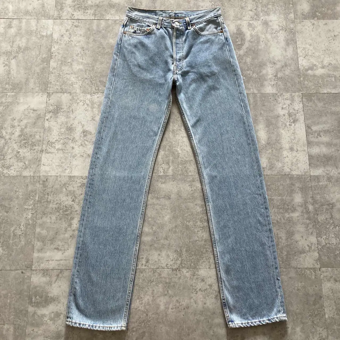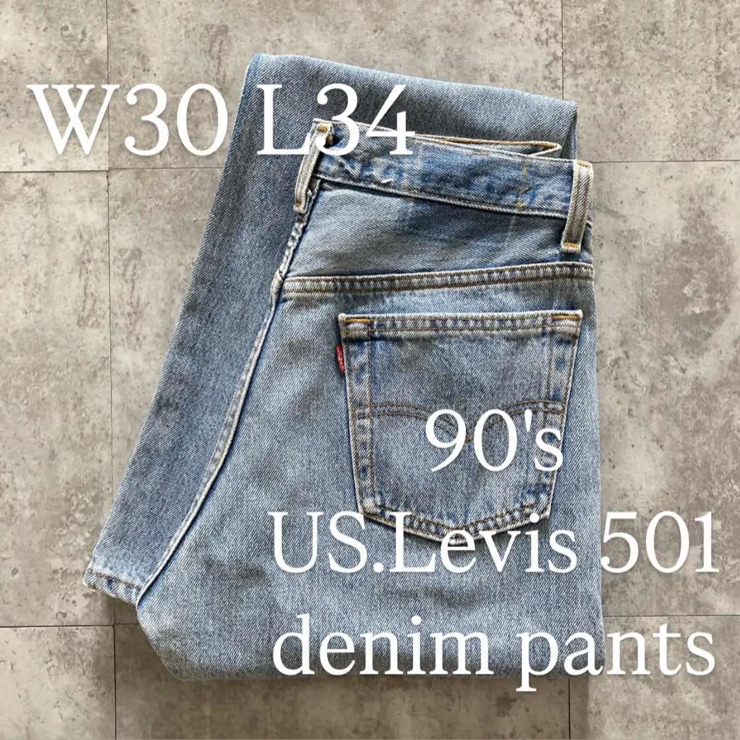 □Size□ 表記→W30 L34 実寸↓ 股上 : 28 股下 : 84 ワタリ幅 : 28.5 裾幅 : 18 ウエスト : 36×2 (cm) □Colour□ ・デニム紺 □Material□ ・100%コットン □Condition□ ・パッチ欠損 ・前ポケットに若干の擦れた傷あり ・太ももに薄っすら汚れあり □Caution□ ・当店で取り扱っているアイテムは全て「古着」となっております。そのため、多少の擦れやほつれ、色あせや汚れ等が見られる場合がございます。新品同様の完璧なお品物をお求めの方は当店をご利用されないよう宜しくお願いします。 ・購入された商品につきましては、購入日から起算して「72時間以内の発送」とさせて頂きます。お急ぎの場合はオンラインストアの問い合わせフォームよりご連絡ください。可能な限り対応させて頂きます。 ・購入されら商品は基本的に「お客様都合での返品&キャンセル不可」となっております。決済が確定した時点で注文の取り消し等は不可のとなりますので、よくお考えの上購入検討の方をお願い致します。 【A-5555】