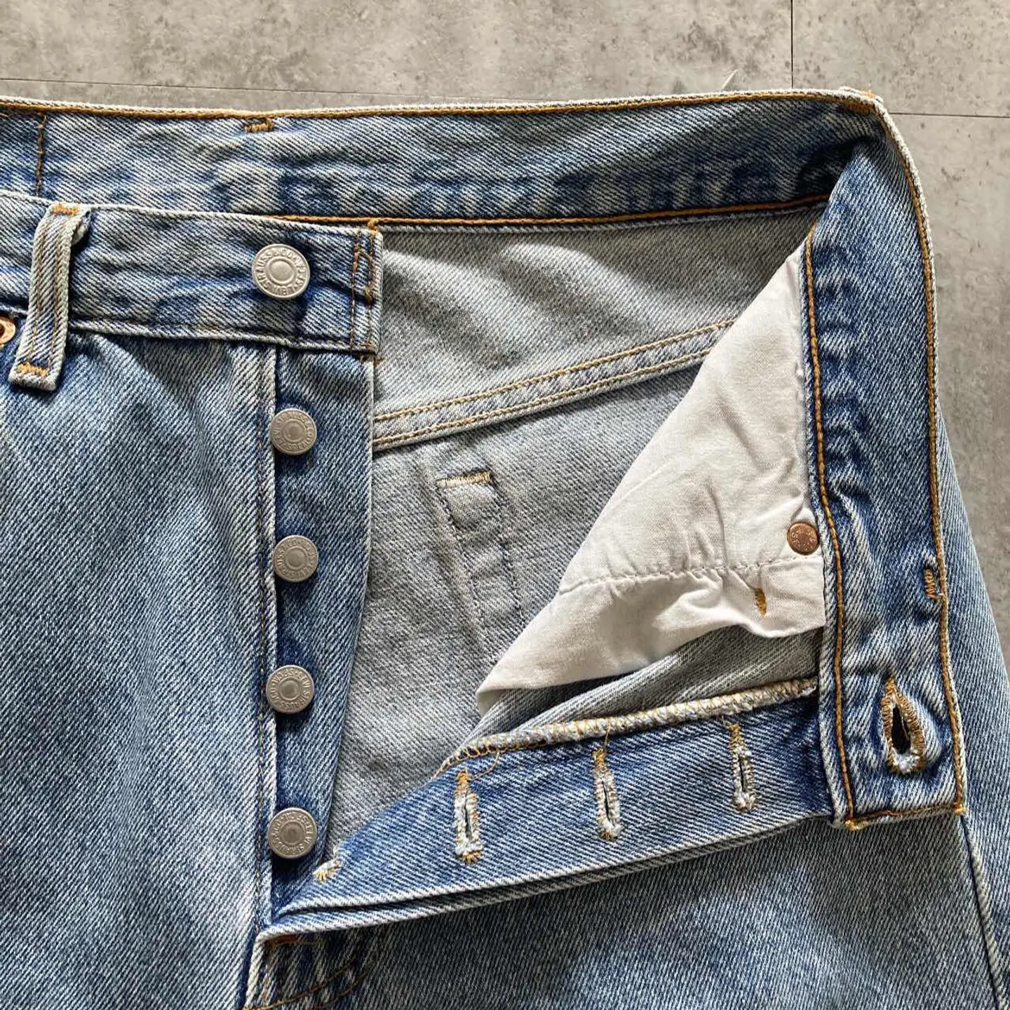 【W30 L34】Levis 501 PREMIUM レザーパッチ ボタンフライ 濃紺 デニムパンツ
