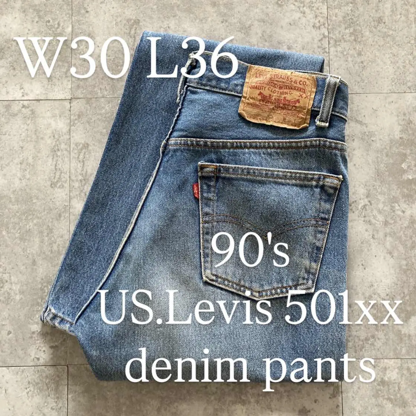 □Size□ 表記→W30 L36 実寸↓ 股上 : 27 股下 : 81.5 ワタリ幅 : 28 裾幅 : 18 ウエスト : 37×2 (cm) □Colour□ ・デニム紺 □Material□ ・100%コットン □Condition□ ・前ポケット.裾に若干の擦れた傷あり ・太もも.膝に薄っすら汚れあり □Caution□ ・当店で取り扱っているアイテムは全て「古着」となっております。そのため、多少の擦れやほつれ、色あせや汚れ等が見られる場合がございます。新品同様の完璧なお品物をお求めの方は当店をご利用されないよう宜しくお願いします。 ・購入された商品につきましては、購入日から起算して「72時間以内の発送」とさせて頂きます。お急ぎの場合はオンラインストアの問い合わせフォームよりご連絡ください。可能な限り対応させて頂きます。 ・購入されら商品は基本的に「お客様都合での返品&キャンセル不可」となっております。決済が確定した時点で注文の取り消し等は不可のとなりますので、よくお考えの上購入検討の方をお願い致します。 【A-5557】