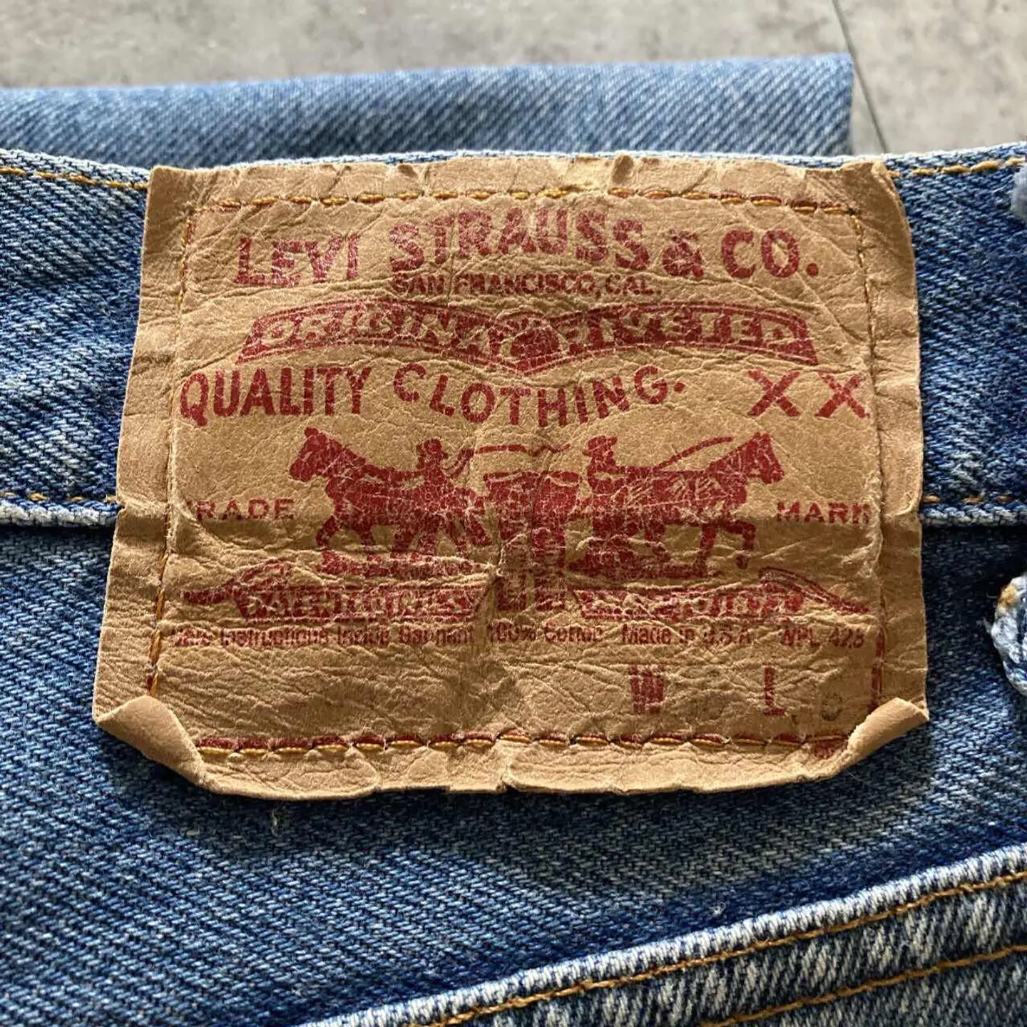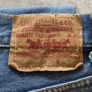 【W30 L34】Levis 501 PREMIUM レザーパッチ ボタンフライ 濃紺 デニムパンツ