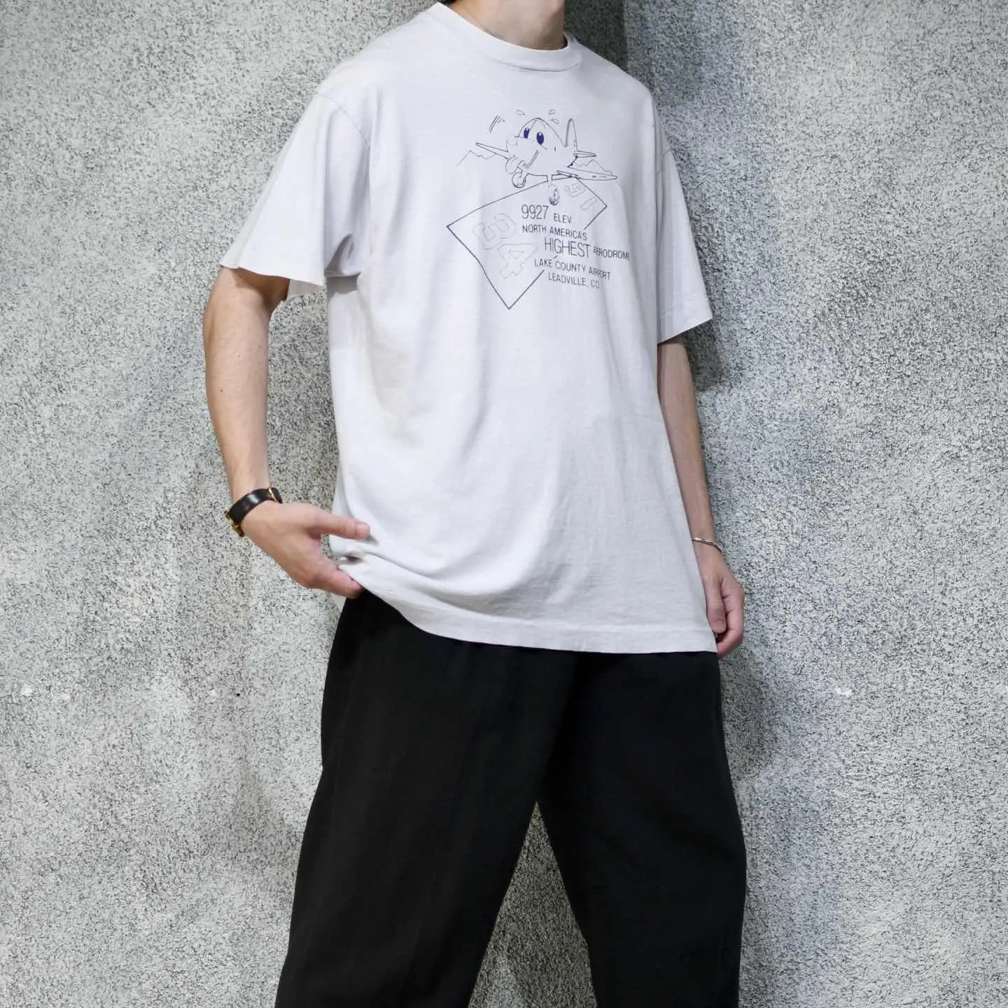 着丈73cm 肩幅58cm 身幅62cm 袖丈22cm(シングルステッチ) fabric/質感よりcotton 着用画像 177cm/64kg アメリカ コロラド州にある、レイクカウンティ 空港より。 舌を出した飛行機のプリント、個人的スペシャルな 可愛いTシャツ。 そしてアイスグレーのようなボディのカラーは、 白Tシャツとは違い、なんだか新鮮で そんなところにも惹かれた1着でした。 プリントのおかげで、コーデに少しだけ 抜けが出る感じ、最高です。 ※撮影状況により、実物と多少色が異なる場合が ございます。 ※古着を取り扱っているため、気づかない汚れや ほつれ等がある場合がございます。 予めご了承ください。 ※サイズは着用感で選んでおり、表記サイズではございません。 古着 オーバーサイズ old vintage ヴィンテージ used 80's 90's アメリカ古着 ユーロ古着 メンズ レディース POLO RALPH LAUREN Eddie Bauer OLD GAP Eddie Bauer LANDS' END ランズエンド LLBean エルエルビーン オールドギャップ エディーバウアー ラルフローレン ブルックスブラザーズ Brooks Brothers 灰色 グレー プリントTシャツ Tシャツ スーベニアTシャツ プロモーション 半袖Tシャツ Tシャツ などがお好きな方 #vintage #オーバーサイズ #old #used #90s #80s #古着 #ヴィンテージ #アメリカ古着 #ユーロ古着 #古着男子 #古着女子 #LLBean #エルエルビーン #EddieBauer #エディーバウアー #oldgap #オールドギャップ #LANDSEND #ランズエンド #NAUTICA #ノーティカ #ラルフローレン #POLORALPHLAUREN #ブルックスブラザーズ #BrooksBrothers #プリントTシャツ #半袖Tシャツ #Tシャツ #シングルステッチ