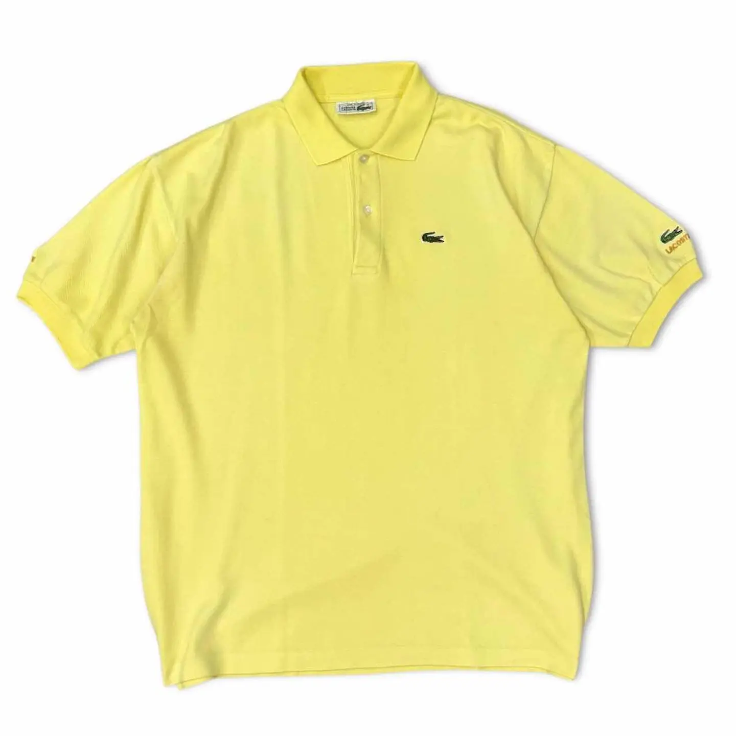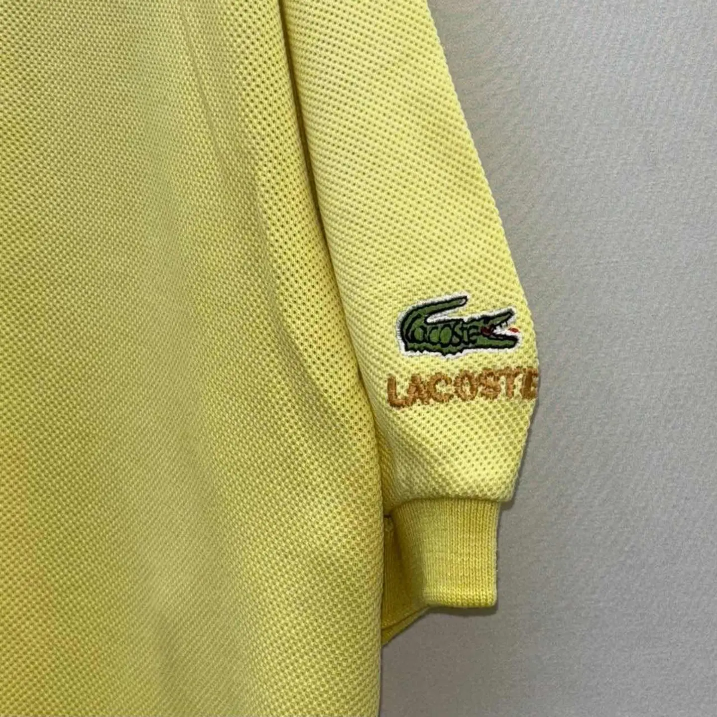 【サイズ表記】 XL程度 【サイズ(cm)】 肩幅 55 袖丈 24 裄丈 53 袖口(平置) 13 腕周(平置) 26 着丈 75 身幅(脇下) 62 【商品詳細】 生産国 : France ブランド: Lacoste カラー : イエロー 素材 : 【コンディション】 B 【S】新品、展示品、デットストックなど 【A】使用感少なく、状態の良いUSED 【B】使用感あるが、目立つダメージや大きな汚れは無い。 【C】使用感と部分的にダメージや汚れ有り。 【D】使用感があり、大きなダメージや汚れ有り。 ※古着故、多少の着用感や細かい汚れがございます。古着に理解のない方のご購入はお控えいただけると幸いです。 また、撮影状況により色味に若干の差異が生じる事がございます。 【ジャンル】 ユーロヴィンテージ/EURO VINTAGE 【その他】 こちらの商品は古着商品となります。 全て1点のみの在庫となります、ご注意ください。