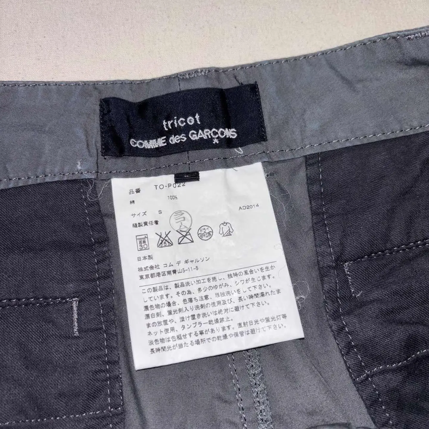 【サイズ表記】 S 【サイズ(cm)】 ウエスト(平置) 39 総丈 88 股上 29 股下 62 裾幅 22 ワタリ 28 【商品詳細】 生産国 : 日本 ブランド: Comme des Garçons カラー : グレー 素材 : 100%cotton 【コンディション】 B 【S】新品、展示品、デットストックなど 【A】使用感少なく、状態の良いUSED 【B】使用感あるが、目立つダメージや大きな汚れは無い。 【C】使用感と部分的にダメージや汚れ有り。 【D】使用感があり、大きなダメージや汚れ有り。 ※古着故、多少の着用感や細かい汚れがございます。古着に理解のない方のご購入はお控えいただけると幸いです。 また、撮影状況により色味に若干の差異が生じる事がございます。 【その他】 こちらの商品は古着商品となります。 全て1点のみの在庫となります、ご注意ください。