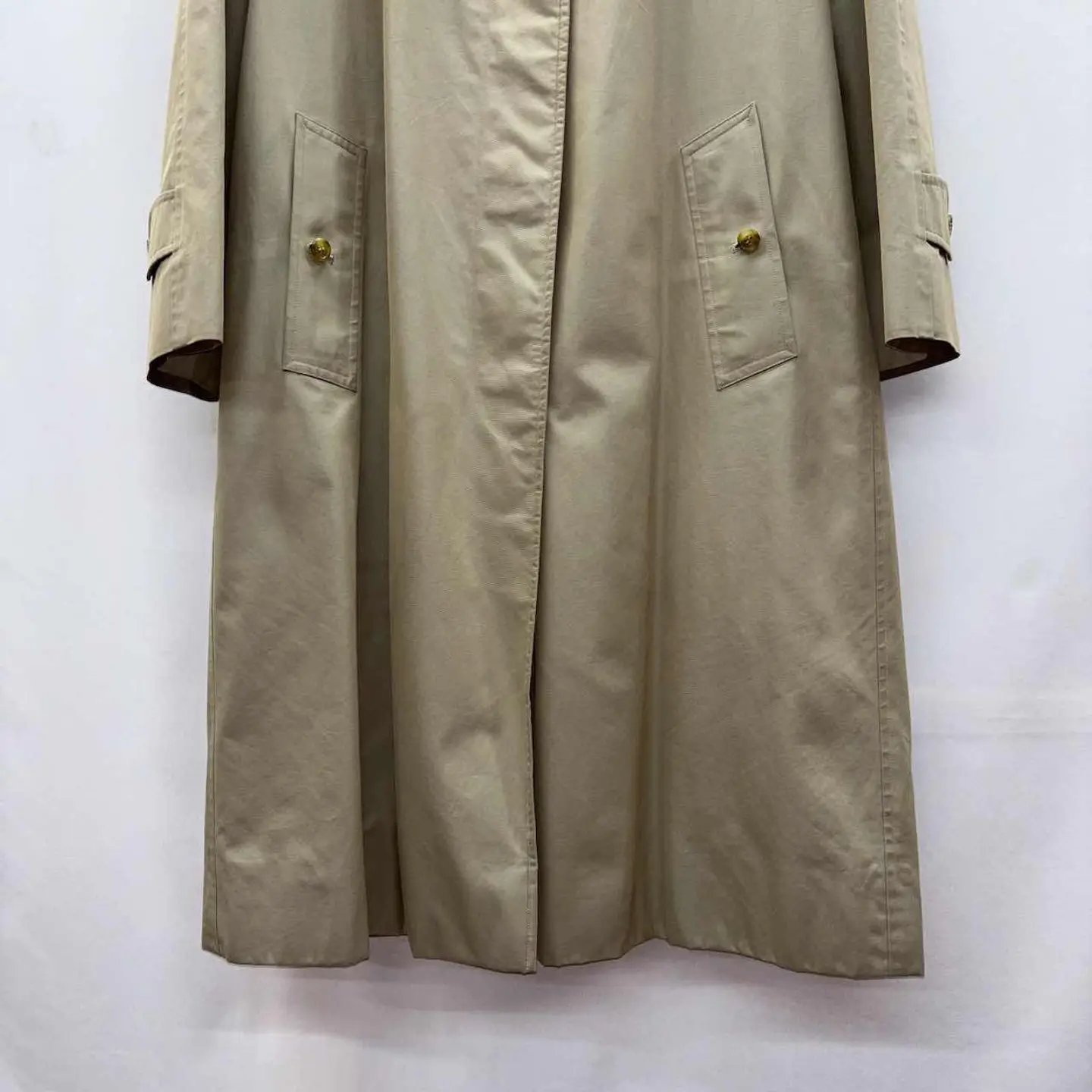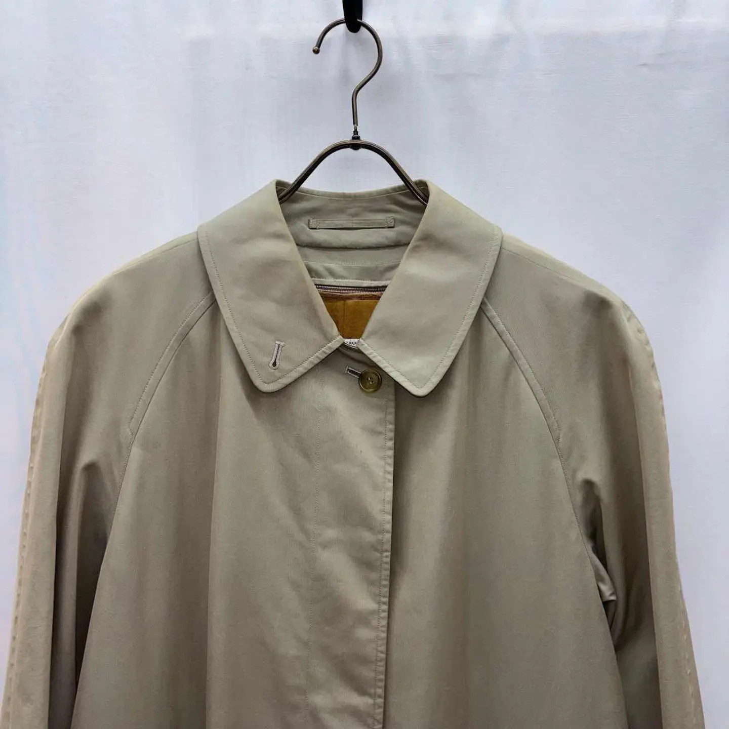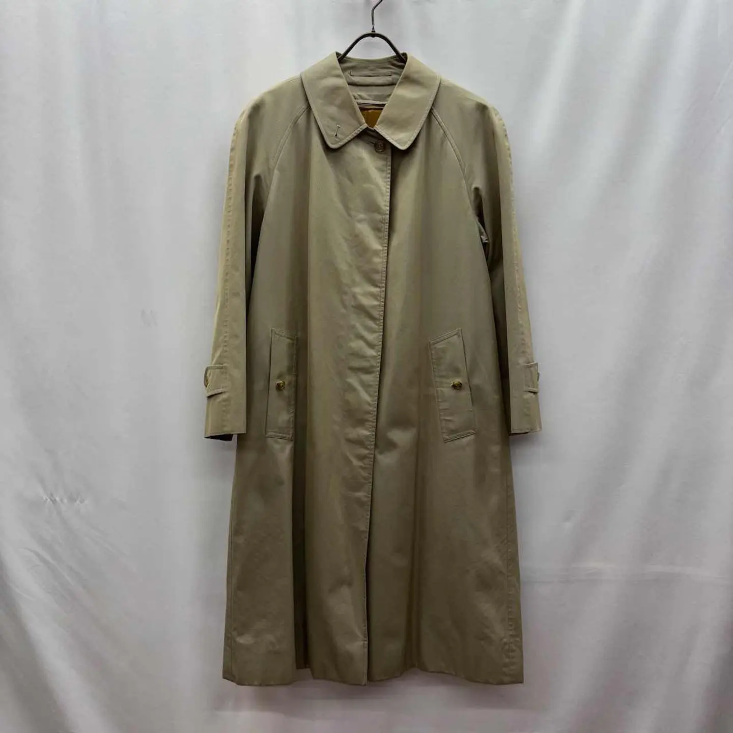 【サイズ表記】 7AR(レディース) 【サイズ(cm)】 肩幅ラグランスリーブ(大体46cm) 袖丈52.5 裄丈78 袖口(平置)16.5 腕周(平置)22 着丈109 身幅(脇下)52 【商品詳細】 生産国 :japan ブランド:burberrys 三陽商会 カラー :ベージュ玉蟲 素材 :100%cotton 【コンディション】 B-C(若干の汚れ有) 【S】新品、展示品、デットストックなど 【A】使用感少なく、状態の良いUSED 【B】使用感あるが、目立つダメージや大きな汚れは無い。 【C】使用感と部分的にダメージや汚れ有り。 【D】使用感があり、大きなダメージや汚れ有り。 ※古着故、多少の着用感や細かい汚れがございます。古着に理解のない方のご購入はお控えいただけると幸いです。 また、撮影状況により色味に若干の差異が生じる事がございます。 【ジャンル】 ユーロヴィンテージ/EURO VINTAGE 【その他】 こちらの商品は古着商品となります。 全て1点のみの在庫となります、ご注意ください。