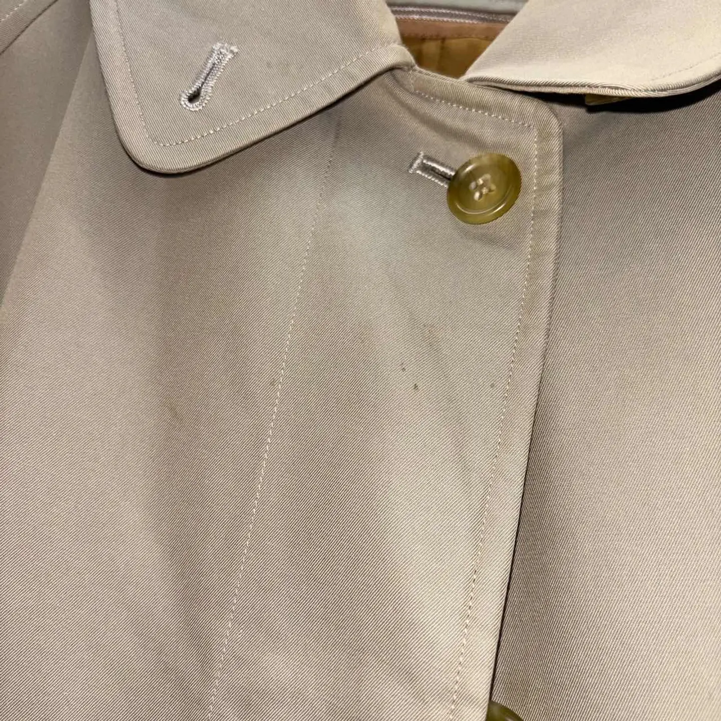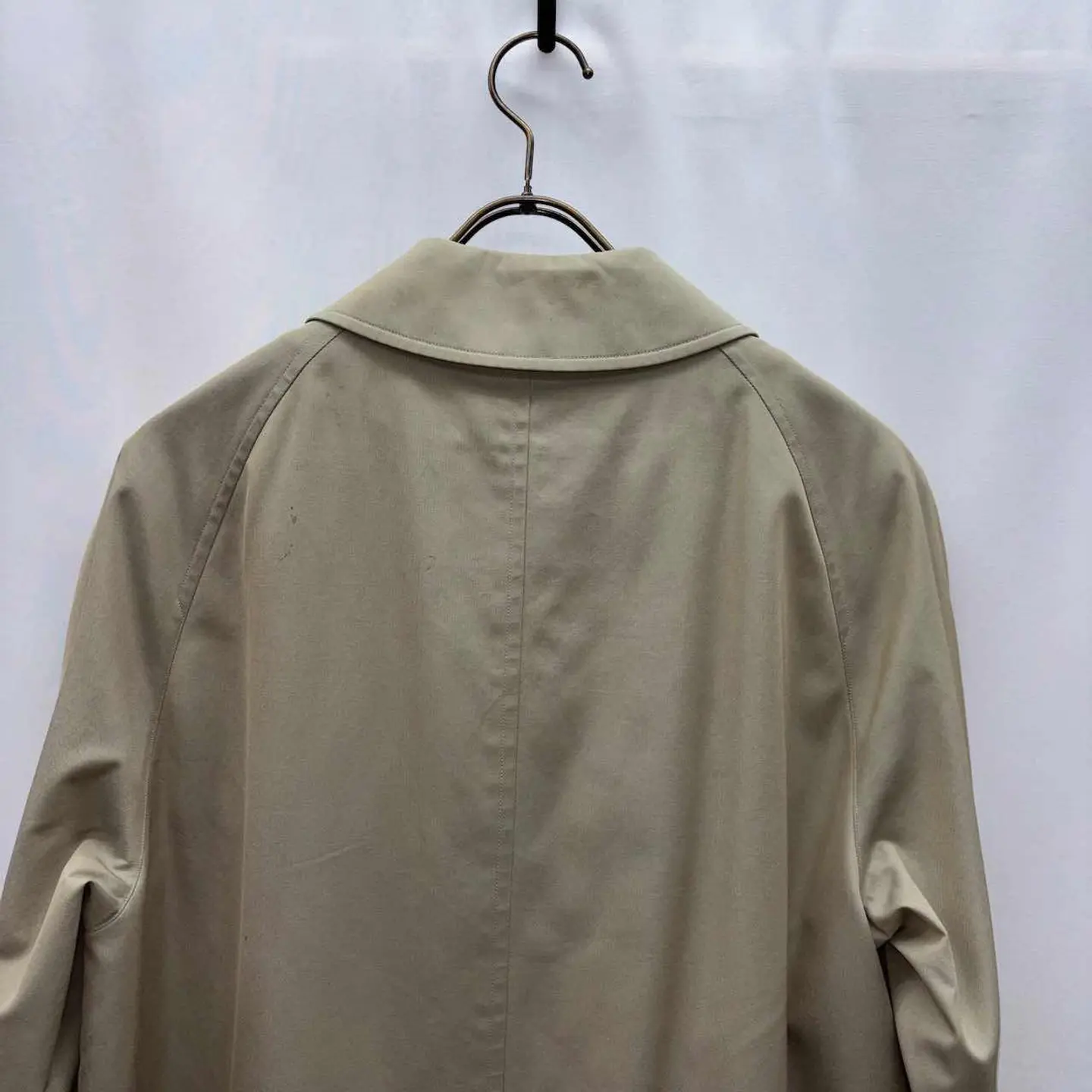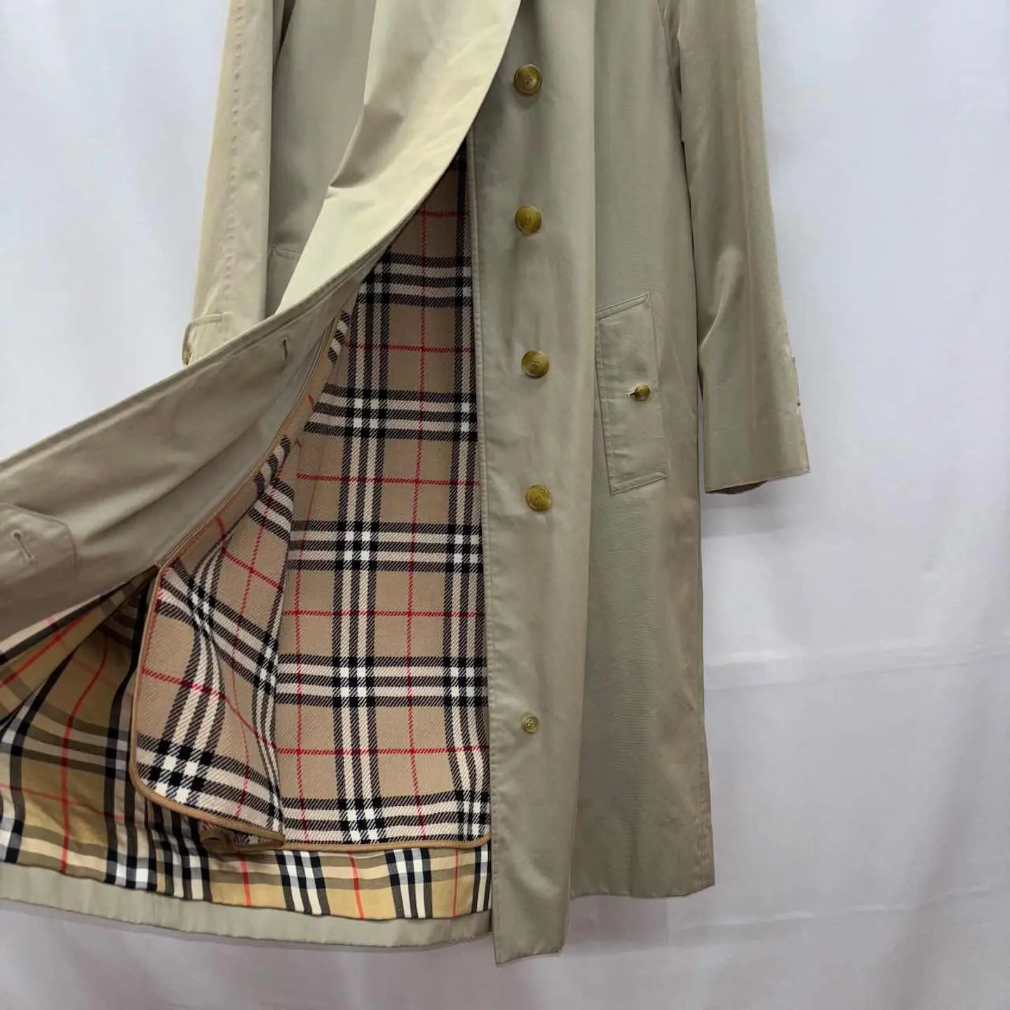 【サイズ表記】 7AR(レディース) 【サイズ(cm)】 肩幅ラグランスリーブ(大体46cm) 袖丈52.5 裄丈78 袖口(平置)16.5 腕周(平置)22 着丈109 身幅(脇下)52 【商品詳細】 生産国 :japan ブランド:burberrys 三陽商会 カラー :ベージュ玉蟲 素材 :100%cotton 【コンディション】 B-C(若干の汚れ有) 【S】新品、展示品、デットストックなど 【A】使用感少なく、状態の良いUSED 【B】使用感あるが、目立つダメージや大きな汚れは無い。 【C】使用感と部分的にダメージや汚れ有り。 【D】使用感があり、大きなダメージや汚れ有り。 ※古着故、多少の着用感や細かい汚れがございます。古着に理解のない方のご購入はお控えいただけると幸いです。 また、撮影状況により色味に若干の差異が生じる事がございます。 【ジャンル】 ユーロヴィンテージ/EURO VINTAGE 【その他】 こちらの商品は古着商品となります。 全て1点のみの在庫となります、ご注意ください。