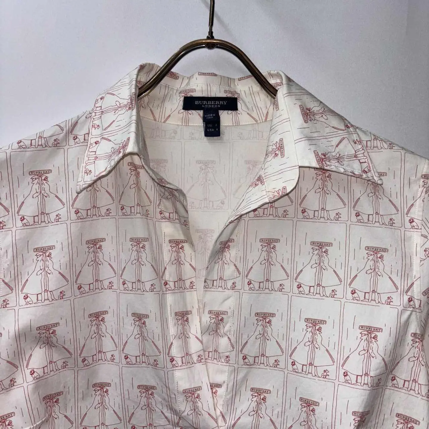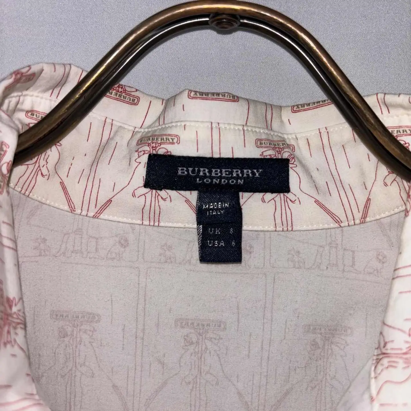 【サイズ表記】 UK8(Mサイズ) 【サイズ(cm)】 肩幅40 袖丈62 裄丈83 袖口(平置)11 腕周(平置)15 着丈57 身幅44 【商品詳細】 生産国 :Italy ブランド:burberry カラー :白×赤 素材 :97%cotton 3%elastane(ポリウレタン系) 【コンディション】 B(袖口に若干の黄ばみあり) 【S】新品、展示品、デッドストックなど。 【A】若干の使用感はあるが、状態の良いUESD。 【B】使用感はあるが、目立つダメージや大きな汚れはない。 【C】使用感と部分的に少しダメージや汚れ有。 【D】使用感と部分的に大きなダメージや汚れ有。 ※古着故の多少の着用感うや細かい汚れがございます。古着に理解のない方のご購入はお控えください。また、撮影状況により、色味に若干の差異が生ずることがございます。 【ジャンル】 EURO VINTAGE/ユーロヴィンテージ 【その他】 こちらの商品は古着商品となります。全て1点のみの在庫のご用意となりますのでご注意ください。