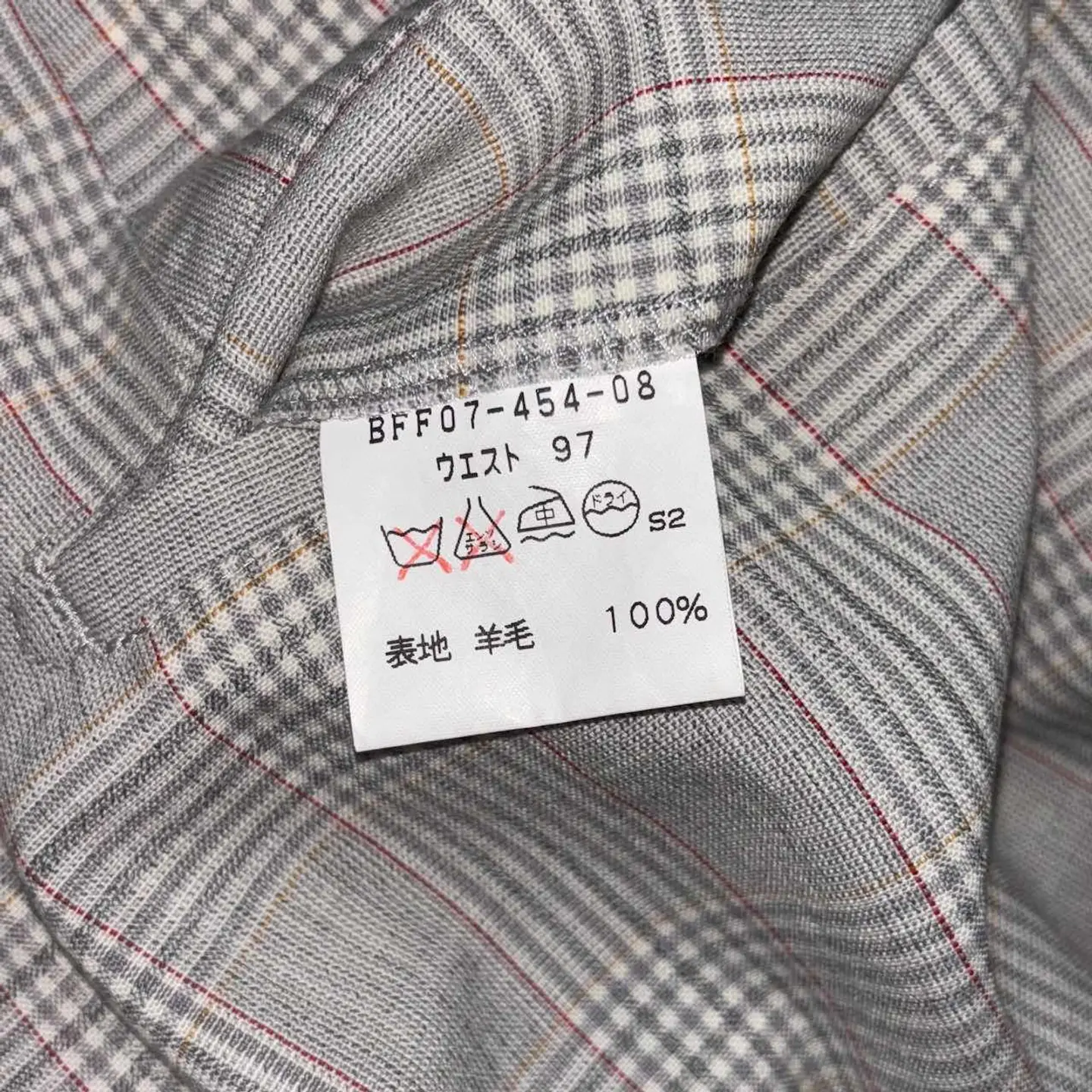 【サイズ表記】 ウエスト97 【サイズ(cm)】 ウエスト(平置)47 総丈102.5 股上31 股下75 裾幅24 ワタリ38 【商品詳細】 生産国 :日本製 ブランド:burberrys カラー :明るいグレー系 素材 :100% 羊毛 【コンディション】 A 【S】新品、展示品、デットストックなど 【A】使用感少なく、状態の良いUSED 【B】使用感あるが、目立つダメージや大きな汚れは無い。 【C】使用感と部分的にダメージや汚れ有り。 【D】使用感があり、大きなダメージや汚れ有り。 ※古着故、多少の着用感や細かい汚れがございます。古着に理解のない方のご購入はお控えいただけると幸いです。 また、撮影状況により色味に若干の差異が生じる事がございます。 【ジャンル】 ユーロヴィンテージ/EURO VINTAGE 【その他】 こちらの商品は古着商品となります。 全て1点のみの在庫となります、ご注意ください。