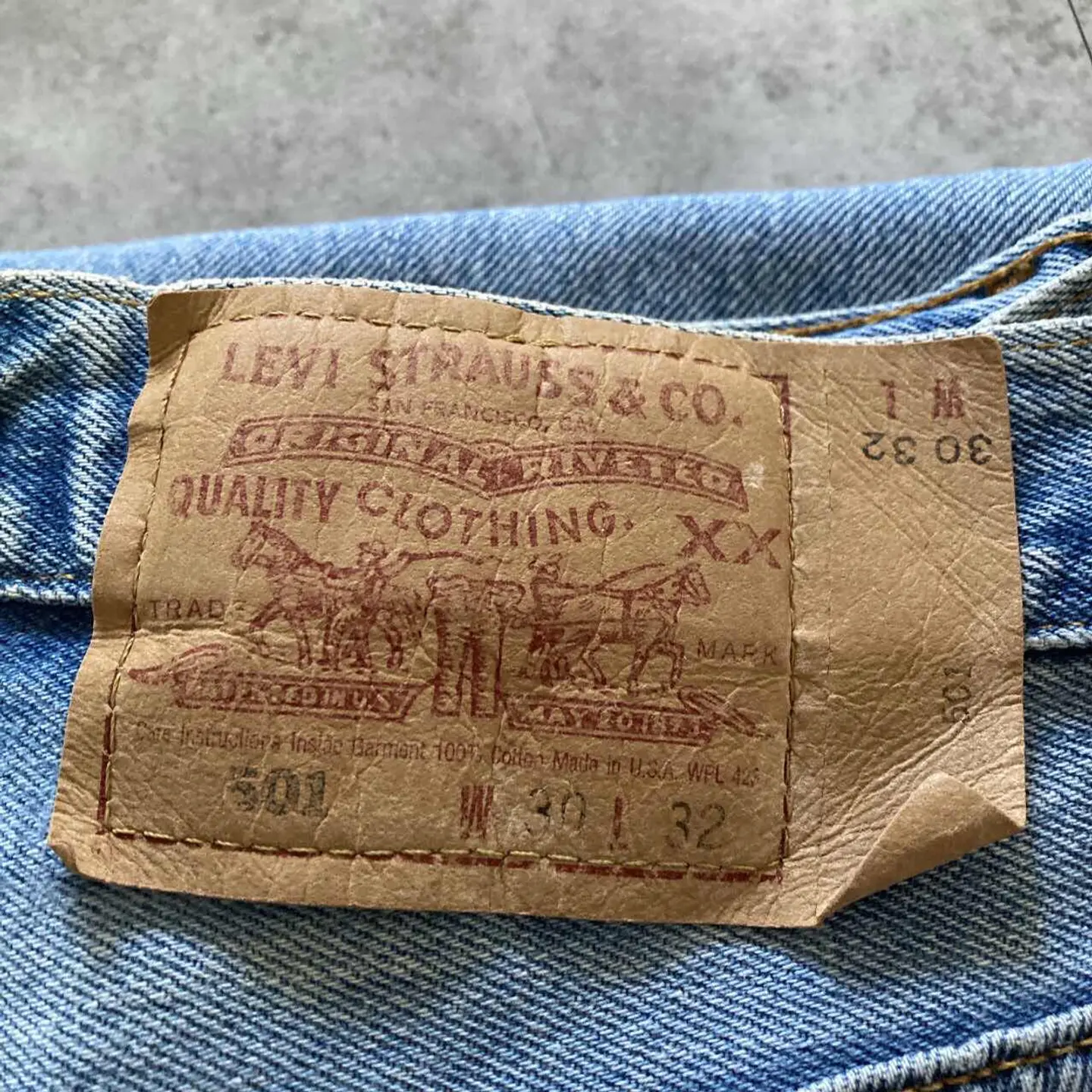 【W30 L34】Levis 501 PREMIUM レザーパッチ ボタンフライ 濃紺 デニムパンツ