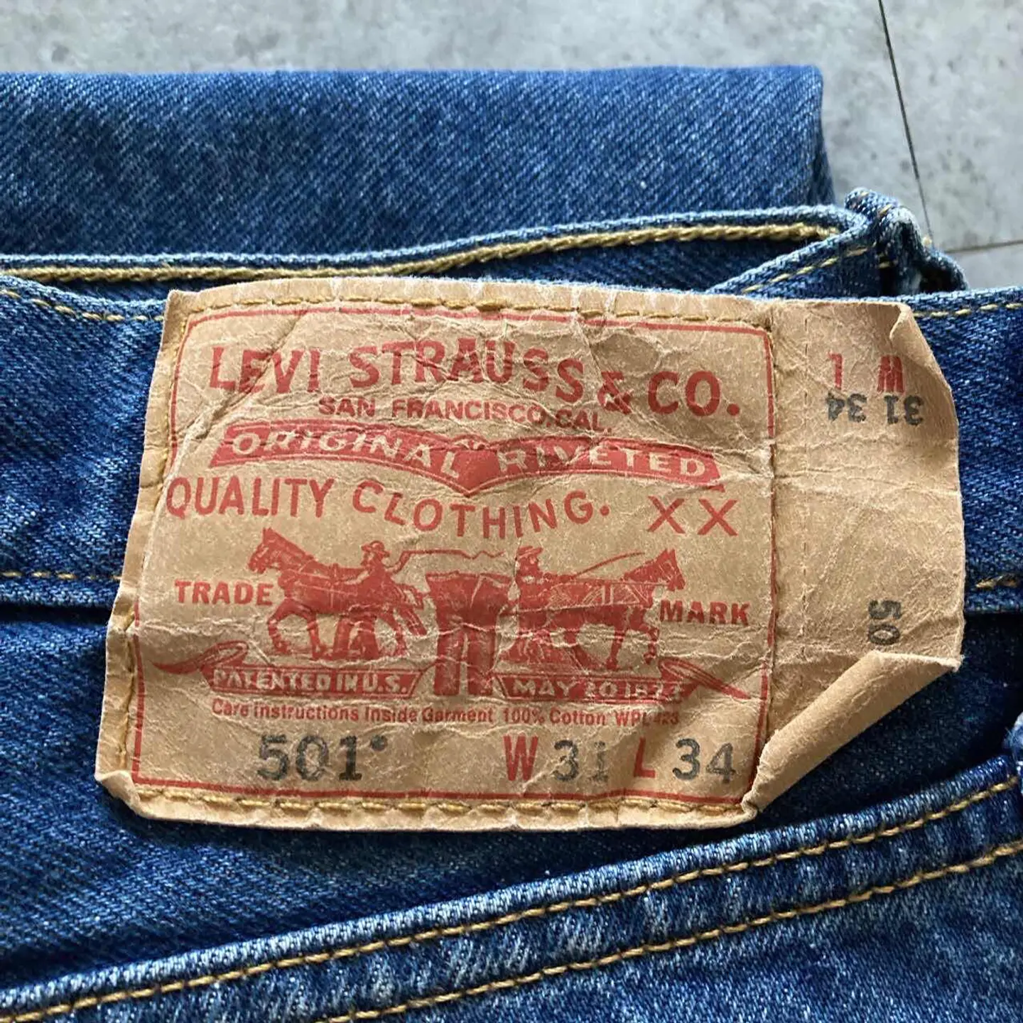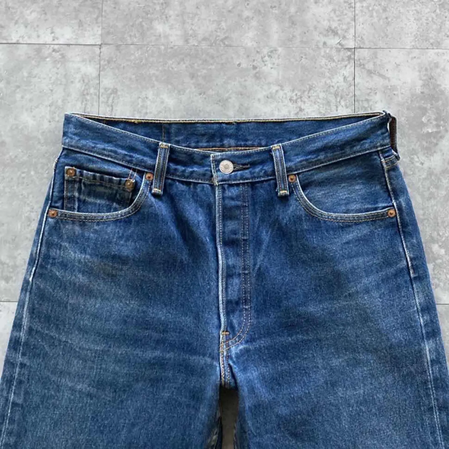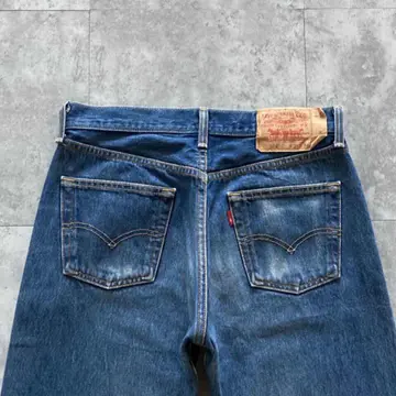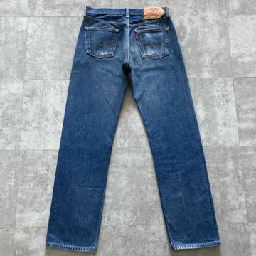 【W30 L34】Levis 501 PREMIUM レザーパッチ ボタンフライ 濃紺 デニムパンツ