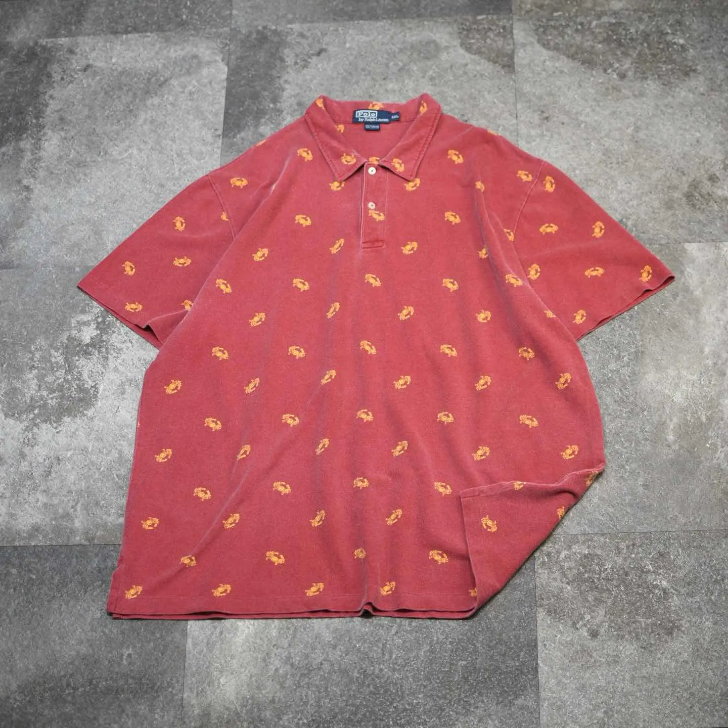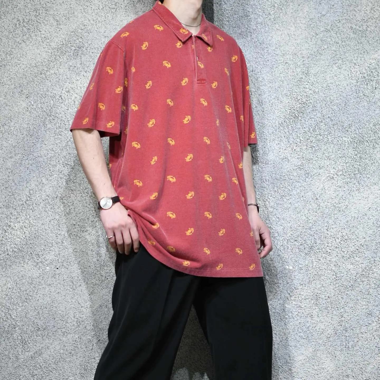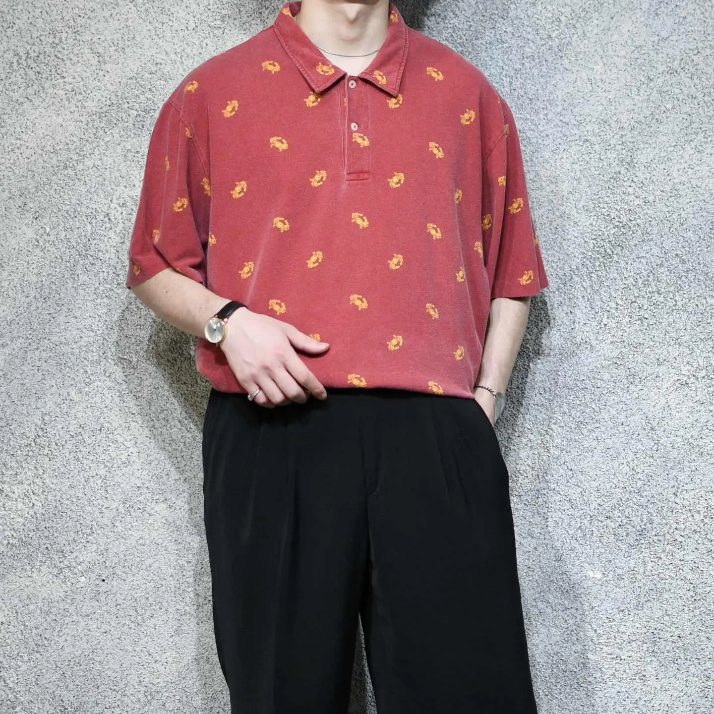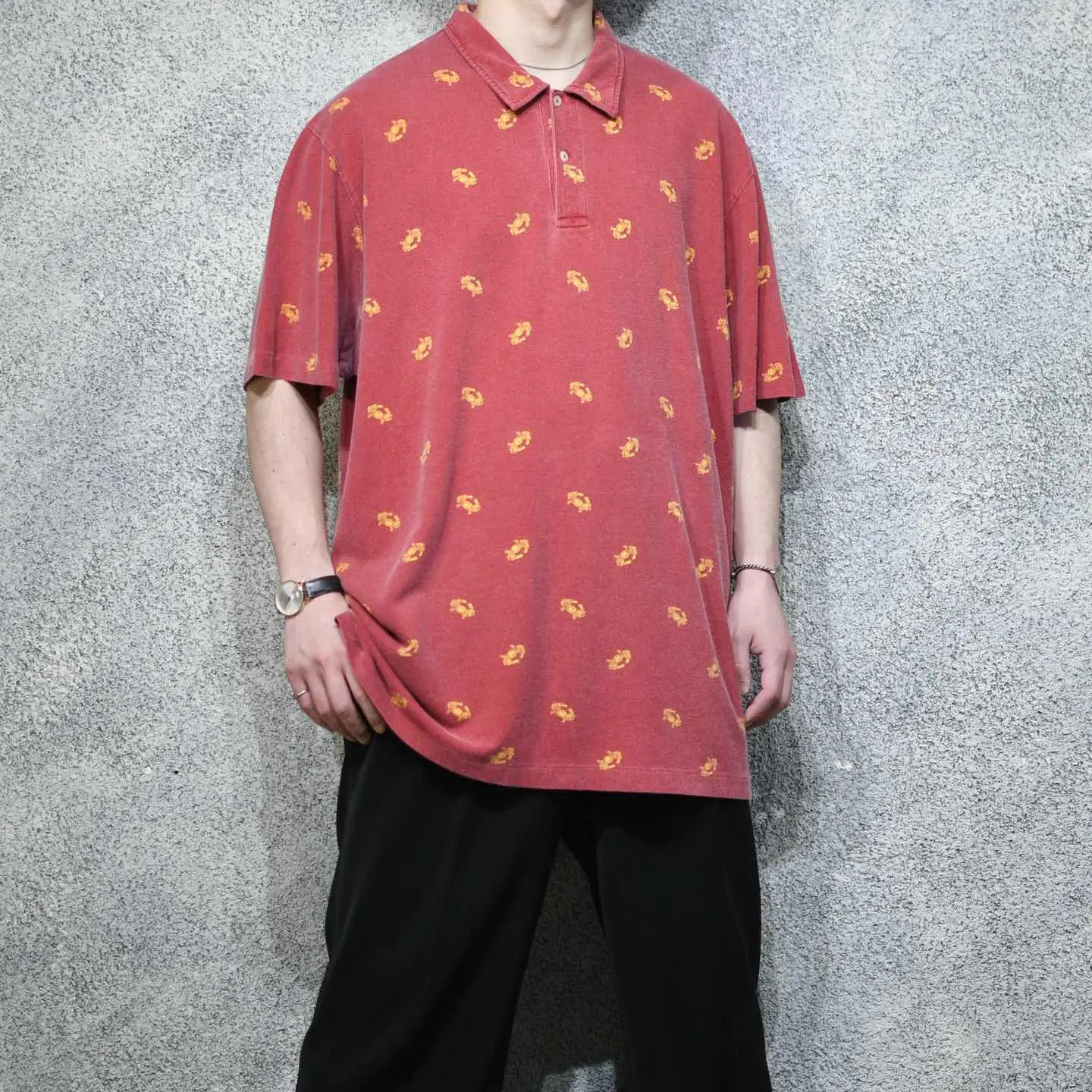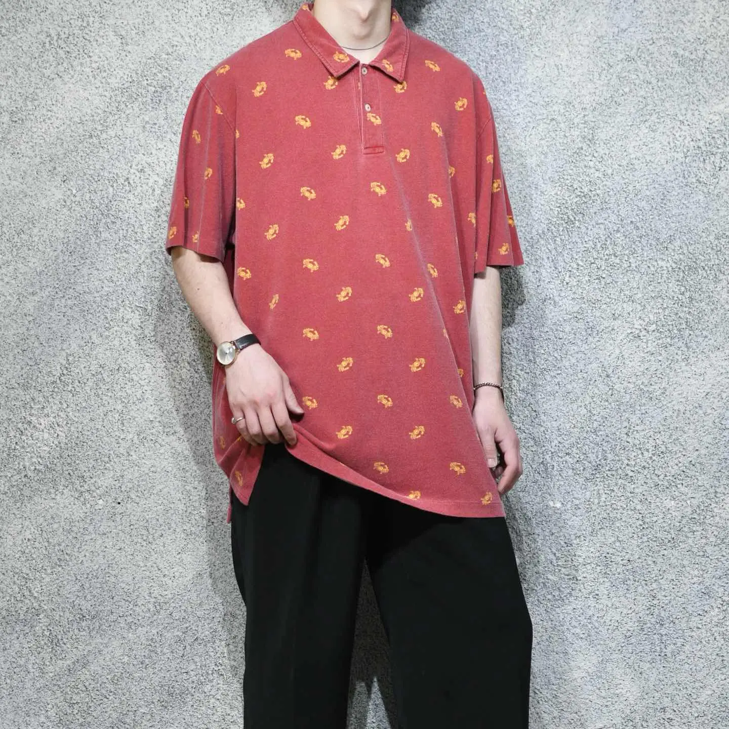 着丈81cm 肩幅58cm 身幅72cm 袖丈29cm fabric/cotton 着用画像 177cm/64kg 本当にこちらのブランドは、幅広く色々な アイテムを手掛けているようで。 当ブランドに馴染みが出てきた頃は、シンプルな アイテムを多く手掛けている印象がありましたが、 実際はそんなこともなく... ただやはり、ちょっと遊び心を足したような こんなアイテムには強く惹かれました。 カニ柄って、、、 大人びた雰囲気のある、ポロシャツという カテゴリーでこの柄だからこそ、面白いのだと 思います。 歳を取っても、遊び心を程よくコーデに 落とし込める1着。 おすすめしてます。 ※撮影状況により、実物と多少色が異なる場合が ございます。 ※古着を取り扱っているため、気づかない汚れや ほつれ等がある場合がございます。 予めご了承ください。 ※サイズは着用感で選んでおり、表記サイズではございません。 古着 オーバーサイズ old vintage ヴィンテージ used 80's 90's アメリカ古着 ユーロ古着 メンズ レディース POLO RALPH LAUREN Eddie Bauer OLD GAP Eddie Bauer LANDS' END ランズエンド LLBean エルエルビーン オールドギャップ エディーバウアー ラルフローレン ブルックスブラザーズ Brooks Brothers 赤 レッド ピンク 総柄 柄 半袖ポロシャツ プルオーバー などがお好きな方 #vintage #オーバーサイズ #old #used #90s #80s #古着 #ヴィンテージ #アメリカ古着 #ユーロ古着 #古着男子 #古着女子 #LLBean #エルエルビーン #EddieBauer #エディーバウアー #oldgap #オールドギャップ #LANDSEND #ランズエンド #NAUTICA #ノーティカ #ラルフローレン #POLORALPHLAUREN #ブルックスブラザーズ #BrooksBrothers #ポロシャツ #半袖ポロシャツ #カニ #プルオーバー #総柄 #柄