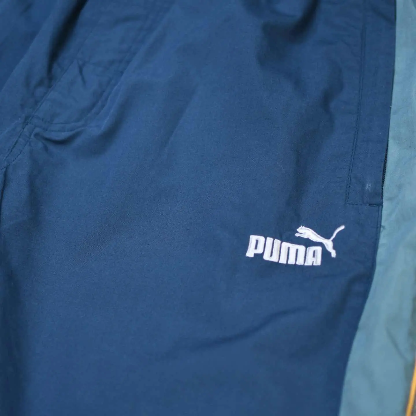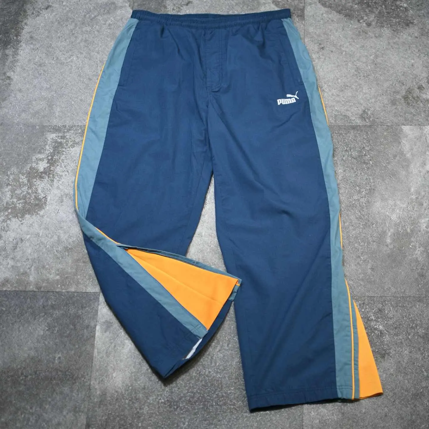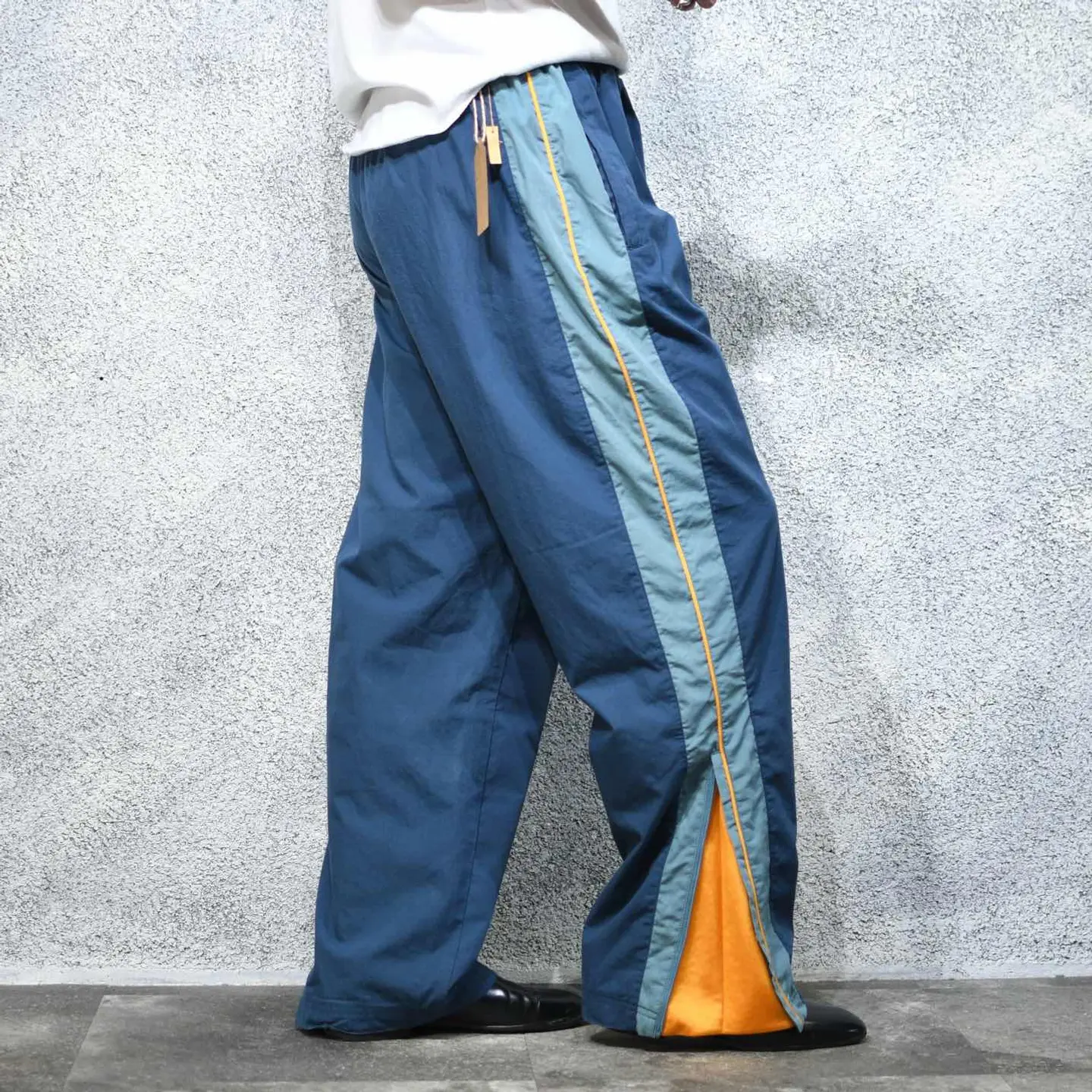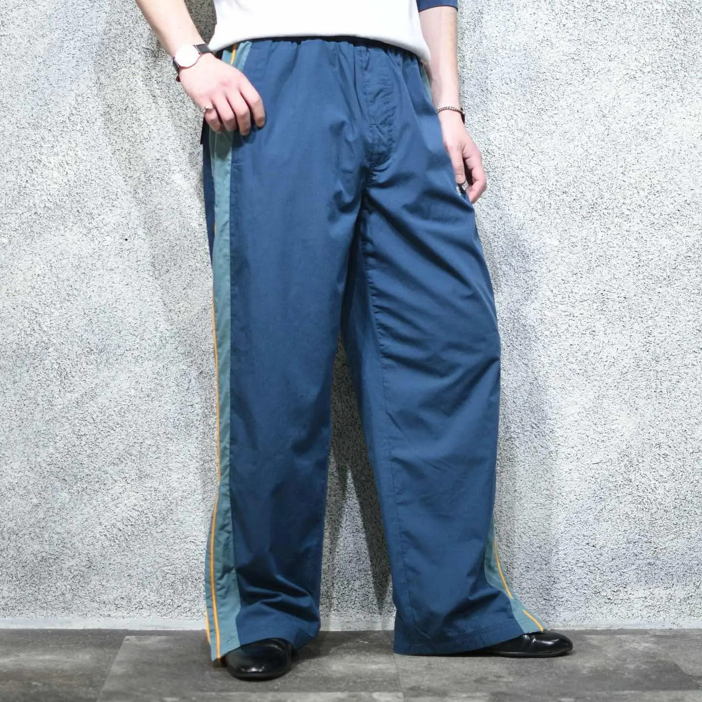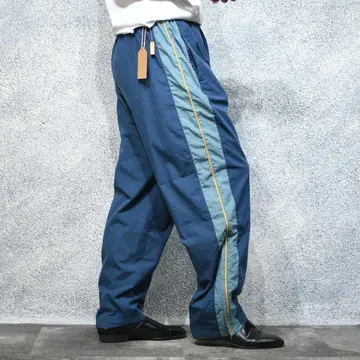 ウエスト~110cm(ドローコード付き) 総丈108cm 股下75cm わたり39cm 裾幅23cm・30cm fabric/poly・cotton 着用画像 177cm/64kg 2色の寒色と発色の良いカラーのサイドライン。 そんな好配色に惹かれたパンツで、 さらに裾のサイドジップを開くと現れる生地も ポイント。 通常のナイロンパンツと比べて、光沢の無い 生地感で、より幅広いトップスに馴染んでくれる パンツです。 何よりしっかり存在感のある ワイドなシルエットが魅力、、、 ※撮影状況により、実物と多少色が異なる 場合がございます。 ※古着を取り扱っているため、気づかない汚れや ほつれがある場合がございます。 予めご了承ください。 ※サイズは着用感で選んでおり、表記サイズではございません。 古着 オーバーサイズ old vintage ヴィンテージ used 80's 90's アメリカ古着 ユーロ古着 メンズ レディース POLO RALPH LAUREN Eddie Bauer OLD GAP Eddie Bauer LANDS' END ランズエンド LLBean エルエルビーン オールドギャップ エディーバウアー ラルフローレン ブルックスブラザーズ Brooks Brothers 青 ブルー ネイビー 黄色 イエロー ワイドパンツ イージーパンツ などがお好きな方 #vintage #オーバーサイズ #old #used #90s #80s #古着 #ヴィンテージ #アメリカ古着 #ユーロ古着 #古着男子 #古着女子 #LLBean #エルエルビーン #EddieBauer #エディーバウアー #oldgap #オールドギャップ #LANDSEND #ランズエンド #NAUTICA #ノーティカ #ラルフローレン #POLORALPHLAUREN #ブルックスブラザーズ #BrooksBrothers #PUMA #ワイドパンツ #イージーパンツ #ナイロンパンツ #デザインパンツ #サイドジップ #サイドラインパンツ