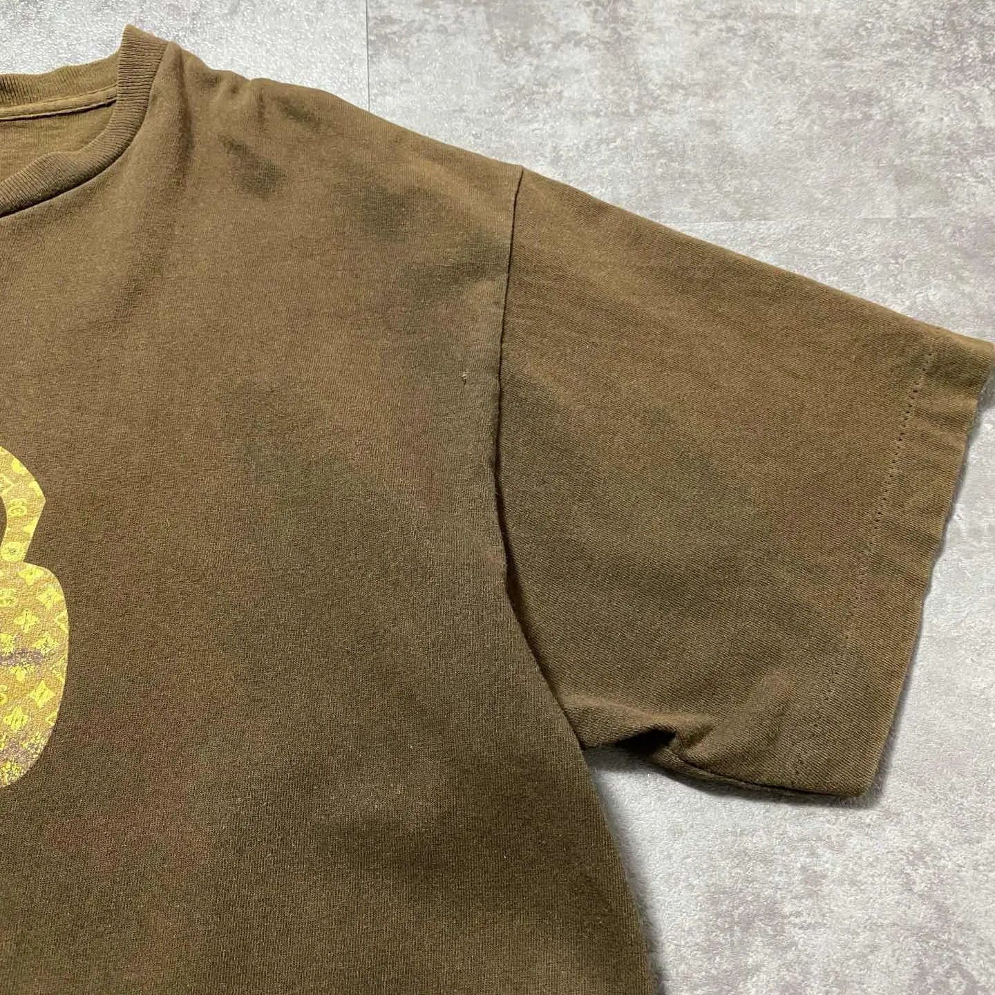 ○Size○ 表記→L ・着丈72 ・身幅54 ・肩幅48 ・袖丈19 (cm) ○Color○ ・ブラウン ○Material○ ・100%コットン ○Condition○ ・左袖繋ぎ目辺りに一部リペア跡あり ○Caution○ 当店で取り扱っている商材は全て『古着』となっております。 そのため、多少の状態難(ほつれ、傷、汚れ、リブの伸び、使用感、擦れ、色あせ、etc)がある場合がございます。 新品同様の完璧なお品物をお求めの方は当店でのお買い物を控えて頂きますよう宜しくお願いします。 また、購入された商品に関しましては、購入日時から起算して『72時間以内に』発送手続きの方を取らせて頂きます。 お急ぎの場合は購入前に当店オンラインストアの方にお問い合わせ頂きますよう宜しくお願いします。 25/994