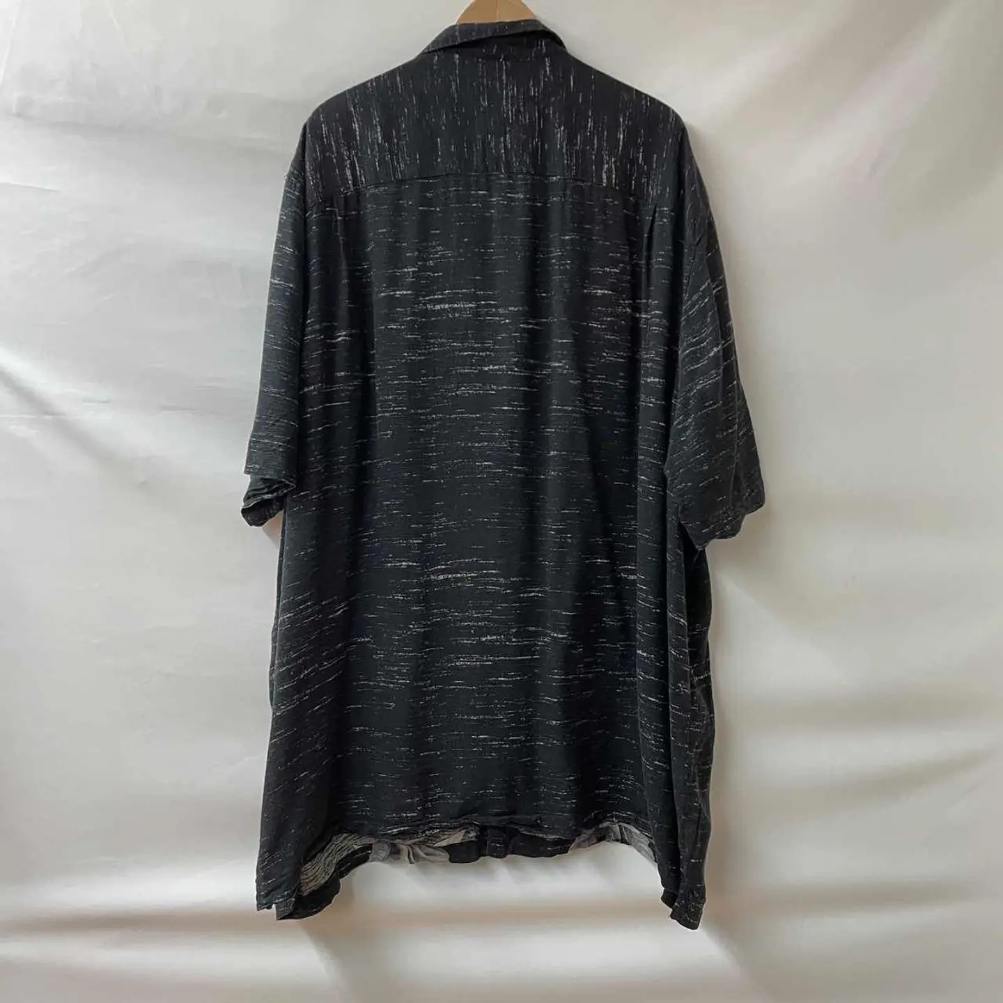 【サイズ表記】 3XL 【サイズ(cm)】 肩幅56 袖丈33 裄丈54 袖口(平置)23 腕周(平置)33 着丈87.5 身幅77 【商品詳細】 生産国 :BANGLADESH ブランド:GEORGE カラー :黒 素材 :100%Rayon 【コンディション】 B 【S】新品、展示品、デッドストックなど。 【A】若干の使用感はあるが、状態の良いUESD。 【B】使用感はあるが、目立つダメージや大きな汚れはない。 【C】使用感と部分的に少しダメージや汚れ有。 【D】使用感と部分的に大きなダメージや汚れ有。 ※古着故の多少の着用感や細かい汚れがございます。古着に理解のない方のご購入はお控えください。また、撮影状況により、色味に若干の差異が生ずることがございます。 【その他】 こちらの商品は古着商品となります。全て1点のみの在庫のご用意となりますのでご注意ください。#vintage #古着 #90s