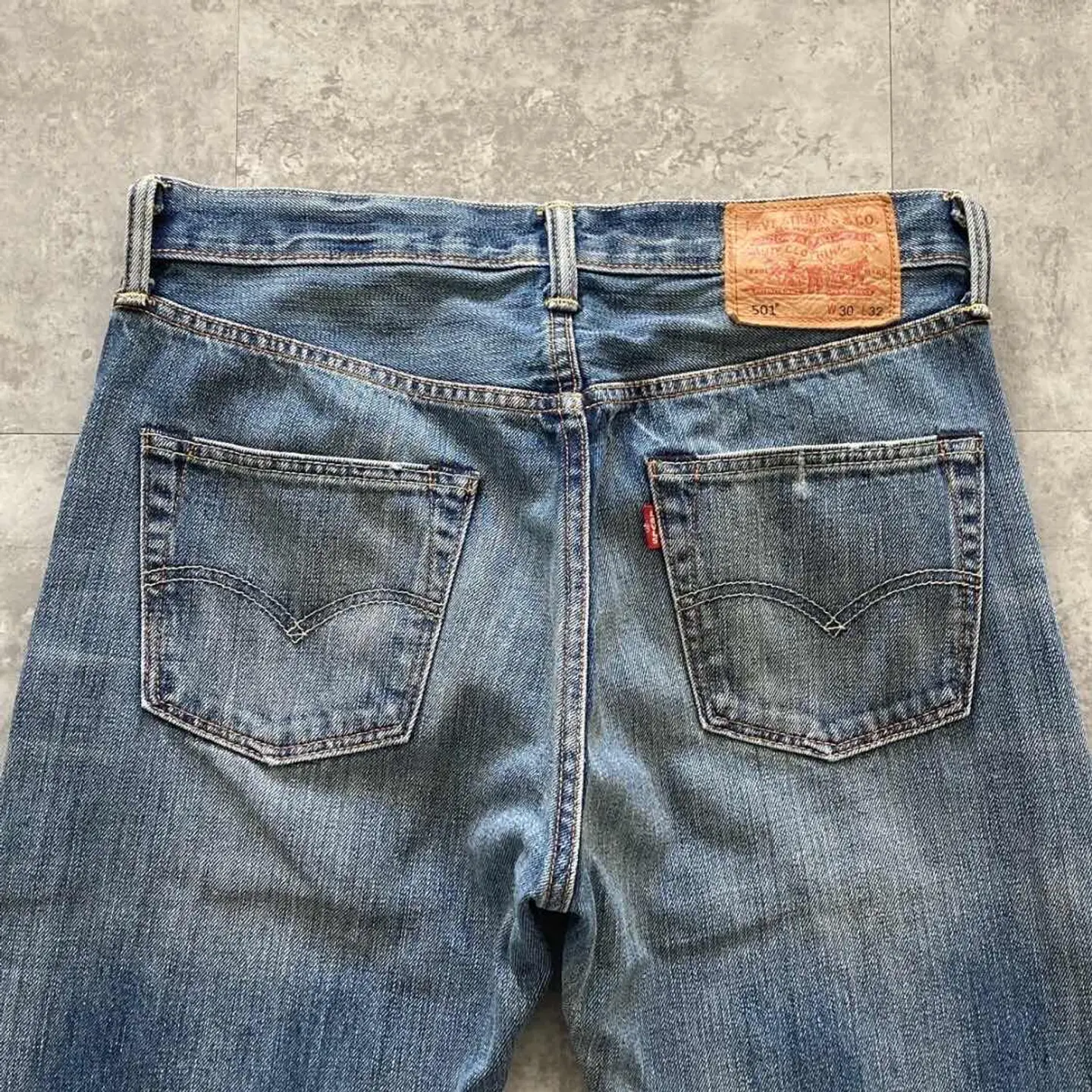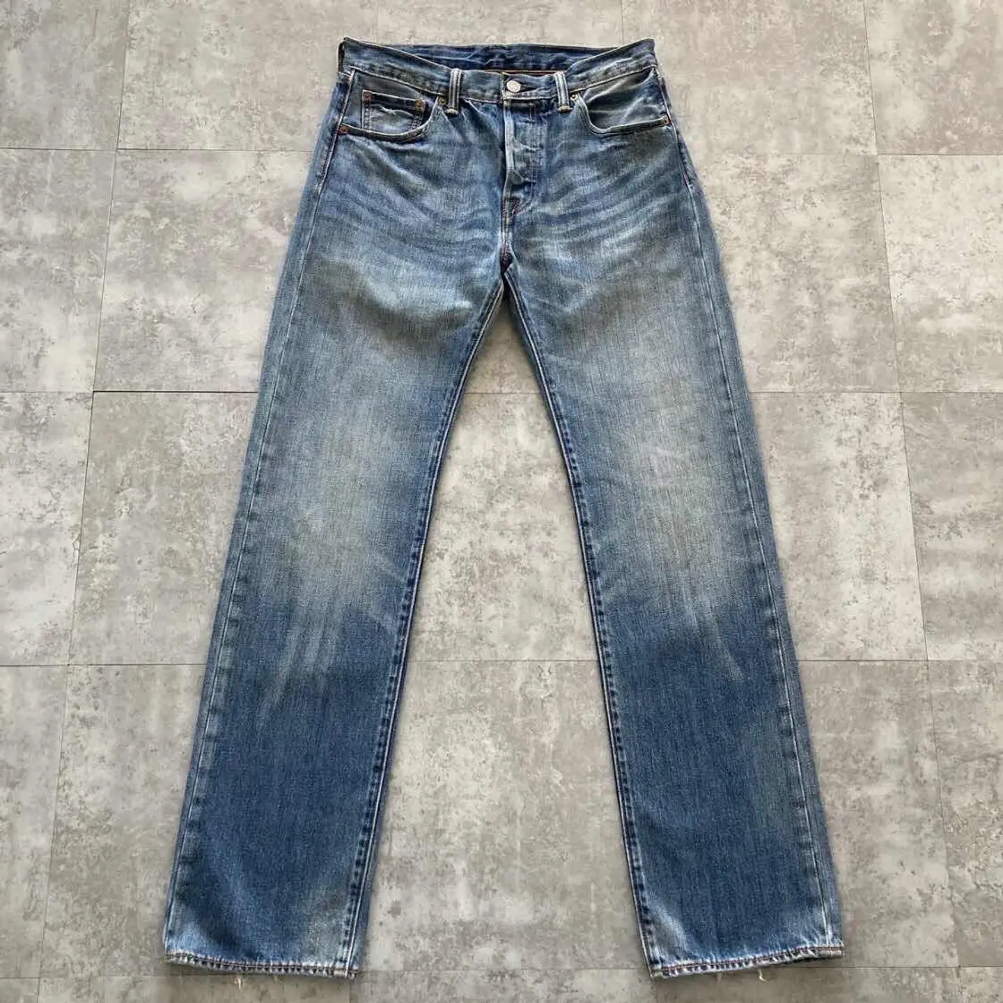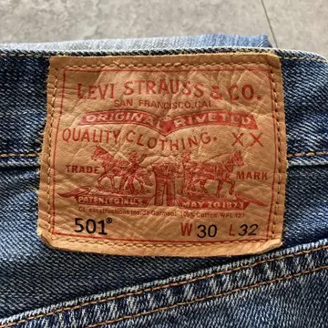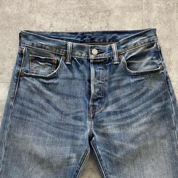 【W30 L34】Levis 501 PREMIUM レザーパッチ ボタンフライ 濃紺 デニムパンツ