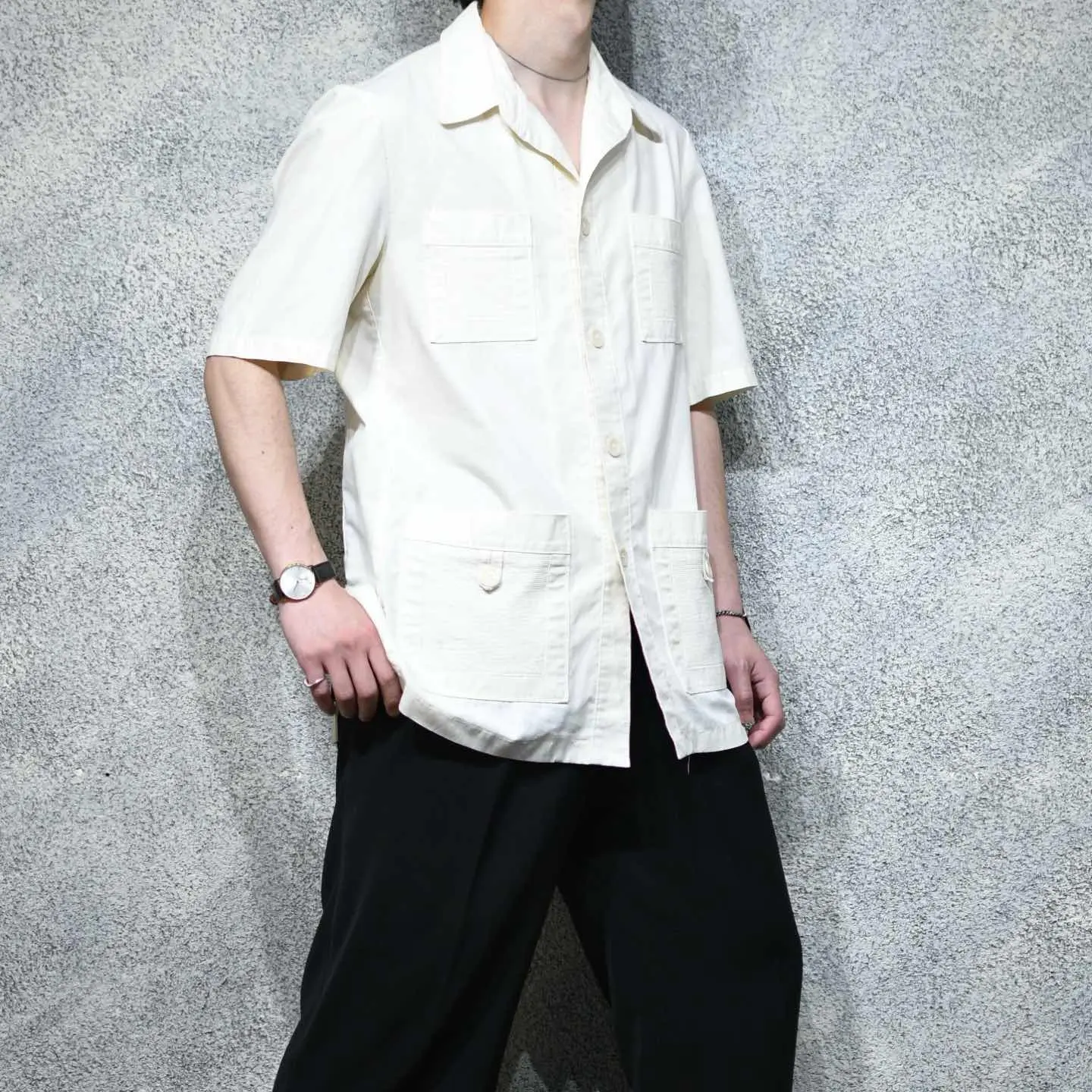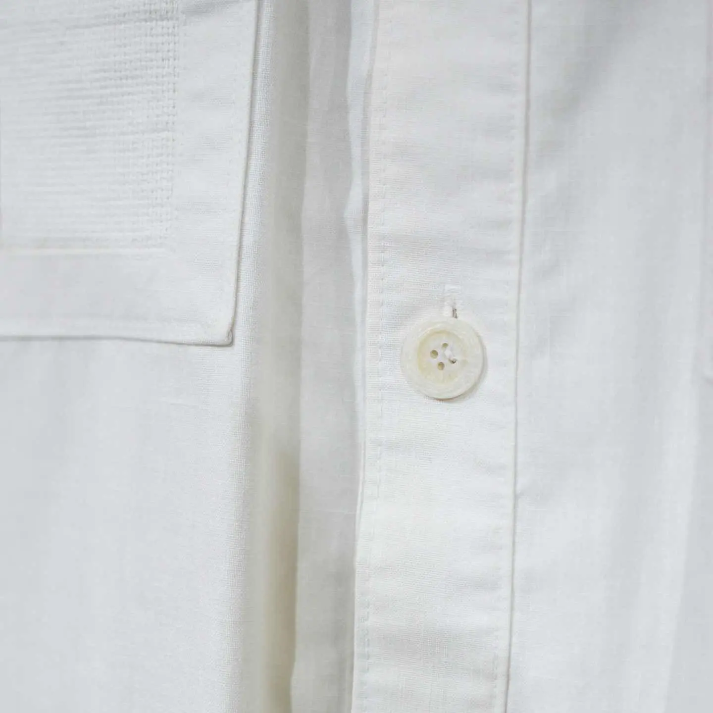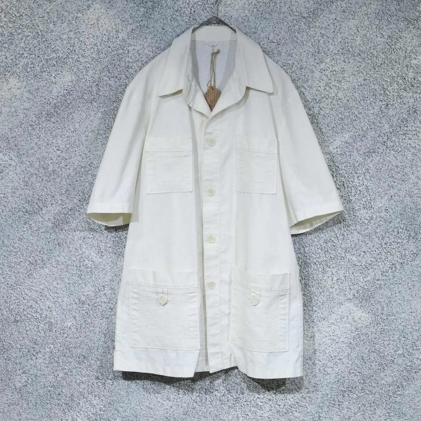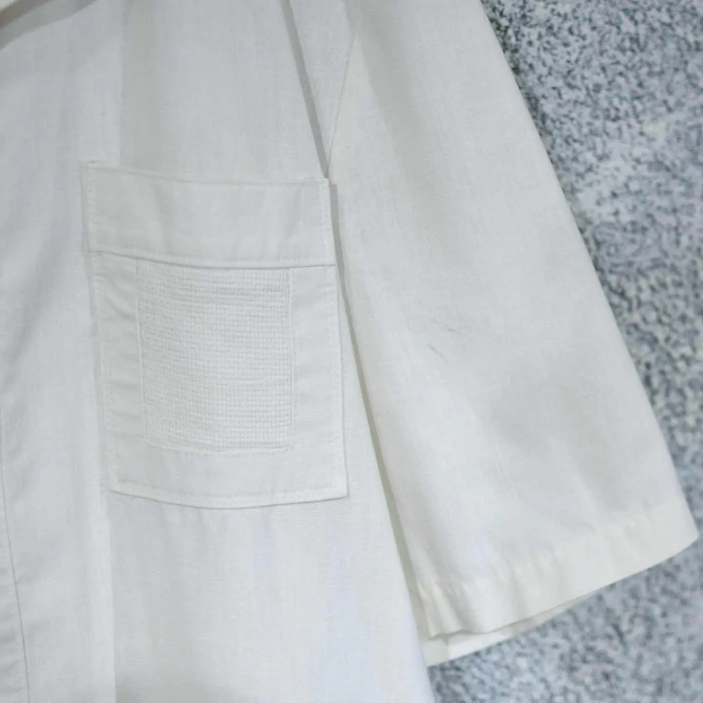 着丈79cm 肩幅48cm 身幅60cm 袖丈31cm fabric/質感よりlinen 着用画像 177cm/64kg 通常シャツというカテゴリーは、 シャツスリーブという袖の付き方をしていることが ほとんどですが、こちらはセットインスリーブで 袖が付いた1着。 テーラードジャケットやコートなどで用いられ、 立体的で筒状の袖が印象的で、フォーマルな印象を 纏うパターン。 恐らくこのシャツも、正装として着用されていたの ではないでしょうか。 半袖でありながらカジュアルにならず、 キレイめな印象で着れる、数少ない逸品です。 スラックスなど品のあるパンツで、雰囲気を まとめたスタイリングでどうぞ。 ※左袖に汚れあり。 ※撮影状況により、実物と多少色が異なる場合が ございます。 ※古着を取り扱っているため、気づかない汚れや ほつれ等がある場合がございます。 予めご了承ください。 ※サイズは着用感で選んでおり、表記サイズではございません。 古着 オーバーサイズ old vintage ヴィンテージ used 80's 90's アメリカ古着 ユーロ古着 メンズ レディース POLO RALPH LAUREN Eddie Bauer OLD GAP Eddie Bauer LANDS' END ランズエンド LLBean エルエルビーン オールドギャップ エディーバウアー ラルフローレン ブルックスブラザーズ Brooks Brothers ホワイト 白 オープンカラーシャツ 開襟シャツ などがお好きな方 #vintage #オーバーサイズ #old #used #90s #80s #古着 #ヴィンテージ #アメリカ古着 #ユーロ古着 #古着男子 #古着女子 #LLBean #エルエルビーン #EddieBauer #エディーバウアー #oldgap #オールドギャップ #LANDSEND #ランズエンド #NAUTICA #ノーティカ #ラルフローレン #POLORALPHLAUREN #ブルックスブラザーズ #BrooksBrothers #開襟シャツ #オープンカラーシャツ #半袖シャツ #デザインシャツ #リネンシャツ #キューバシャツ