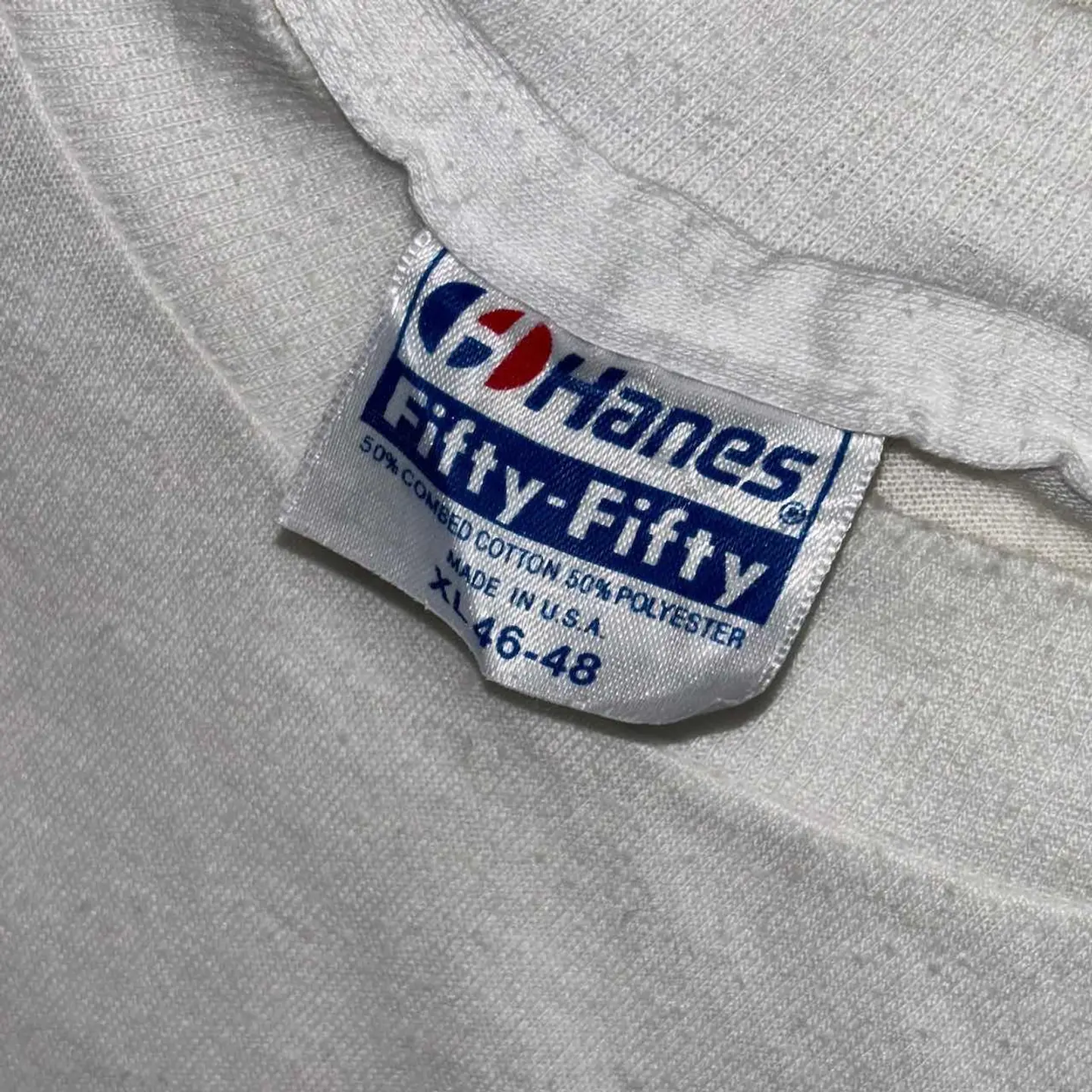 【サイズ表記】 XL 【サイズ(cm)】 肩幅49 袖丈20 裄丈45 袖口(平置)18 腕周(平置)25 着丈68 身幅(脇下)50 【商品詳細】 生産国 :USA ブランド:Hanes カラー :白 素材 :50%cotton 50%polyester 【コンディション】 B-C 【S】新品、展示品、デットストックなど 【A】使用感少なく、状態の良いUSED 【B】使用感あるが、目立つダメージや大きな汚れは無い。 【C】使用感と部分的にダメージや汚れ有り。 【D】使用感があり、大きなダメージや汚れ有り。 ※古着故、多少の着用感や細かい汚れがございます。古着に理解のない方のご購入はお控えいただけると幸いです。 また、撮影状況により色味に若干の差異が生じる事がございます。 【ジャンル】 US古着/US vintage 【その他】 こちらの商品は古着商品となります。 全て1点のみの在庫となります、ご注意ください。#古着 #vintage #used #アメリカ古着 #tシャツ