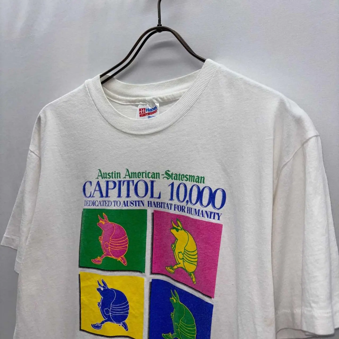 【サイズ表記】 M 【サイズ(cm)】 肩幅48 袖丈20 裄丈46 袖口(平置)17.5 腕周(平置)22 着丈64 身幅(脇下)47.5 【商品詳細】 生産国 : ブランド:hanes カラー :白 素材 :100%cotton 【コンディション】 B(首裏に汚れ有。ブリーチとかで落ちると思います) 【S】新品、展示品、デットストックなど 【A】使用感少なく、状態の良いUSED 【B】使用感あるが、目立つダメージや大きな汚れは無い。 【C】使用感と部分的にダメージや汚れ有り。 【D】使用感があり、大きなダメージや汚れ有り。 ※古着故、多少の着用感や細かい汚れがございます。古着に理解のない方のご購入はお控えいただけると幸いです。 また、撮影状況により色味に若干の差異が生じる事がございます。 【ジャンル】 US古着/US vintage 【その他】 こちらの商品は古着商品となります。 全て1点のみの在庫となります、ご注意ください。#vintage #古着 #used #old #tシャツ