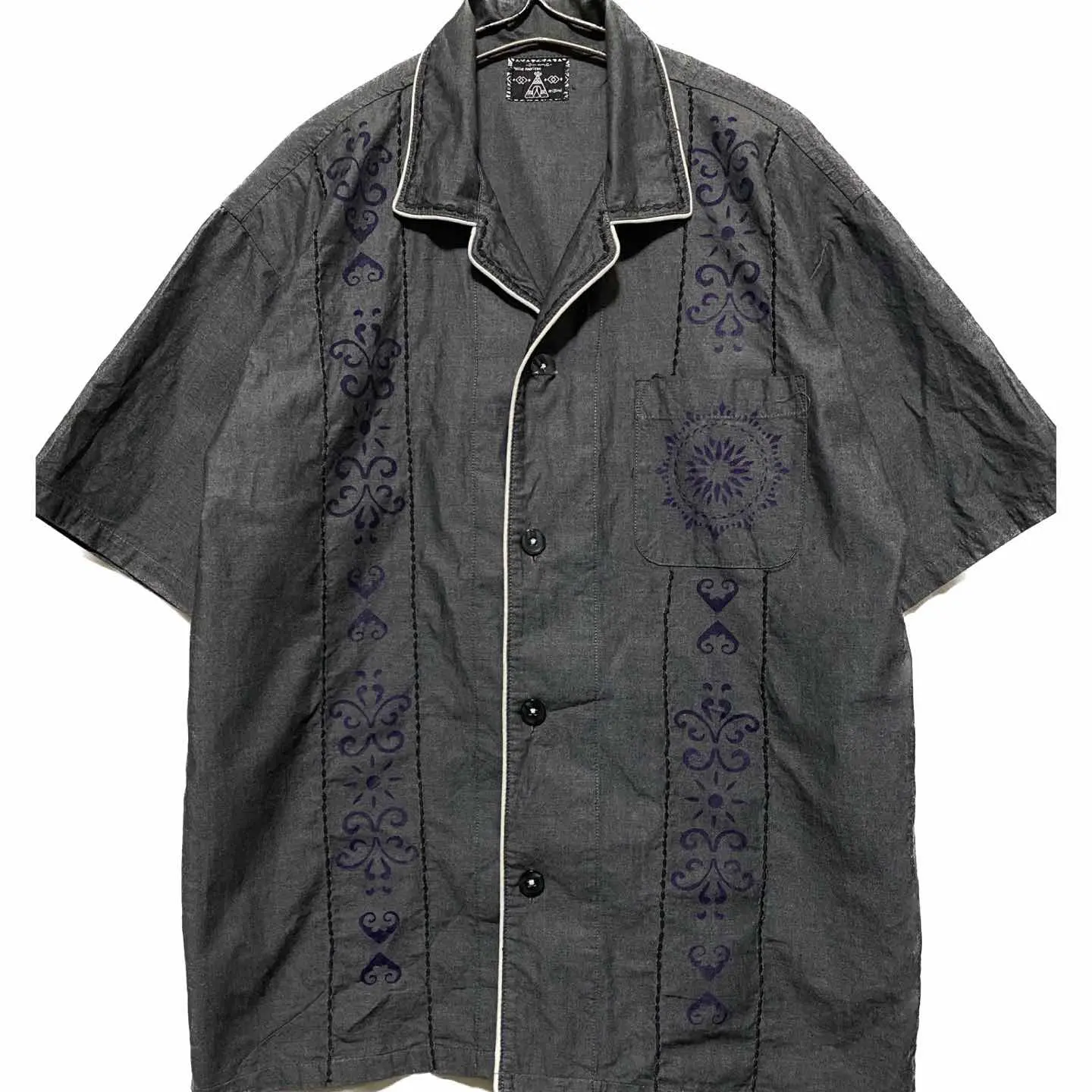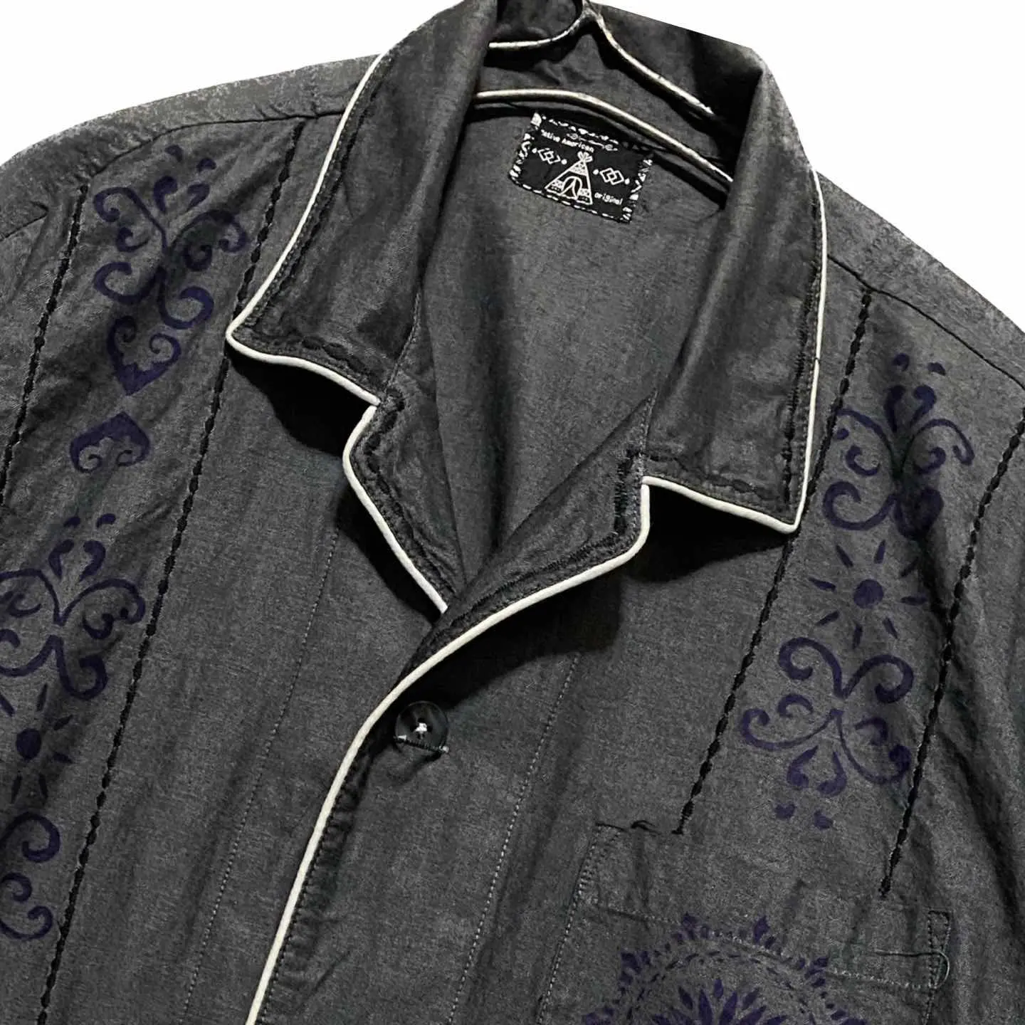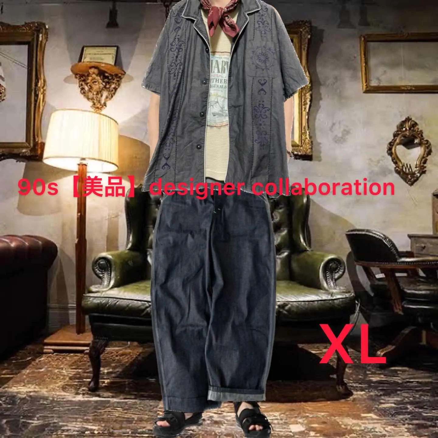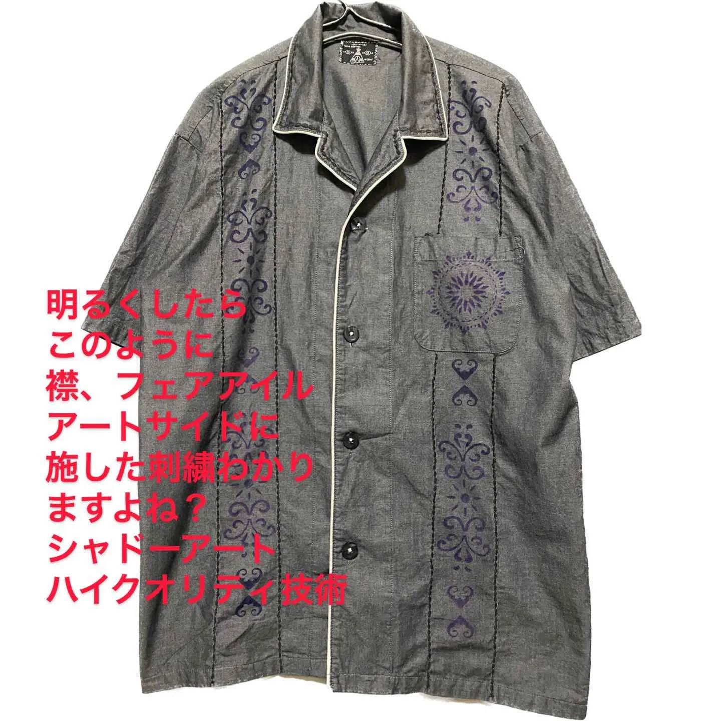 90年ヴィンテージ、この年代は大量生産がなかったため、とことんクオリティーにこだわれのが特徴なのですか その中でもラストテストサンプルと言う 新品同様のサンプルがあります、 デザイナーズネイティブの、ブロード、コットンを60番で 仕上げることにより、独特の光沢のような高級感が出る高級コットンで、シンプルにパイピングパイピングアートで仕上げたシャツを、 仕入れさせていただき、当店の技術で、刺繍と、フェアアイルアートをフロント襟に施さした、力作リメイクとなります 夏はメインで活躍するのが当たり前のですが、季節が変わると、前を閉めて、刺繍、デザインを、インナーからも、えりからも見えるように、えりにまで、刺繍を施したので、確実にあなたのセンスが爆上がりする事は間違いないです しかも、ハイクオリティーしか作らないネイティブの 90年代はファーストなんです、それを使った半端ない言っちゃくっつい、あなたの手にしてください ▷color◁ ヘザーグレー、 ※ブラウザで異なる場合ありますがかなり実物には、近づけてます、 ▷size◁ 平置き片面採寸【㎝表記】 表記size XL使用 着丈/74 身幅/60 肩幅/58DS 袖丈 /38 DSは袖はハンガー採寸 ※多少の誤差は理解下さい 170/Mジャスト体型の私が着て、✔️参考に ジャスト オーバーサイズ ビックサイズ✔️ 【素材】 ブロードcotton60番 【状態】 新品同様 検品、洗濯、検品で、3回チェックして発送しますので、ご安心して、お買い求め下さい!!