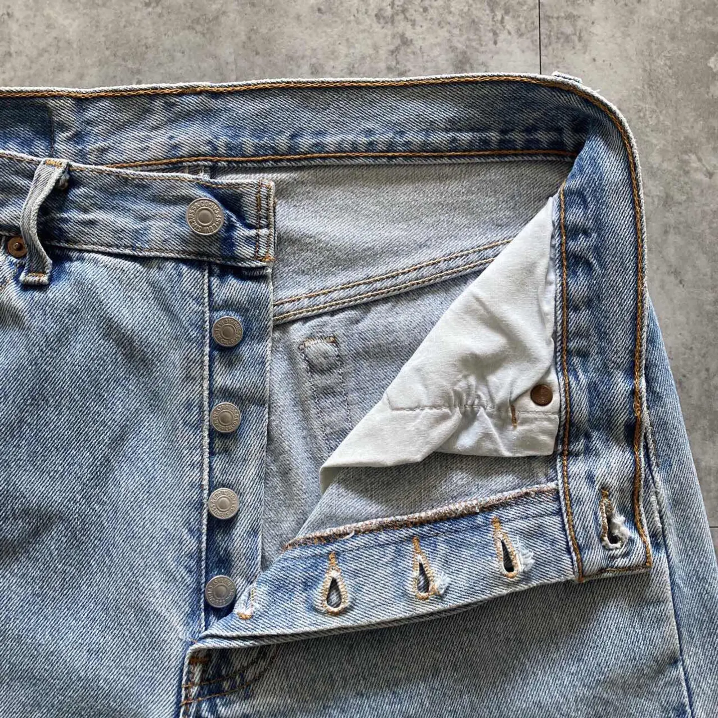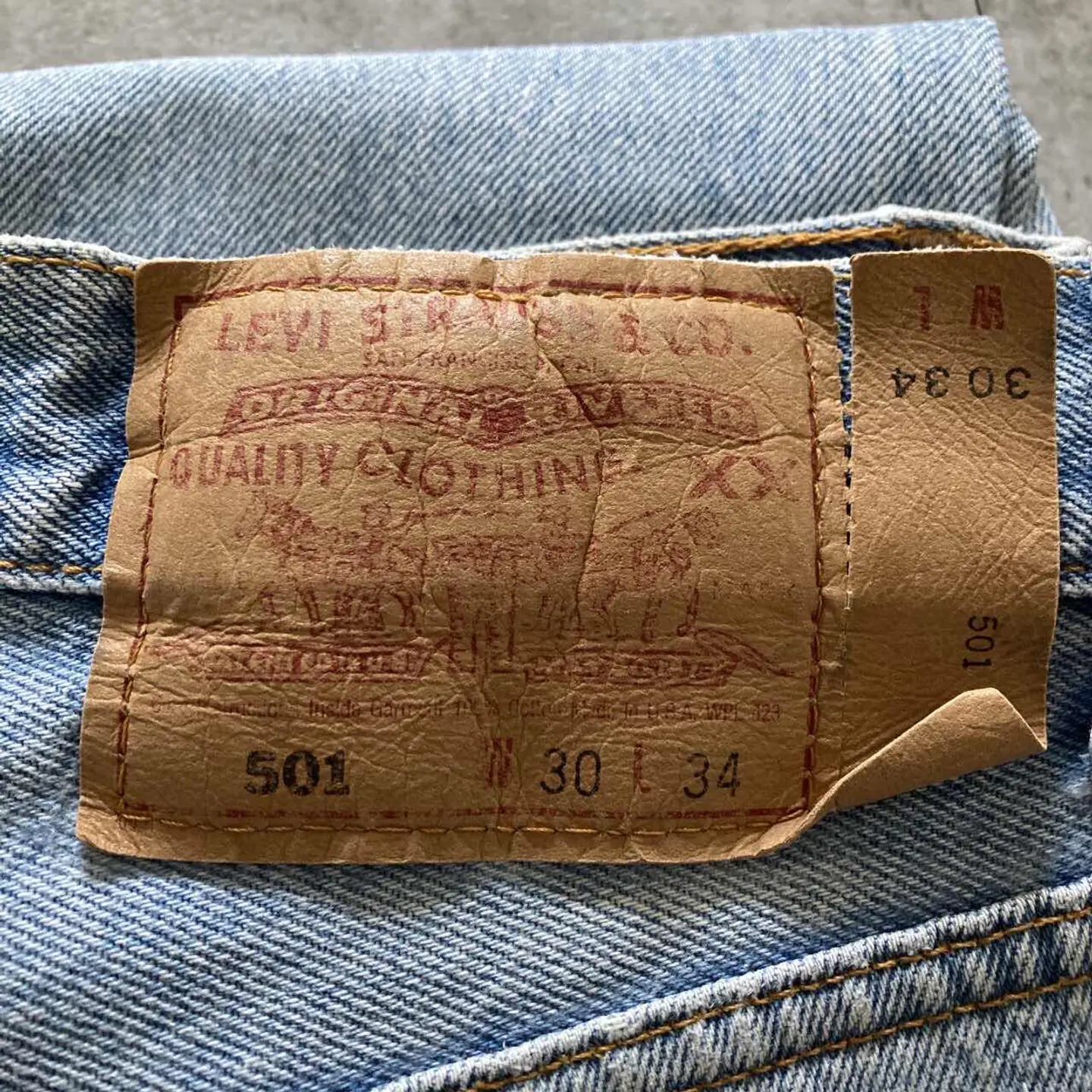 【W30 L34】Levis 501 PREMIUM レザーパッチ ボタンフライ 濃紺 デニムパンツ