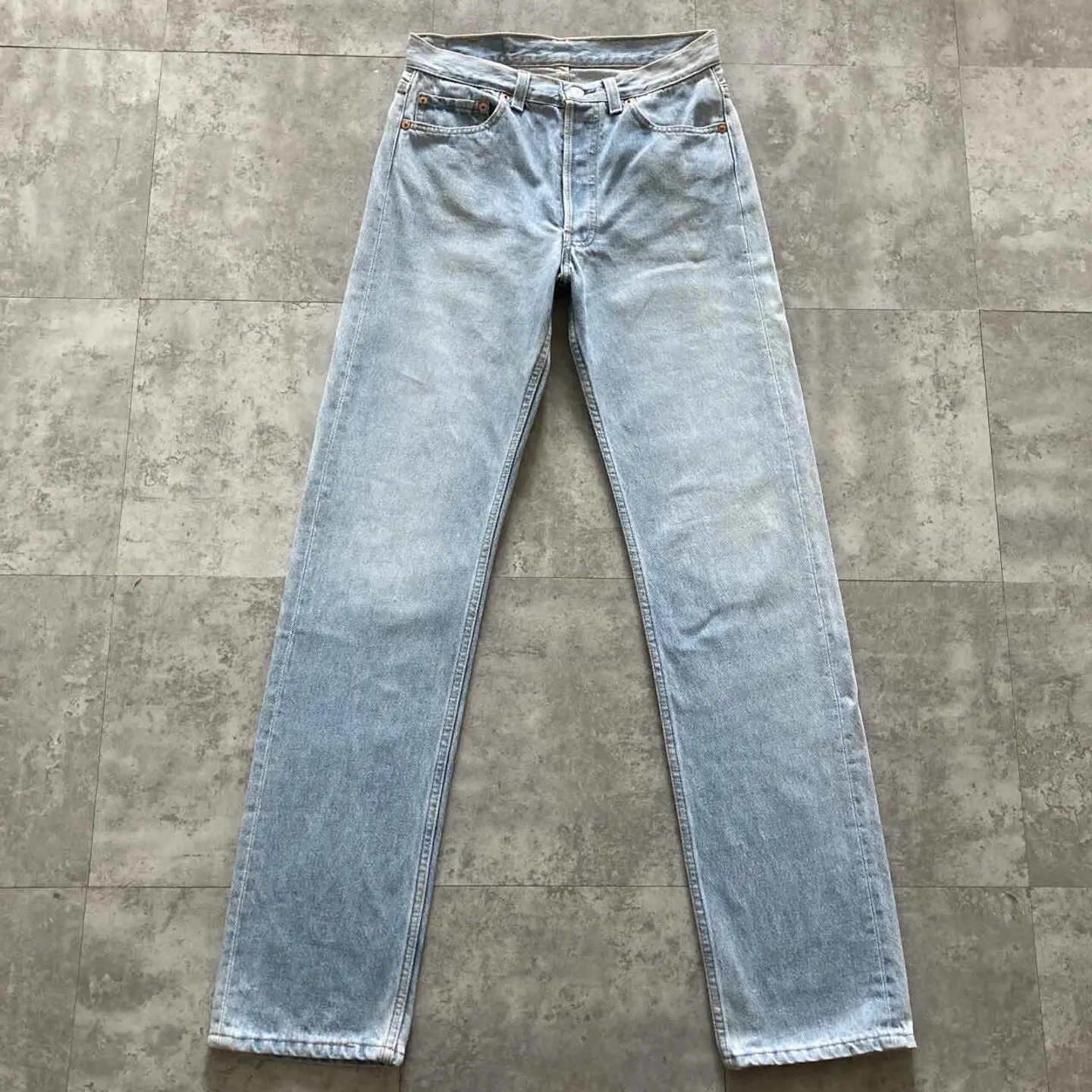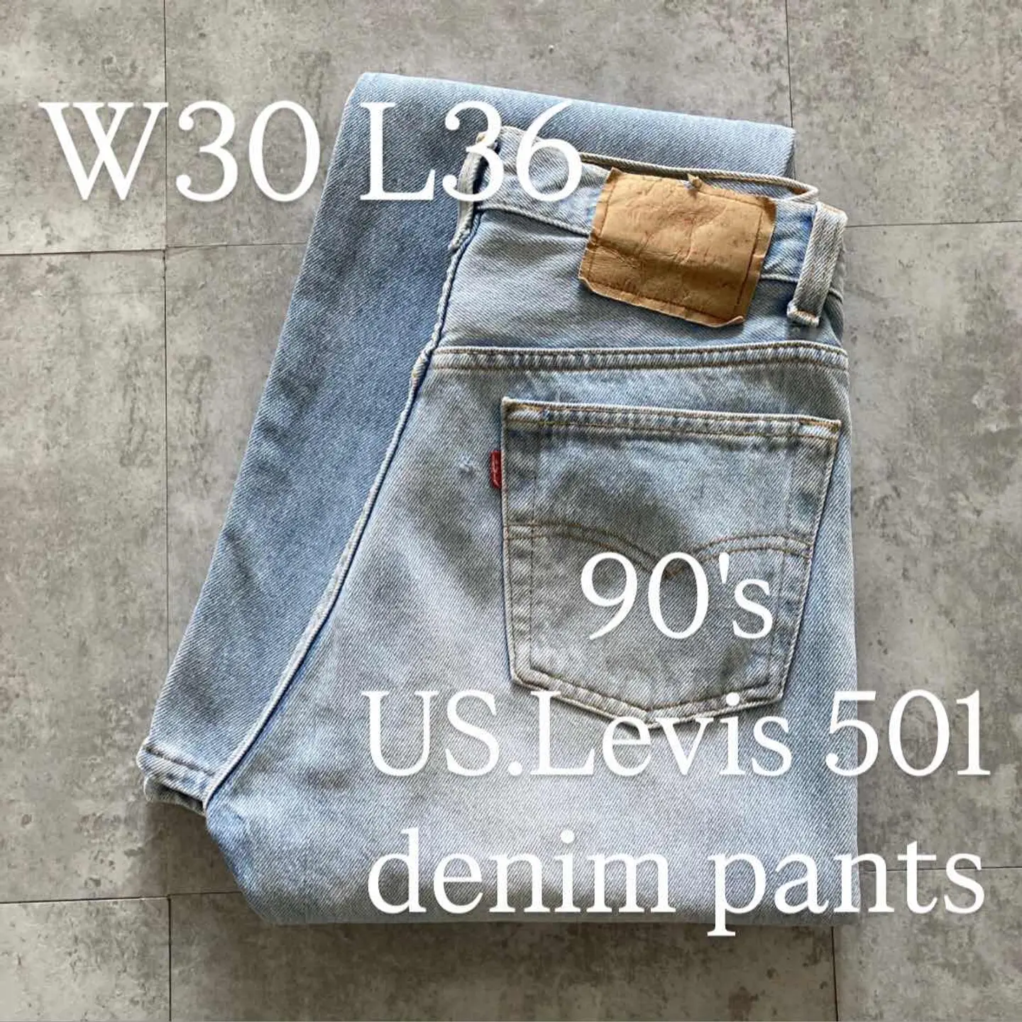 □Size□ 表記→W30 L36 実寸↓ 股上 : 28 股下 : 81.5 ワタリ幅 : 29 裾幅 : 19 ウエスト : 37.5×2 (cm) □Colour□ ・デニム紺 □Material□ ・100%コットン □Condition□ ・後ポケット付近に擦れた傷あり □Caution□ ・当店で取り扱っているアイテムは全て「古着」となっております。そのため、多少の擦れやほつれ、色あせや汚れ等が見られる場合がございます。新品同様の完璧なお品物をお求めの方は当店をご利用されないよう宜しくお願いします。 ・購入された商品につきましては、購入日から起算して「72時間以内の発送」とさせて頂きます。お急ぎの場合はオンラインストアの問い合わせフォームよりご連絡ください。可能な限り対応させて頂きます。 ・購入されら商品は基本的に「お客様都合での返品&キャンセル不可」となっております。決済が確定した時点で注文の取り消し等は不可のとなりますので、よくお考えの上購入検討の方をお願い致します。 【A-5604】