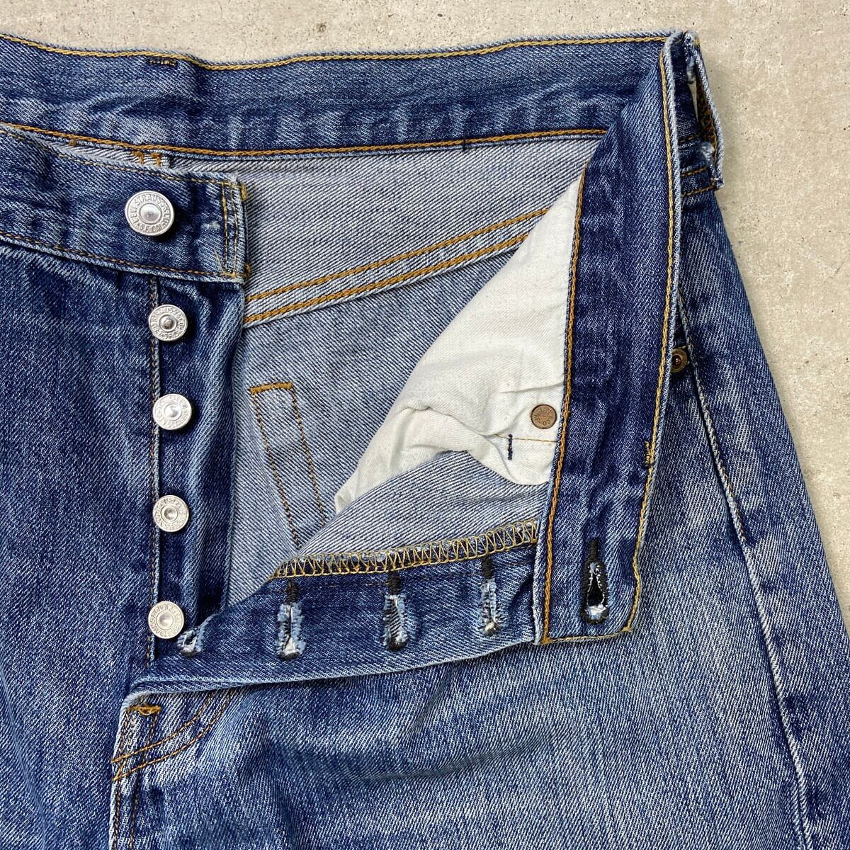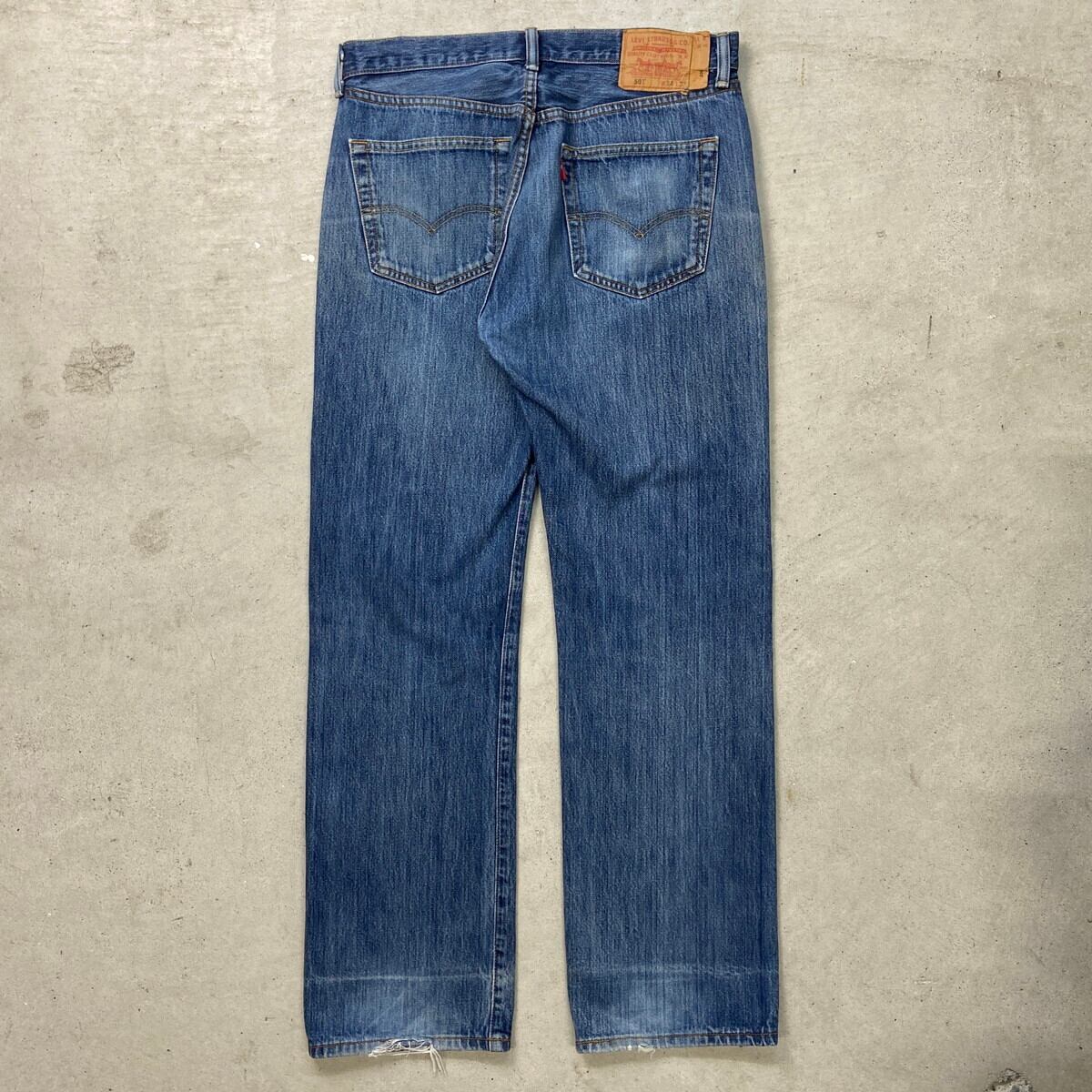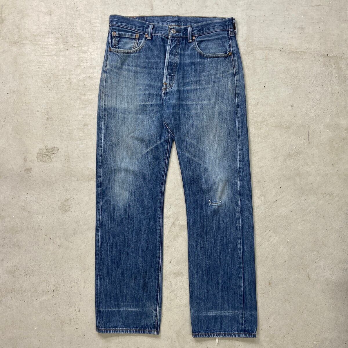 ■Levi's リーバイス 501 デニムパンツ ストレート メンズW32相当 古着 アメカジ ジーンズ ダメージ加工 青色【デニムパンツ】/ブルー 【ブランド】Levi's リーバイス 【サイズ】表記 W34 L32(実寸W32) ※計測値をご確認ください。 ウエスト(平置き×2)…83 ワタリ幅…32.5 股上…28.5 股下…80 裾幅…21.5 【生産国】ハイチ製 【素材】コットン100% 【状態】全体的に使用感による色褪せがあります。 左ひざにダメージ加工されております。 画像にてご確認ください。 【c250630110】 ※古着は洗濯、検品などのケアを行っております。(新品・デッドストックは洗濯していません。) ※モニターの発色により実物と異なる場合がございます。予めご了承ください。 ※ 海外直輸入USED品になります。